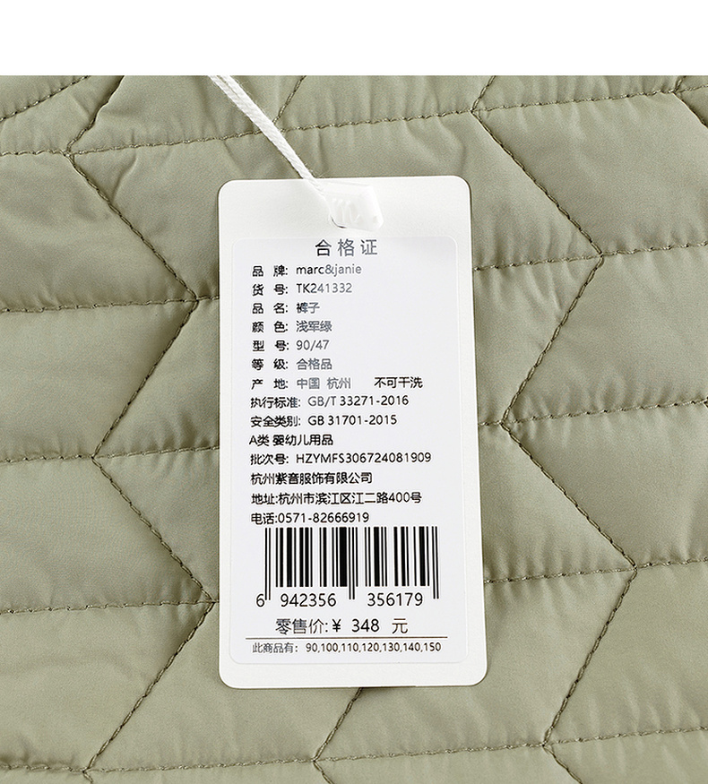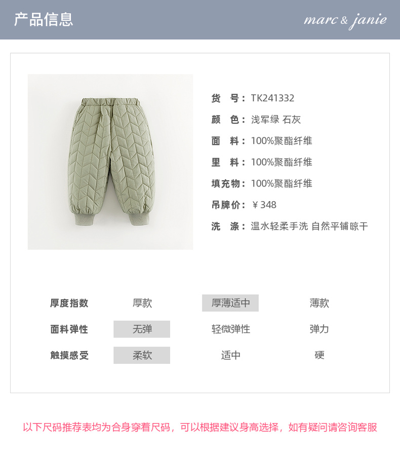 [校服神器]马克珍妮男童时尚麦穗绗缝束脚棉裤儿童裤子冬装241332