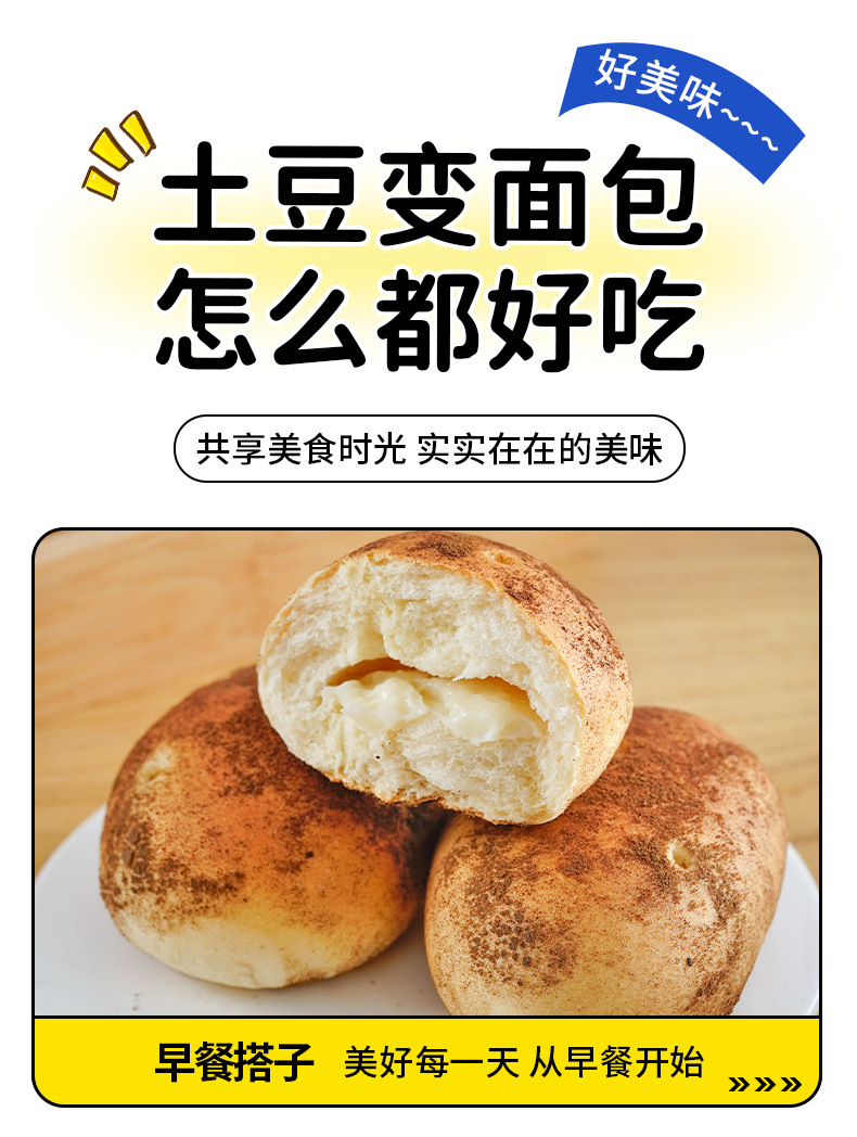【不单独添加蔗糖!土豆夹心面包】美味放心吃,甄选新鲜食材,每一口都滋味满满,早餐零食代餐抗饿便携即食吐司面包