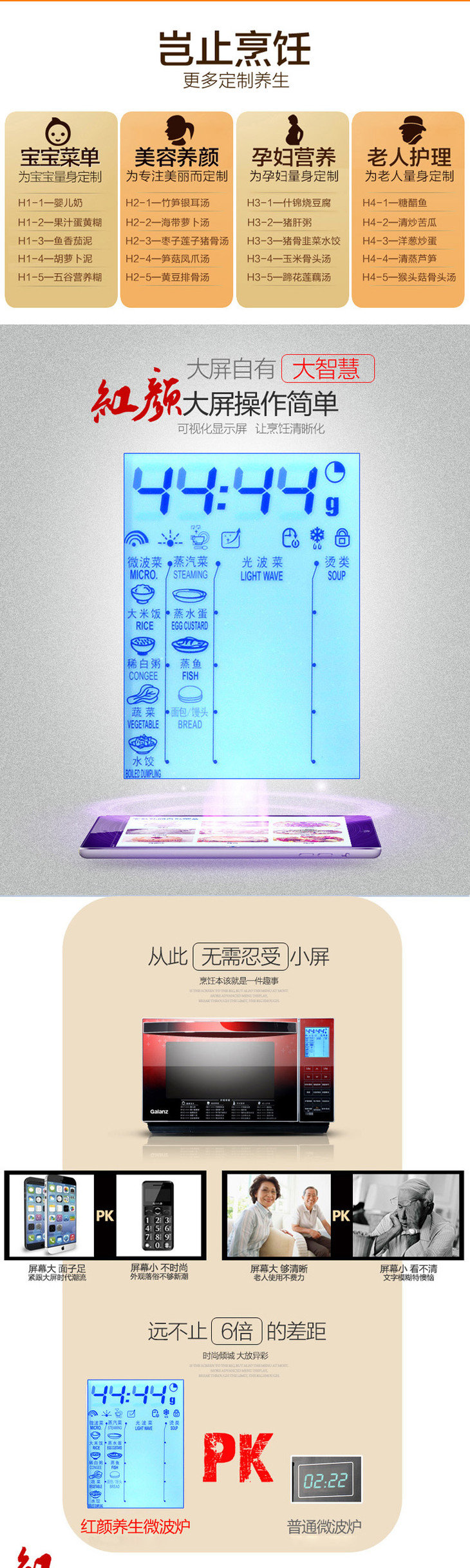 格兰仕(507182)(Galanz) G80F23CN3XL-R6K(R3)红颜养生微波炉 23L大屏高端智能一级能效800W