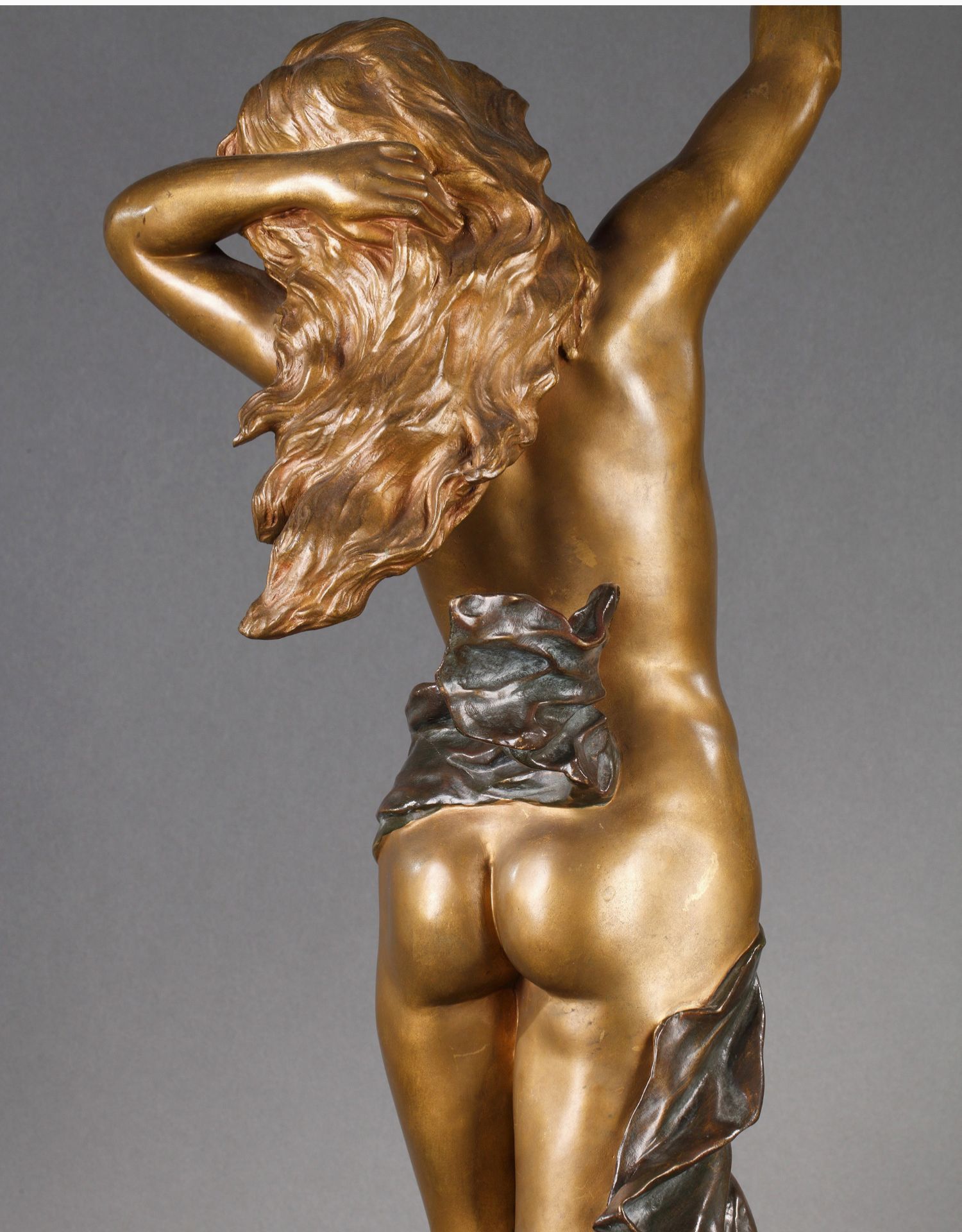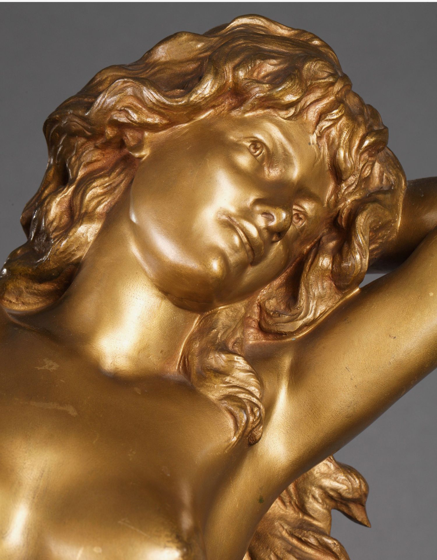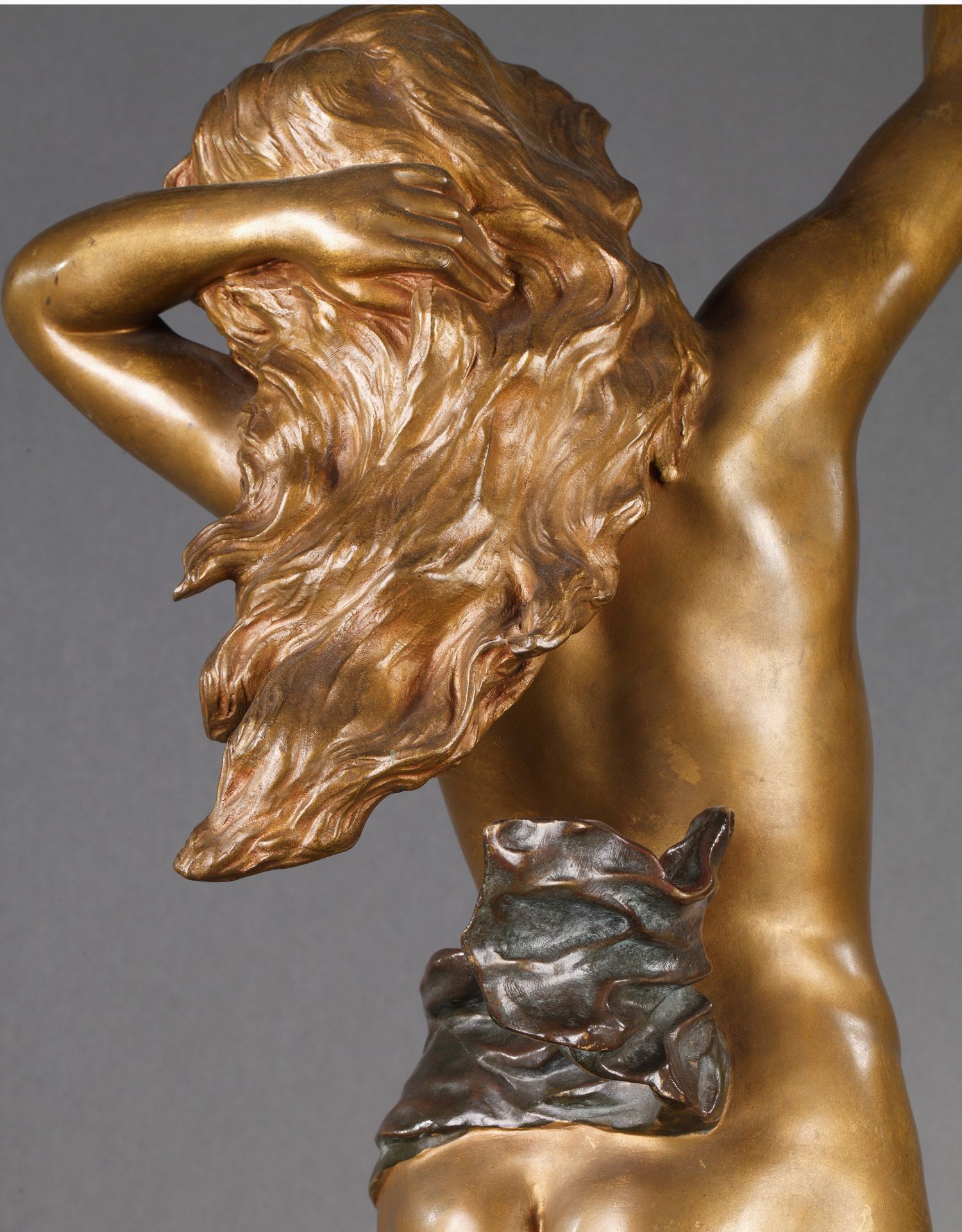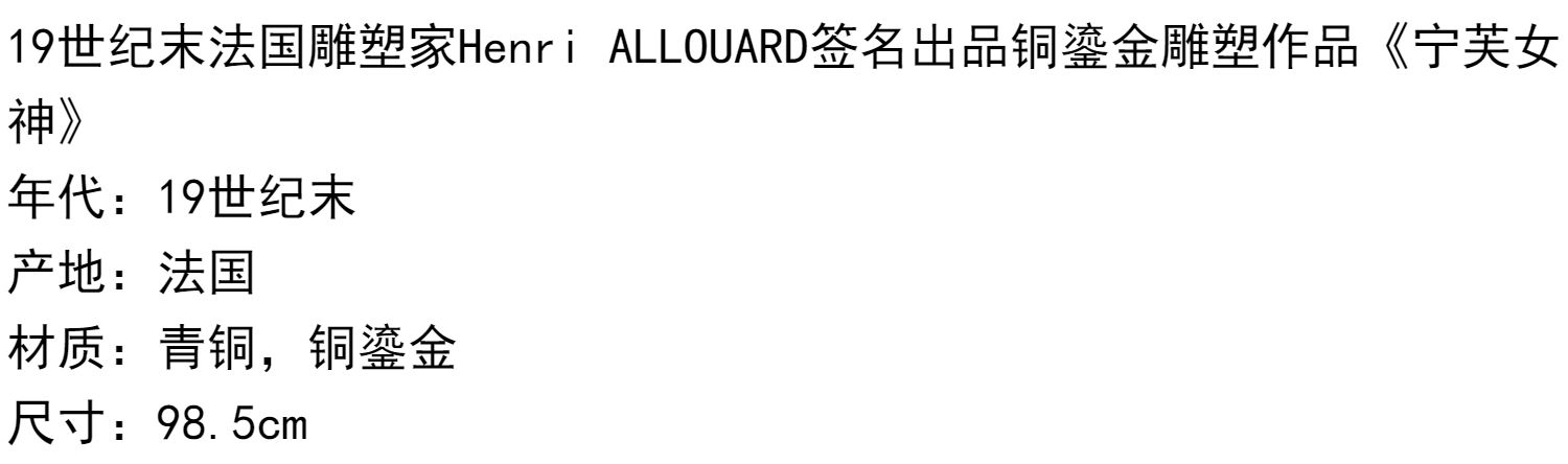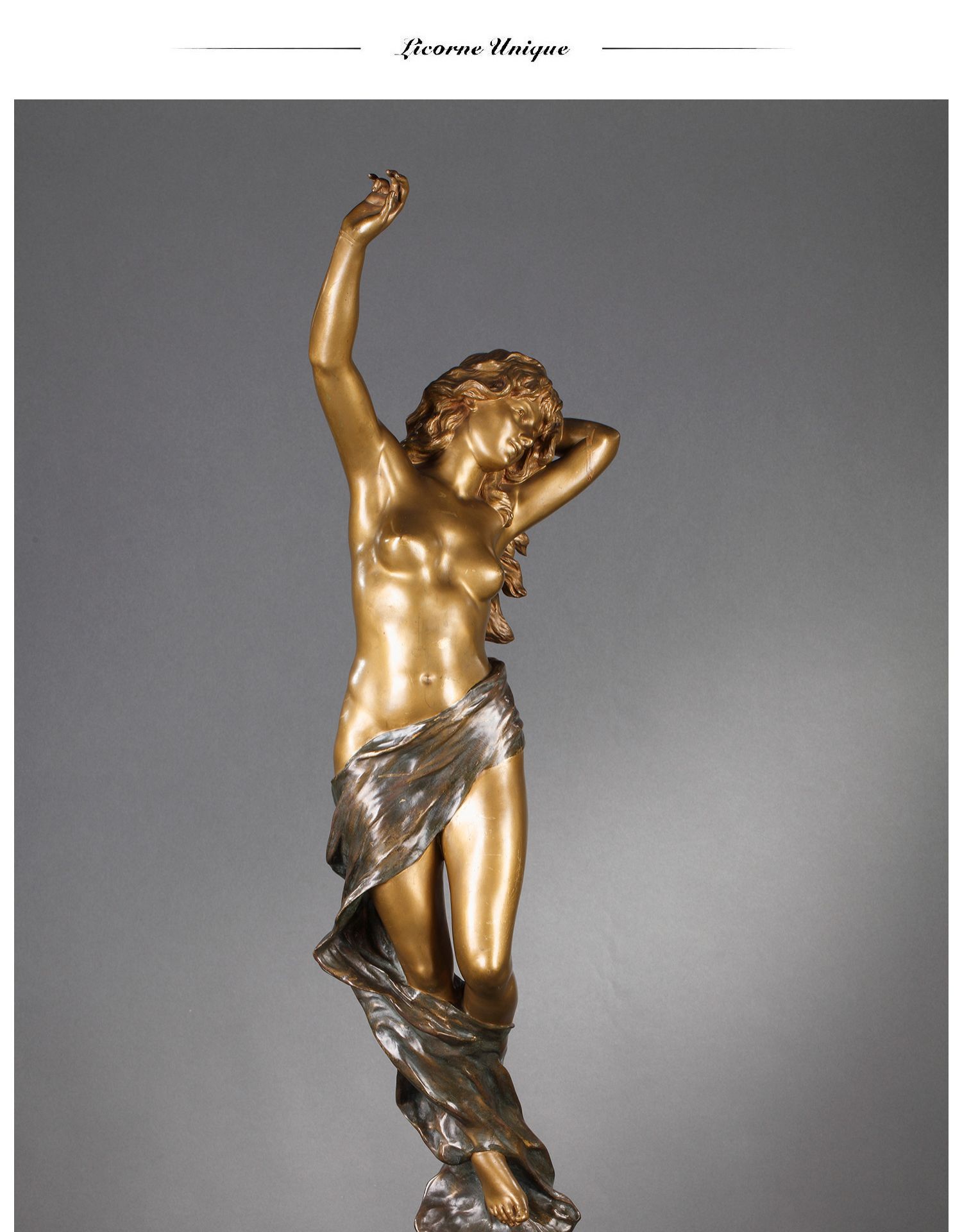 独角鹿西洋古董法国雕塑家Henri ALLOUARD铜鎏金雕塑《宁芙女神》