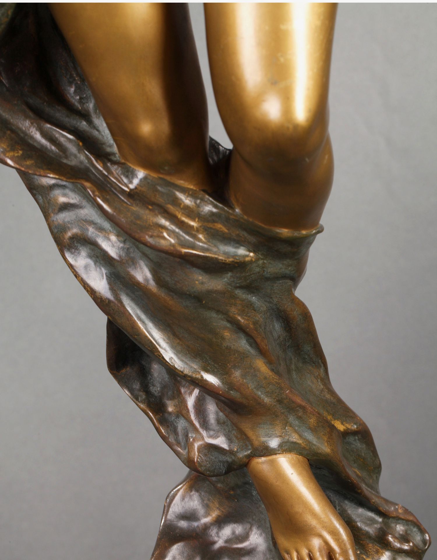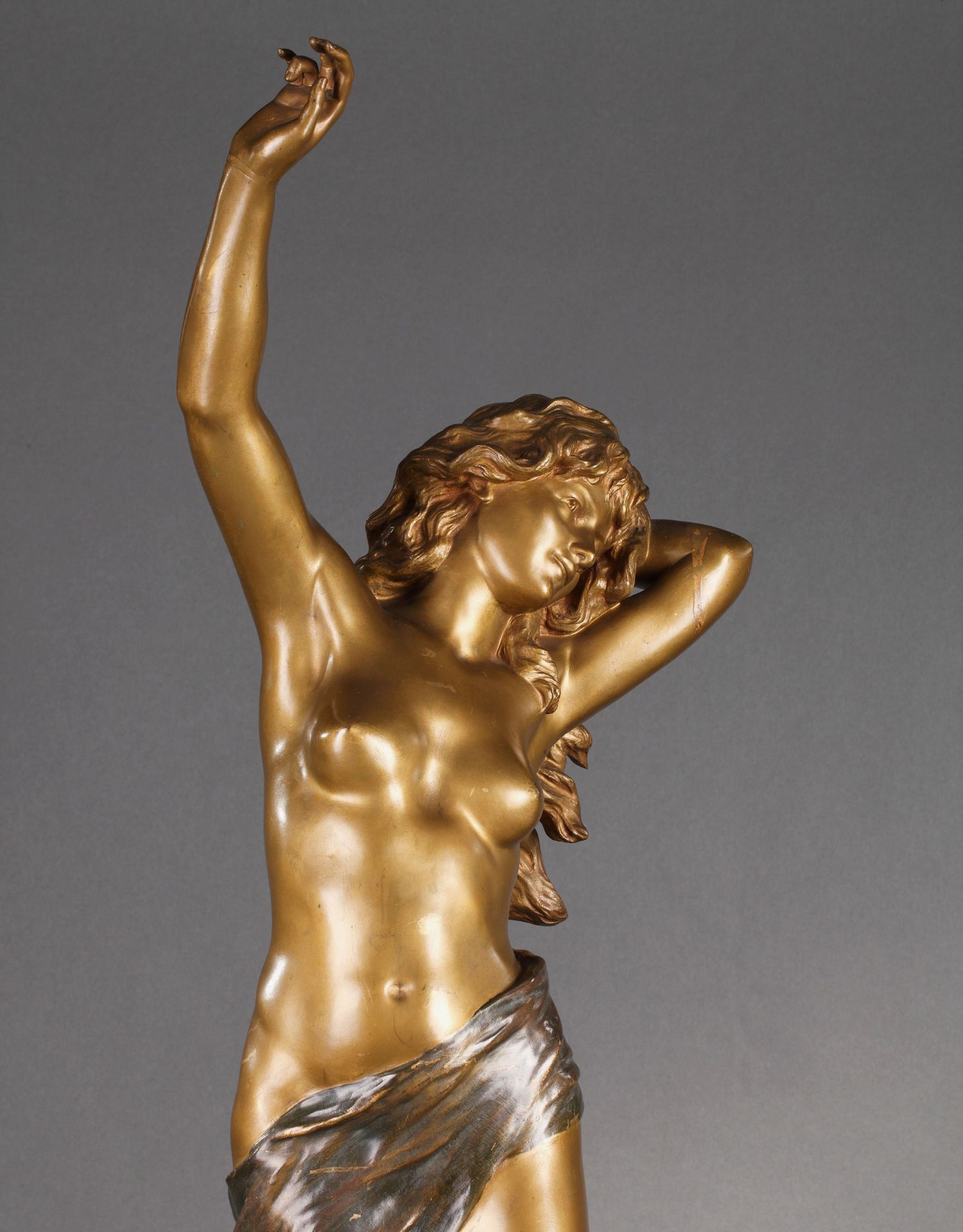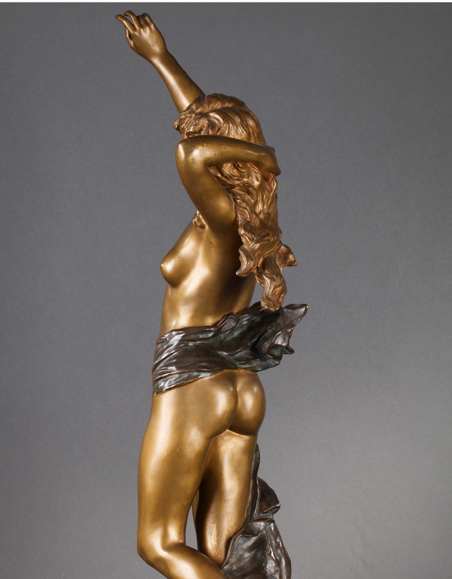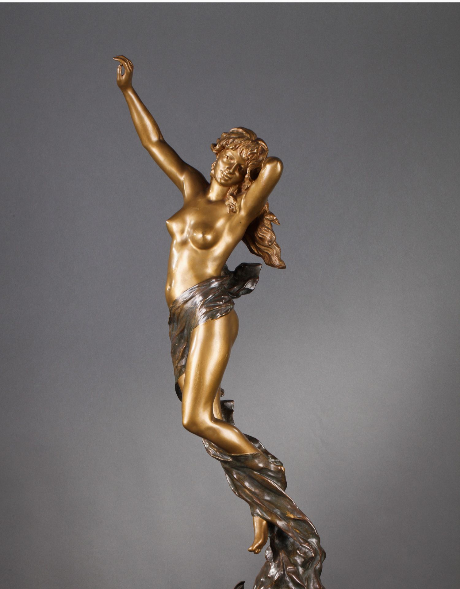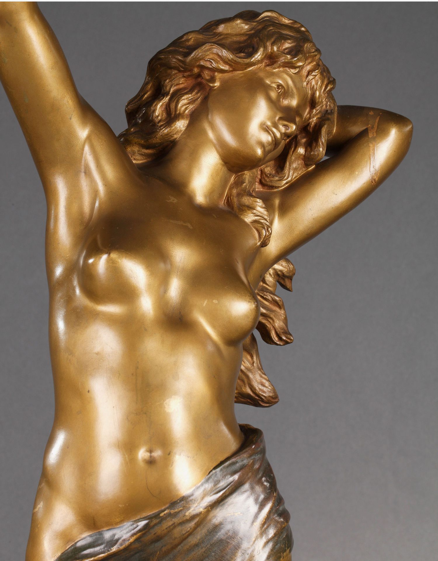 独角鹿西洋古董法国雕塑家Henri ALLOUARD铜鎏金雕塑《宁芙女神》