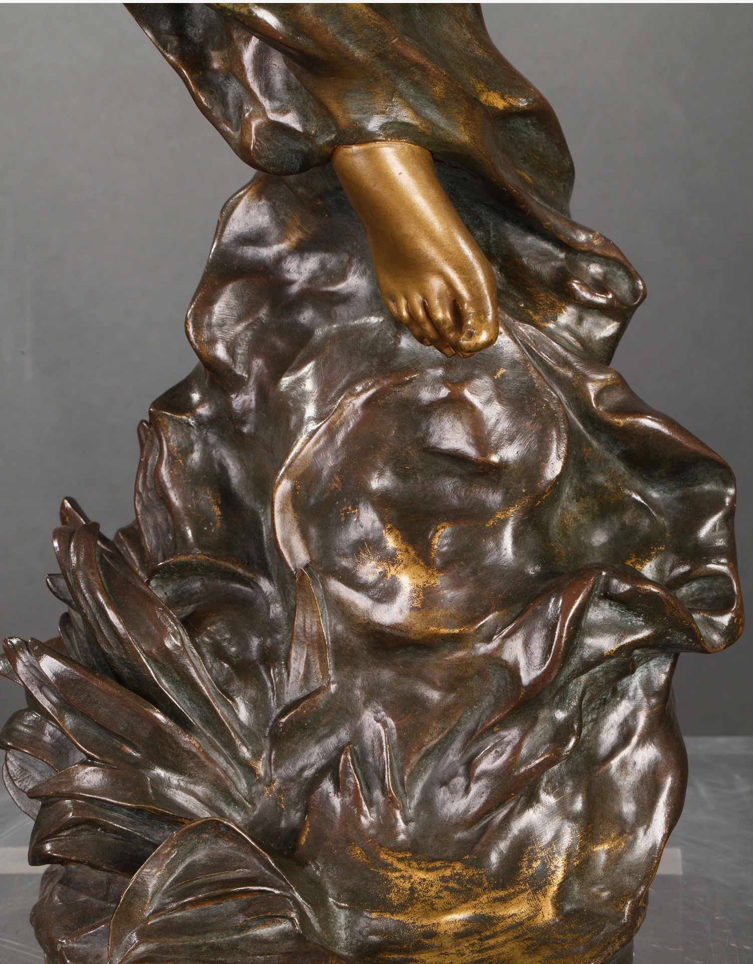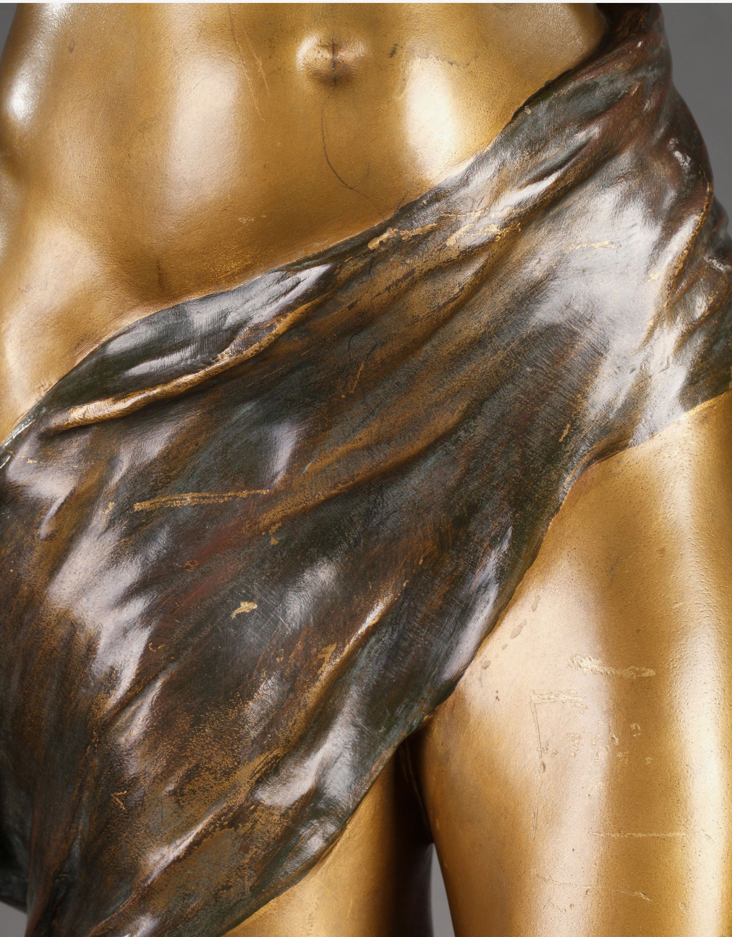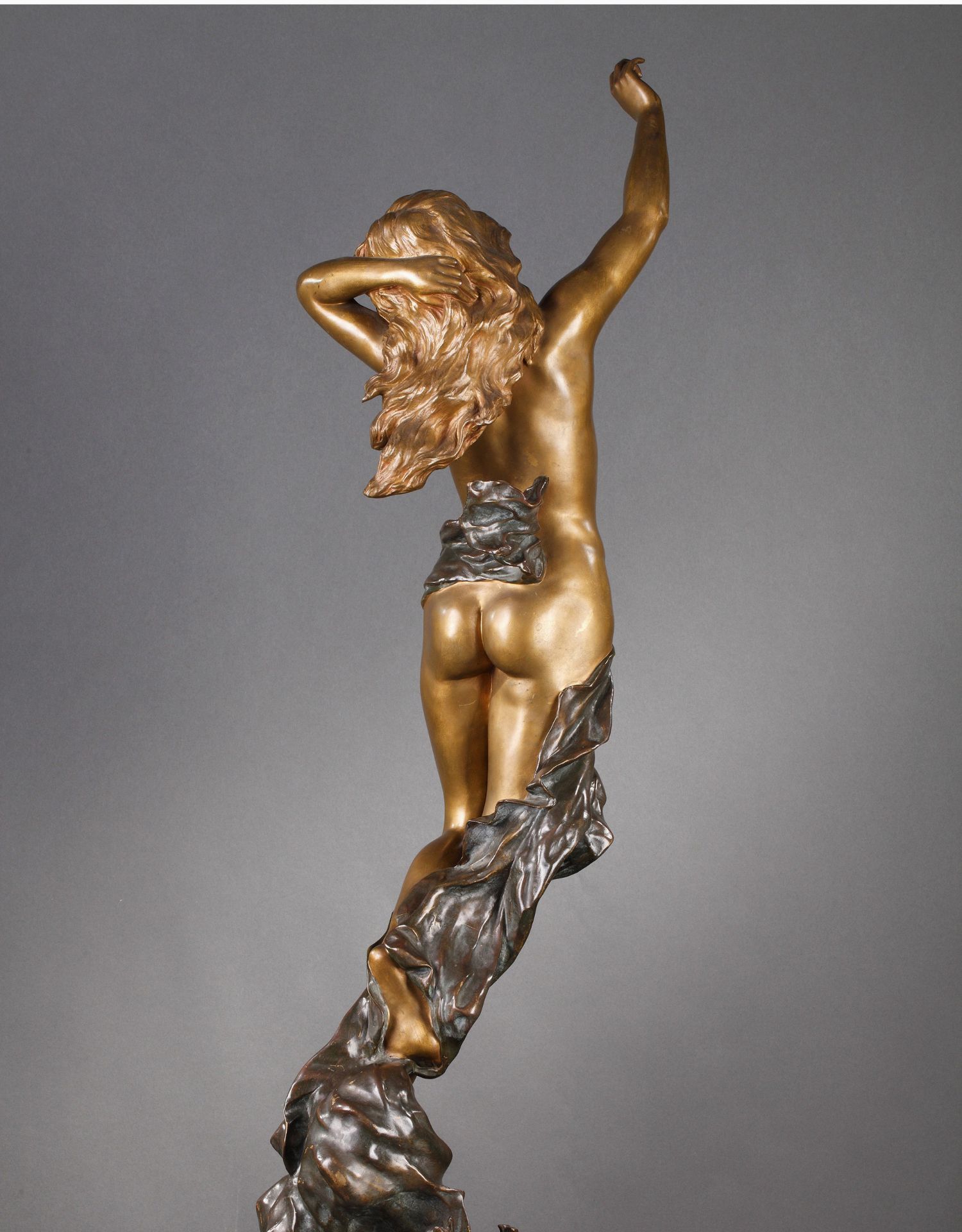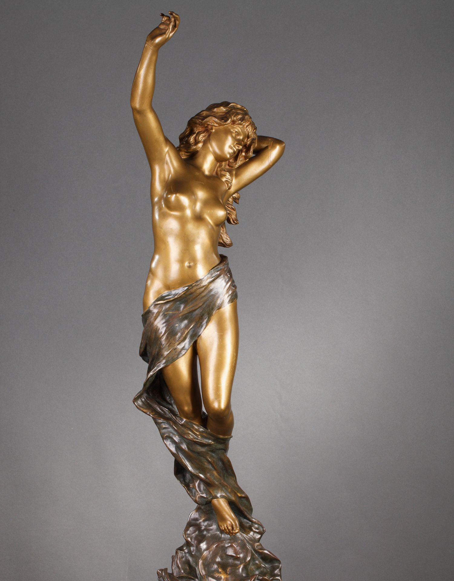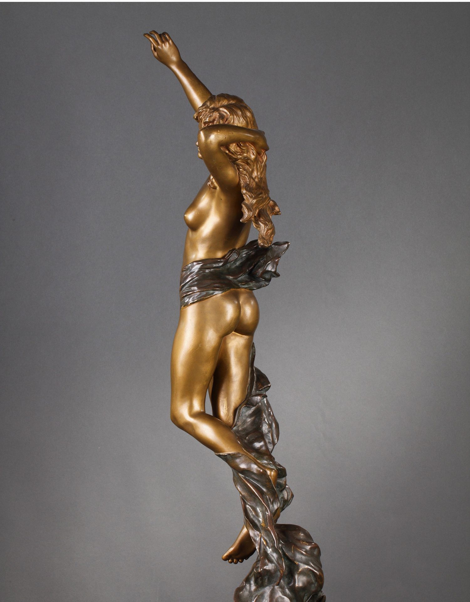 独角鹿西洋古董法国雕塑家Henri ALLOUARD铜鎏金雕塑《宁芙女神》