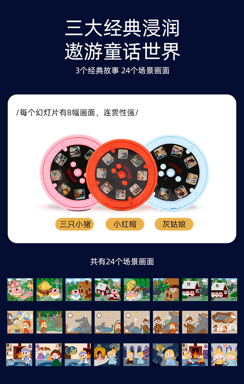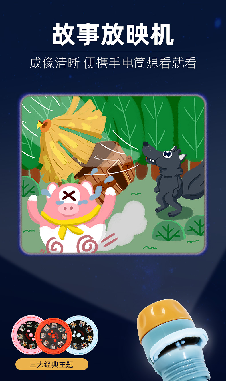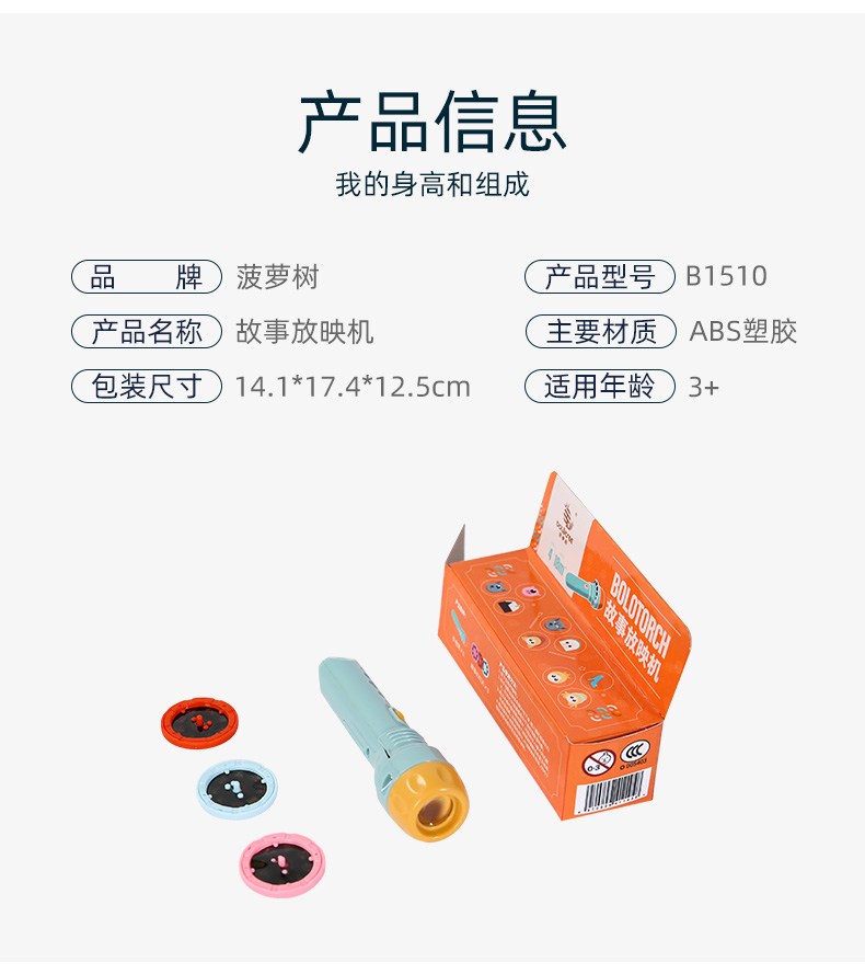 菠萝树投影手电筒故事放映机哄睡故事早教儿童投影仪发光玩具