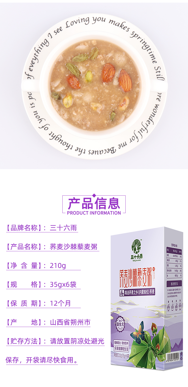 山西朔州三十六雨荞麦沙棘藜麦粥210g/盒