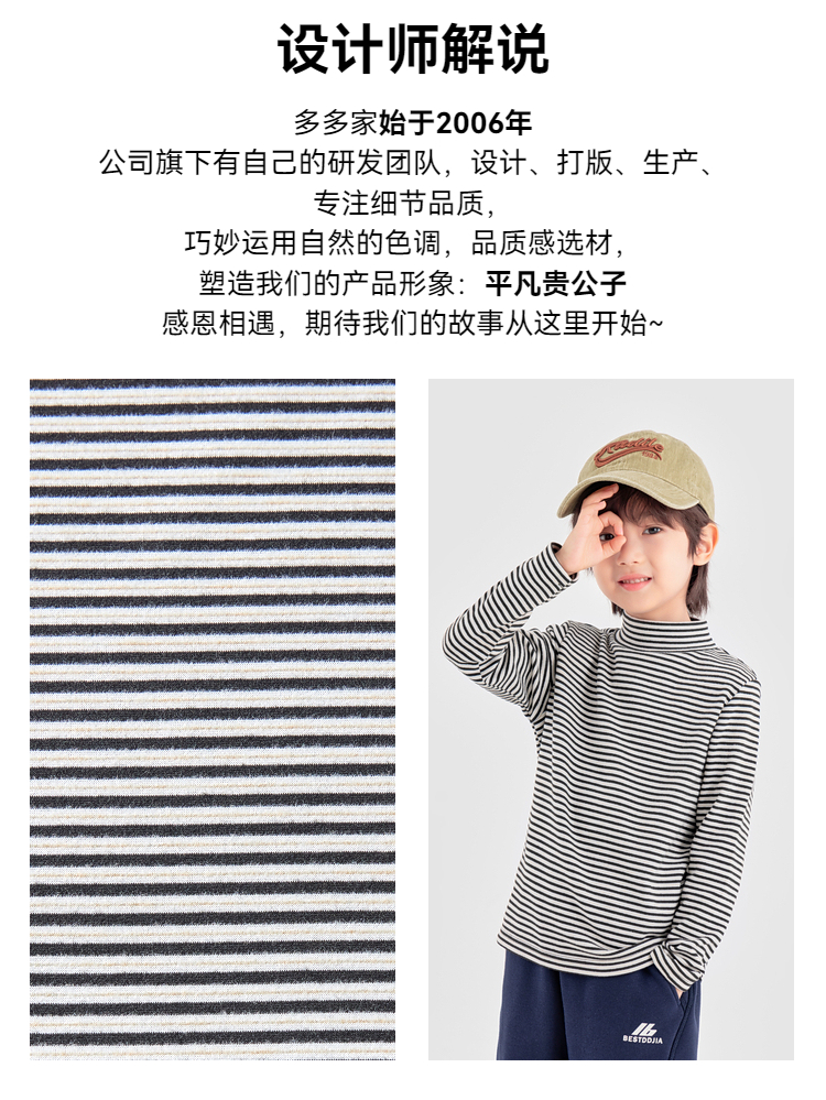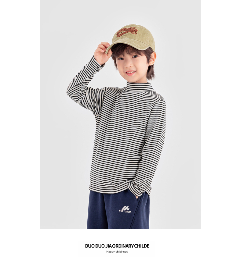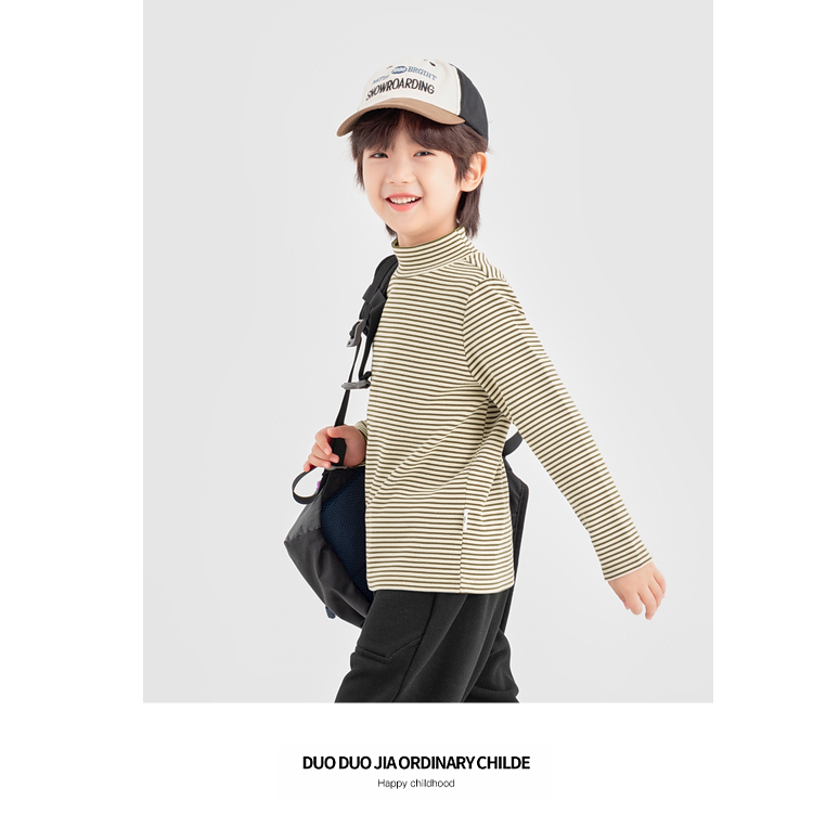 多多家男童打底衫秋冬2025新款冬装儿童中大童条纹内搭长袖T恤潮11184