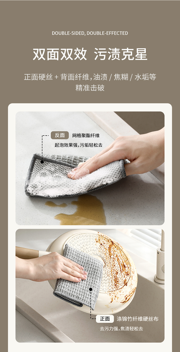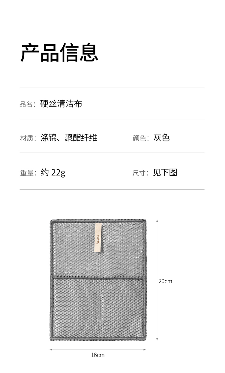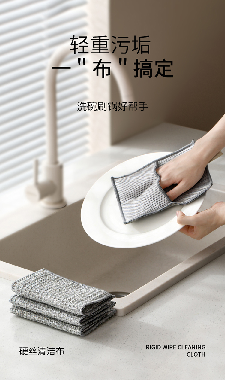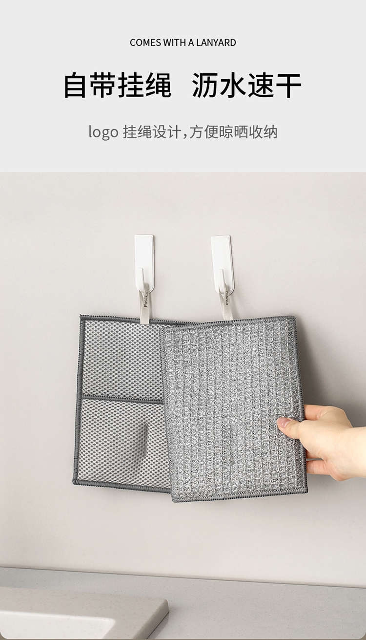 FaSoLa双面洗碗布家用清洁银丝抹布刷碗手套不沾油洗碗硬丝清洁布