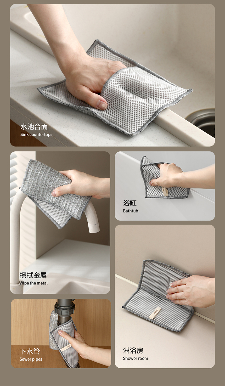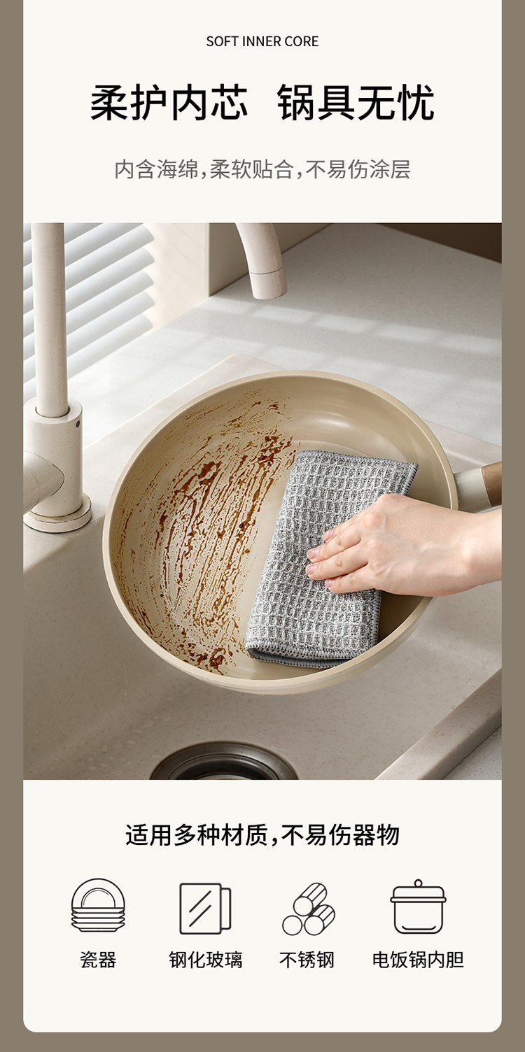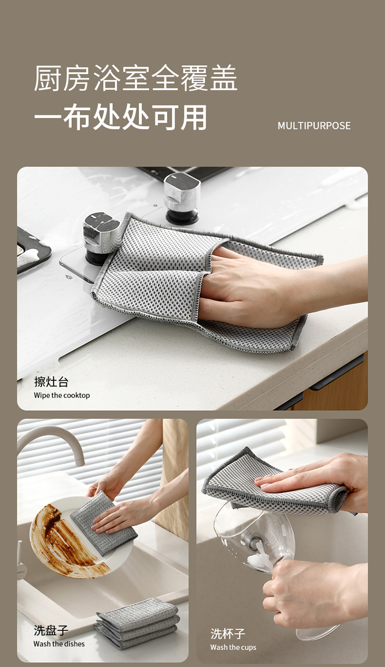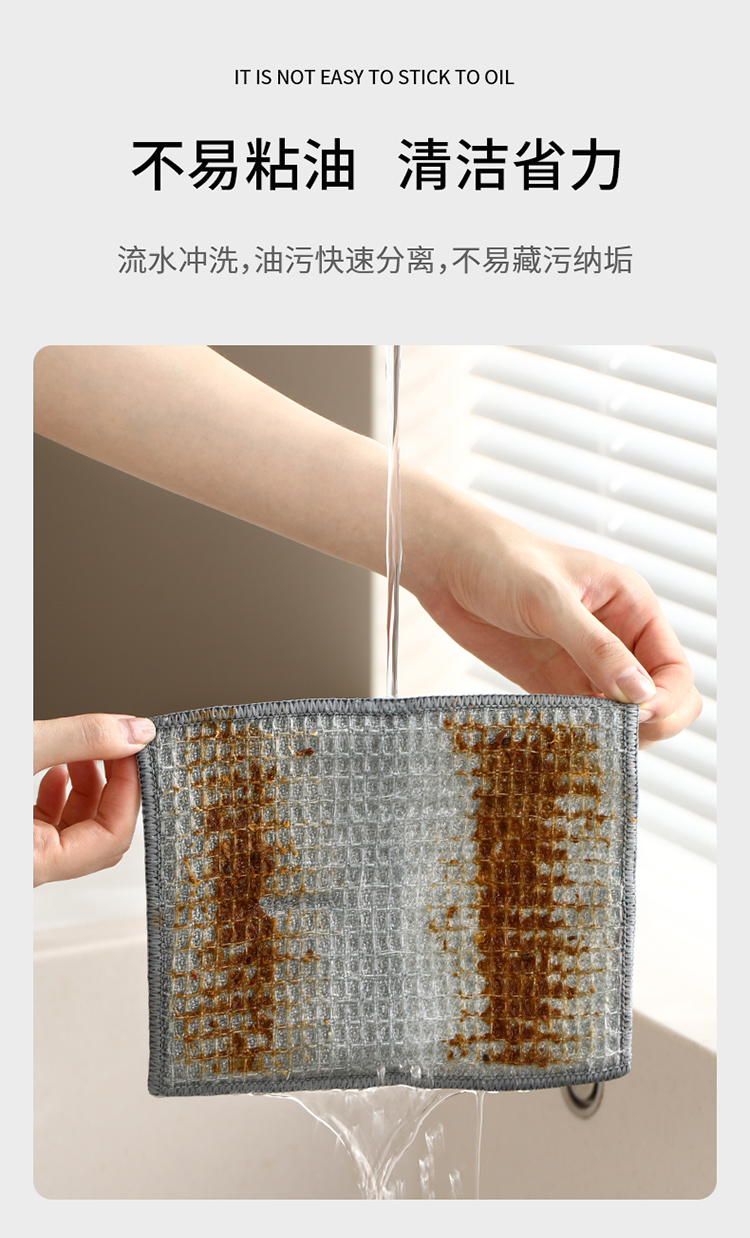 FaSoLa双面洗碗布家用清洁银丝抹布刷碗手套不沾油洗碗硬丝清洁布