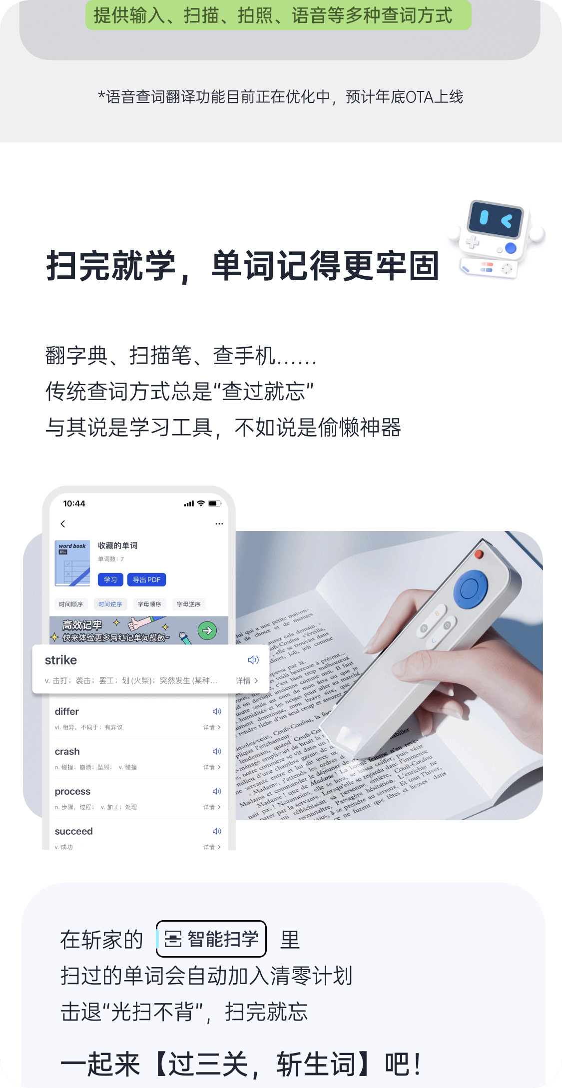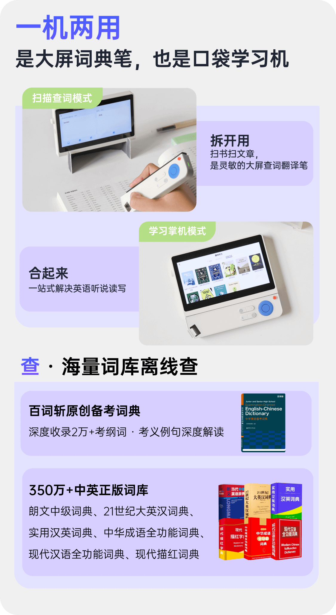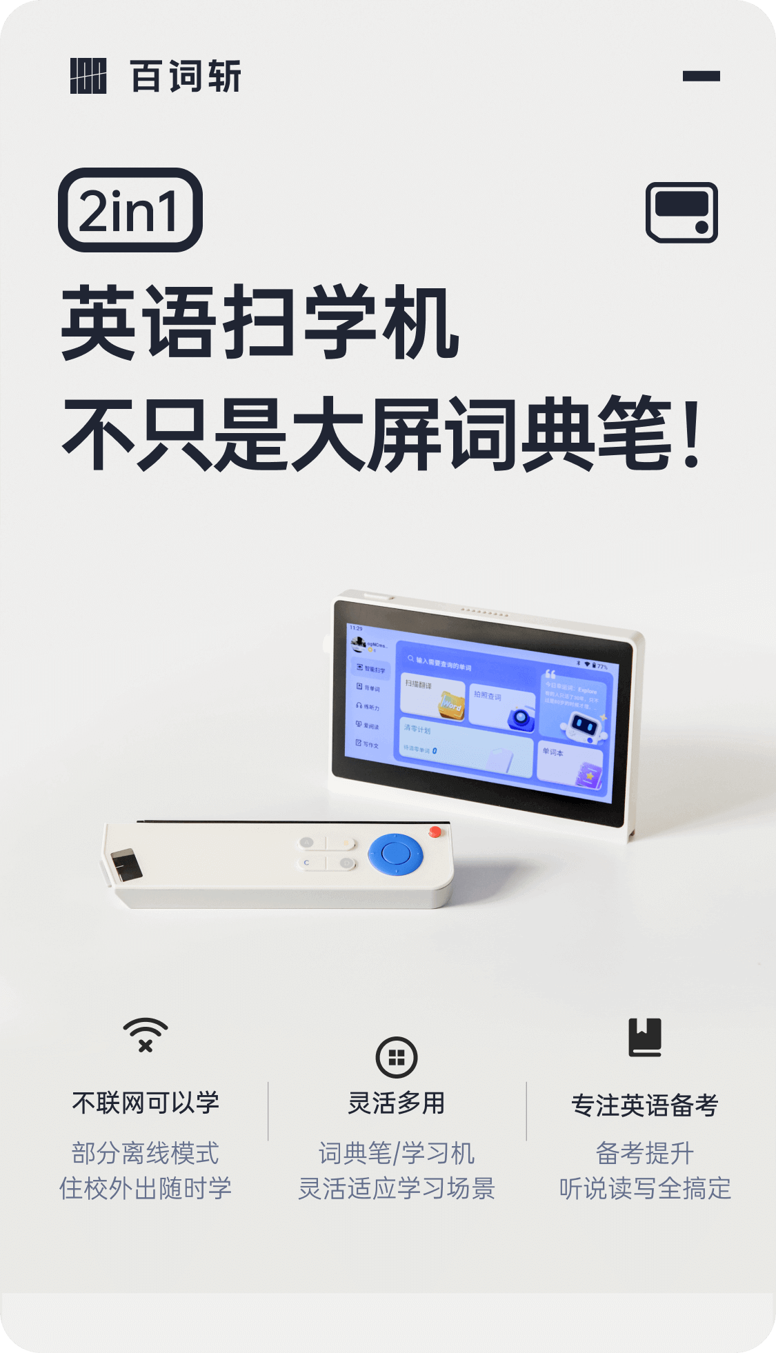 百词斩Click01扫学机便携英语学习机2in1真人发音小初高英语便携学习机电子词典扫描笔翻译大屏