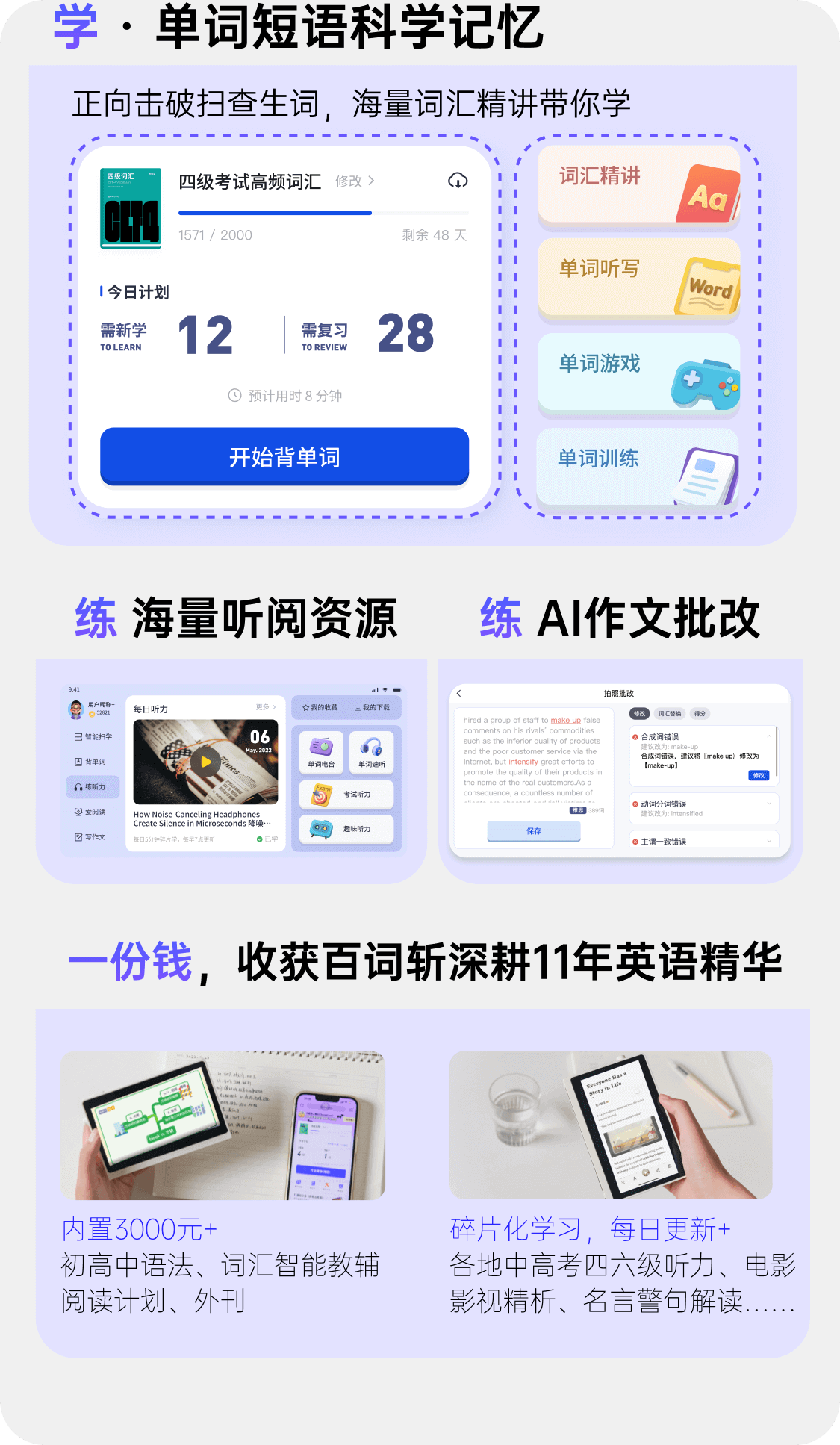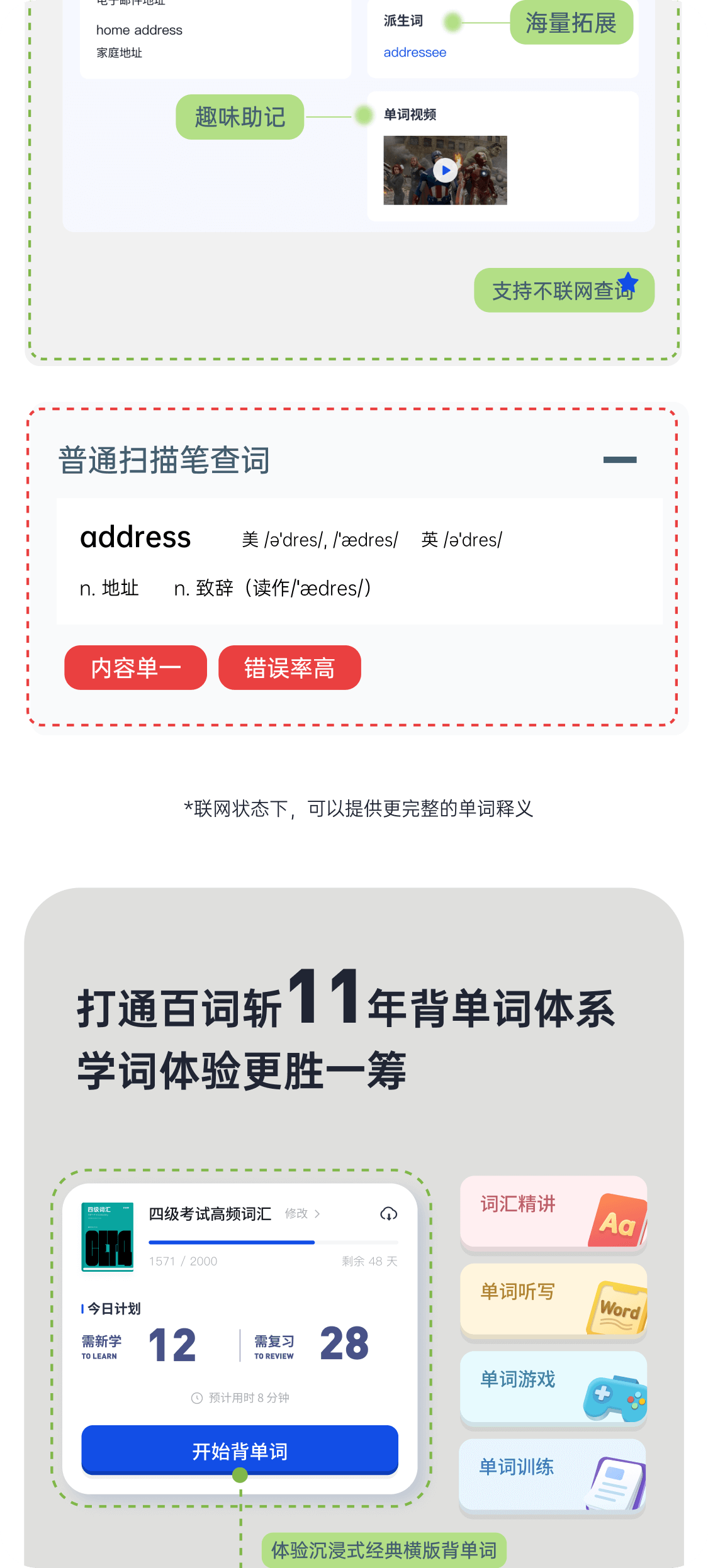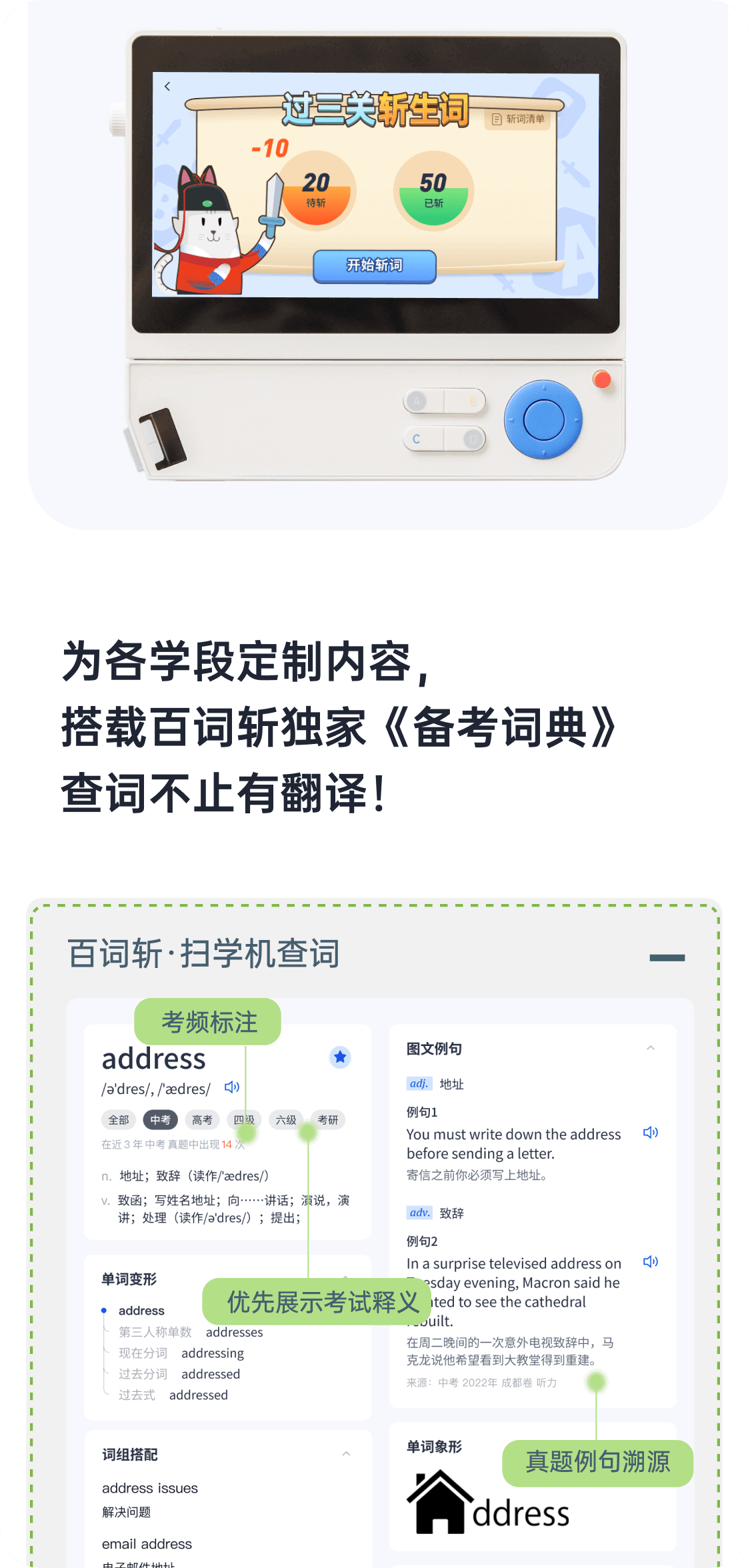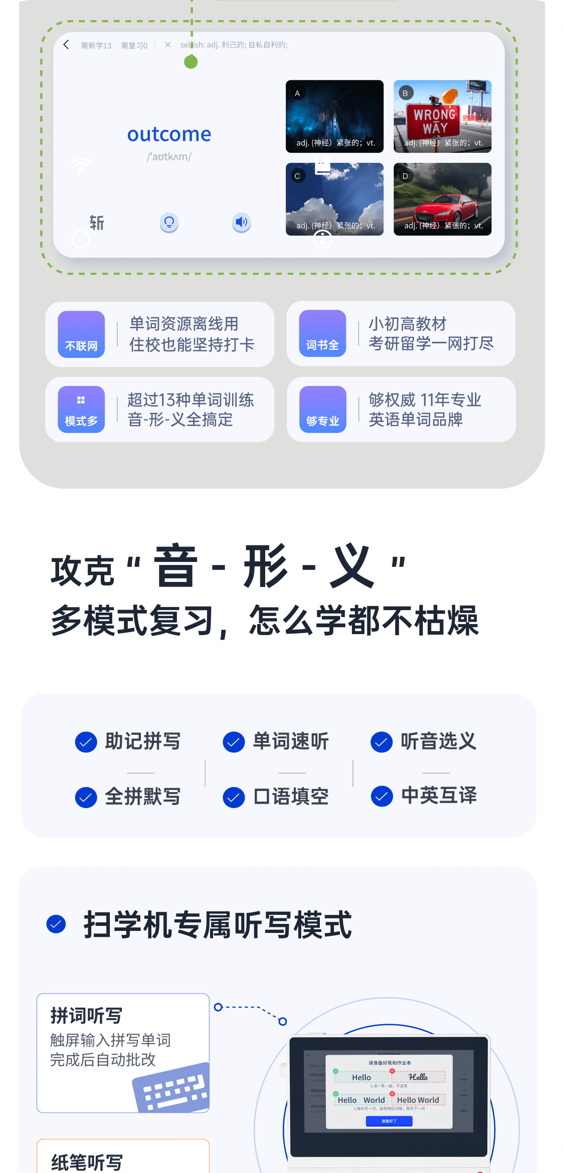 百词斩Click01扫学机便携英语学习机2in1真人发音小初高英语便携学习机电子词典扫描笔翻译大屏