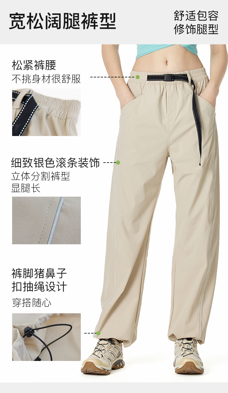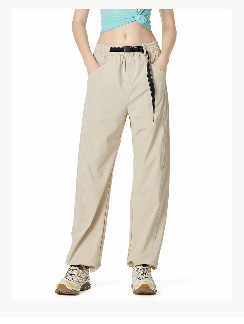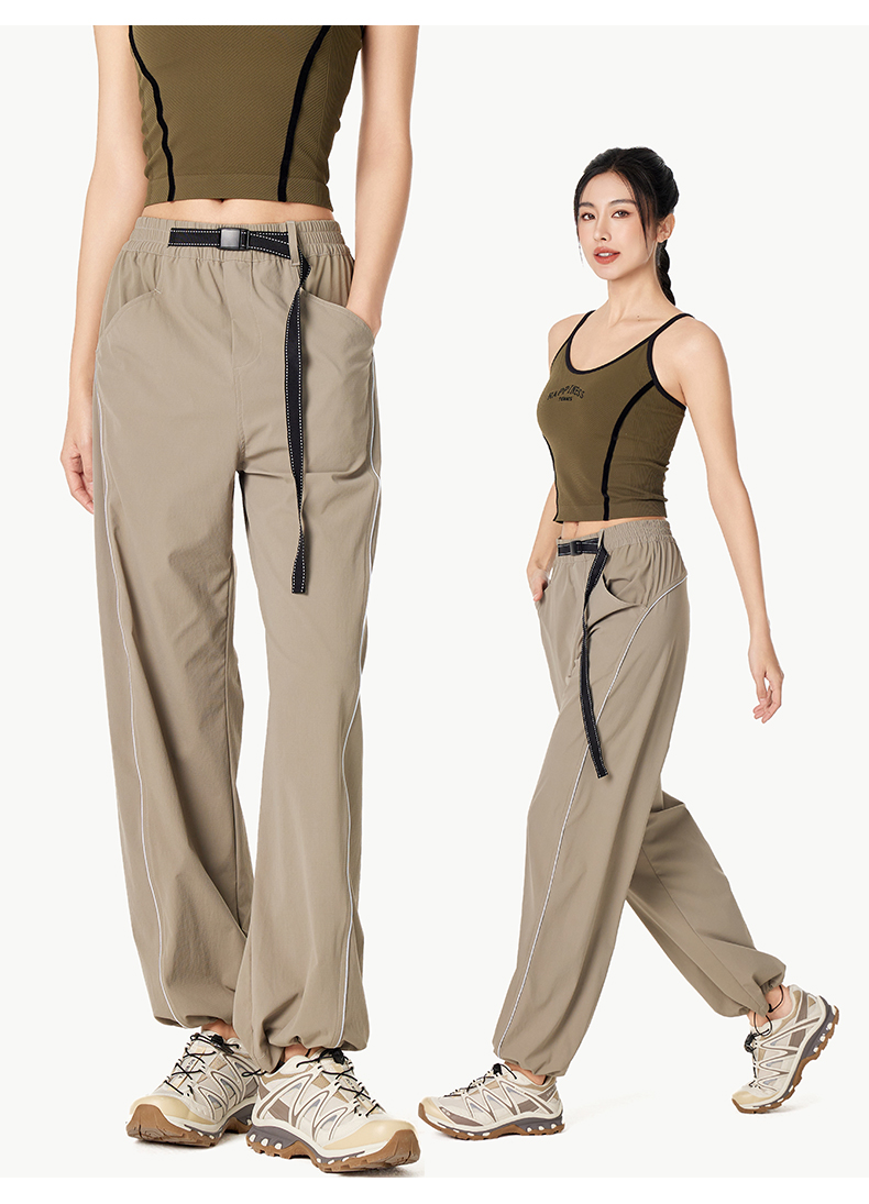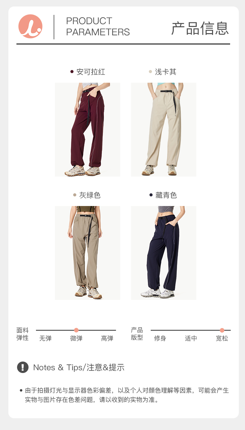 Leorrey/乐拉休闲复古简约宽松高腰防水防晒工装跑步运动裤