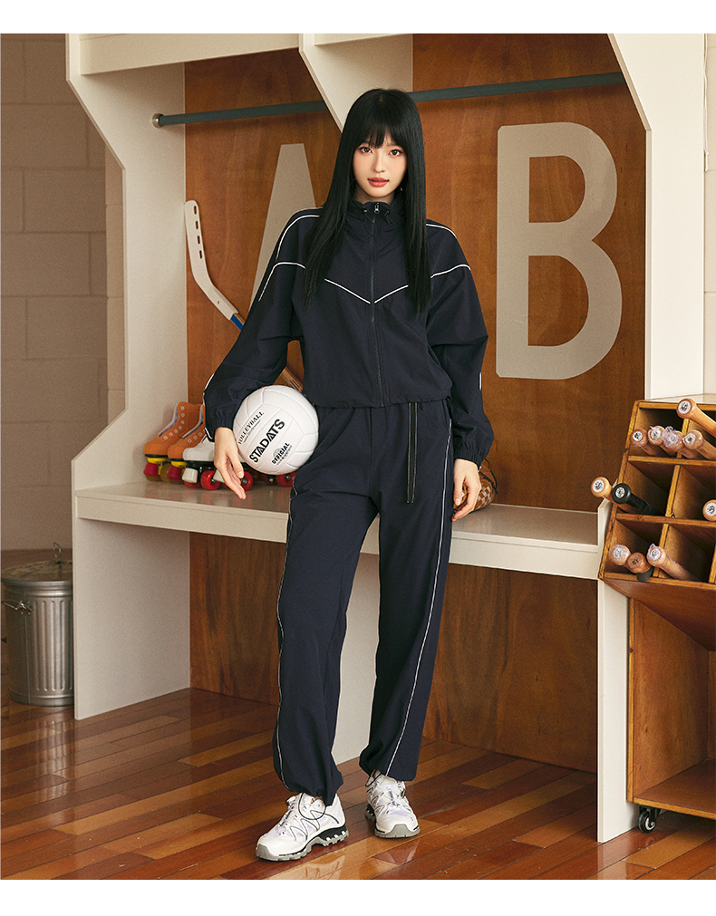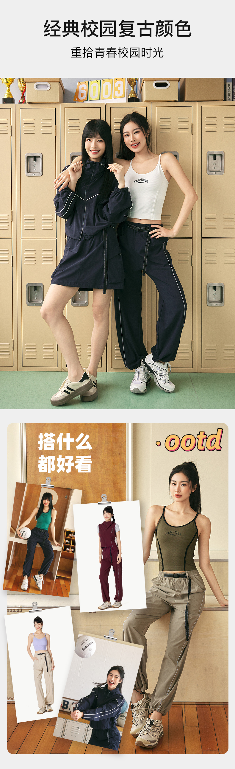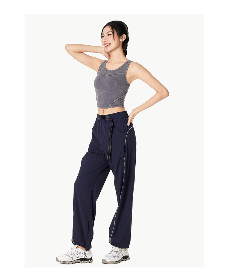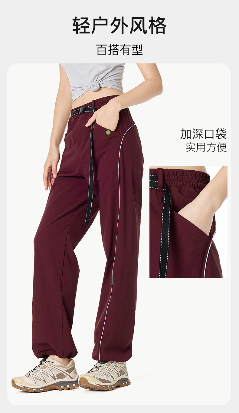 Leorrey/乐拉休闲复古简约宽松高腰防水防晒工装跑步运动裤