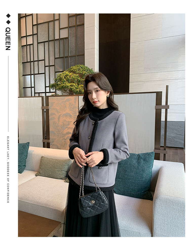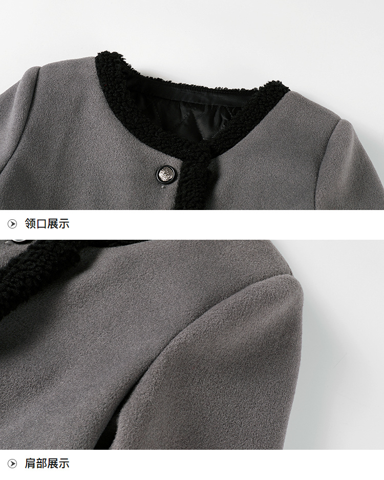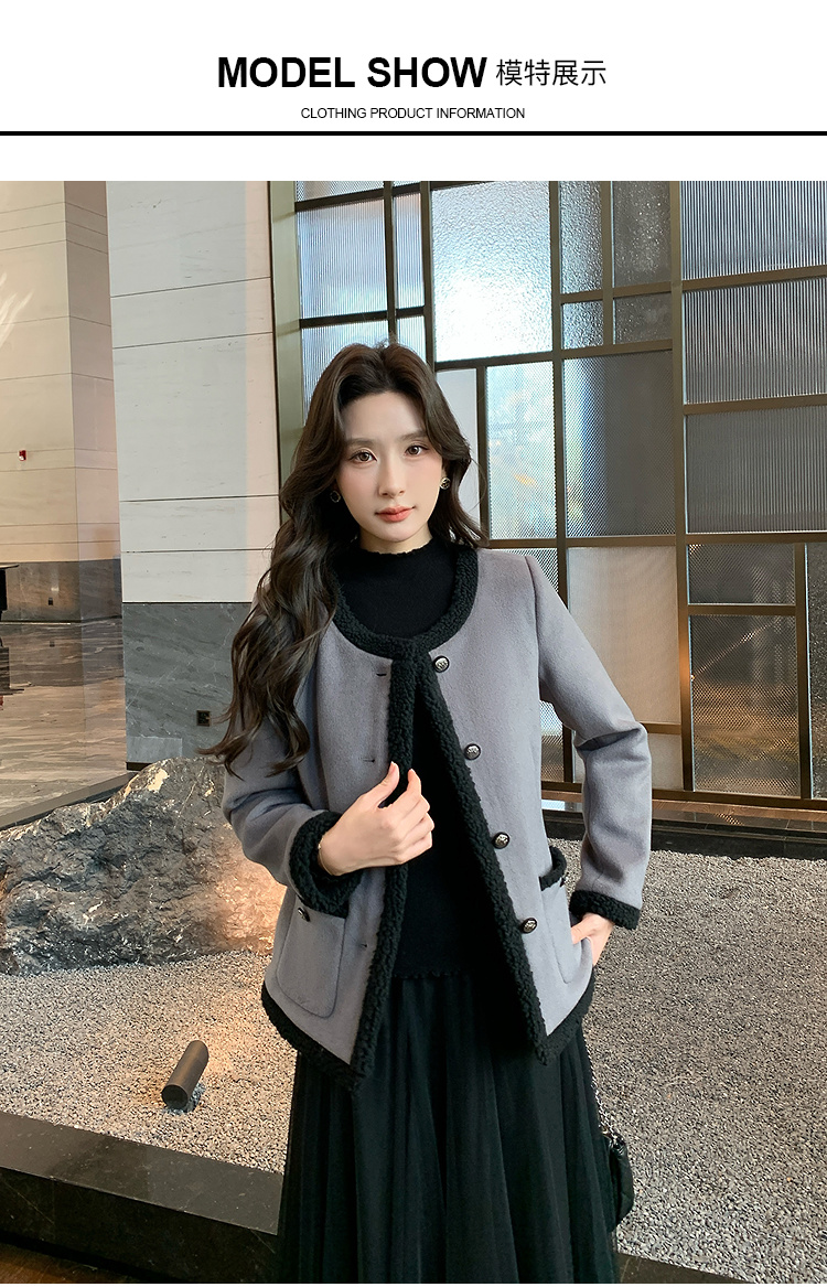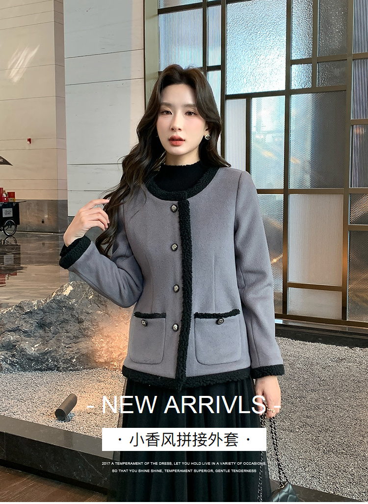 奢姿2024年冬季新款大码女装拼接圆领上衣胖妹妹小香风羊羔毛外套9944392057