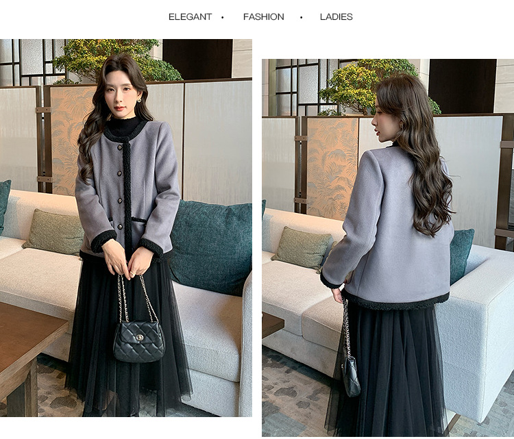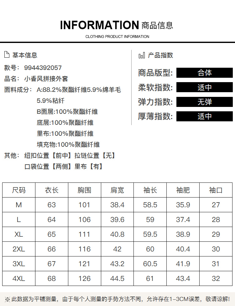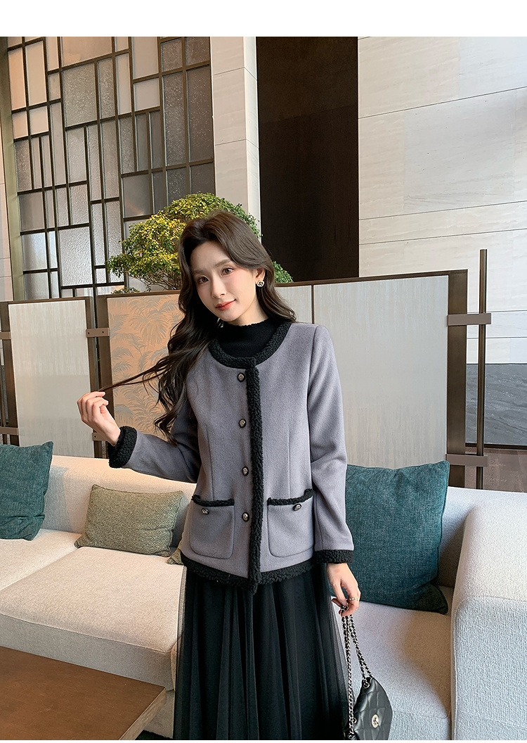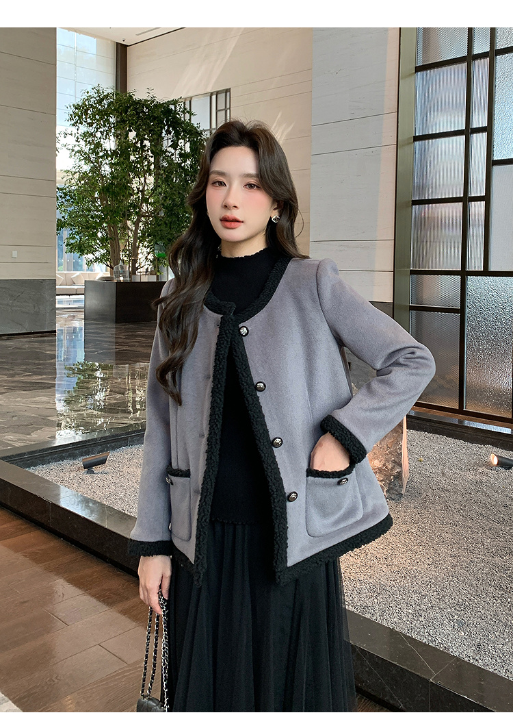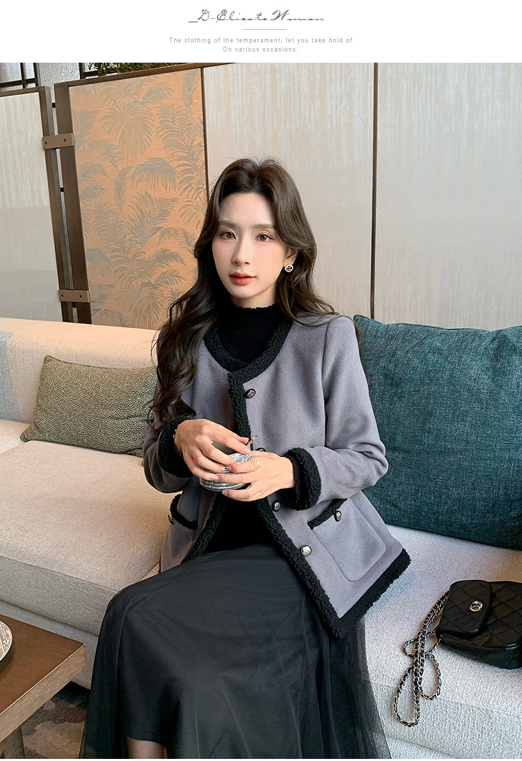 奢姿2024年冬季新款大码女装拼接圆领上衣胖妹妹小香风羊羔毛外套9944392057