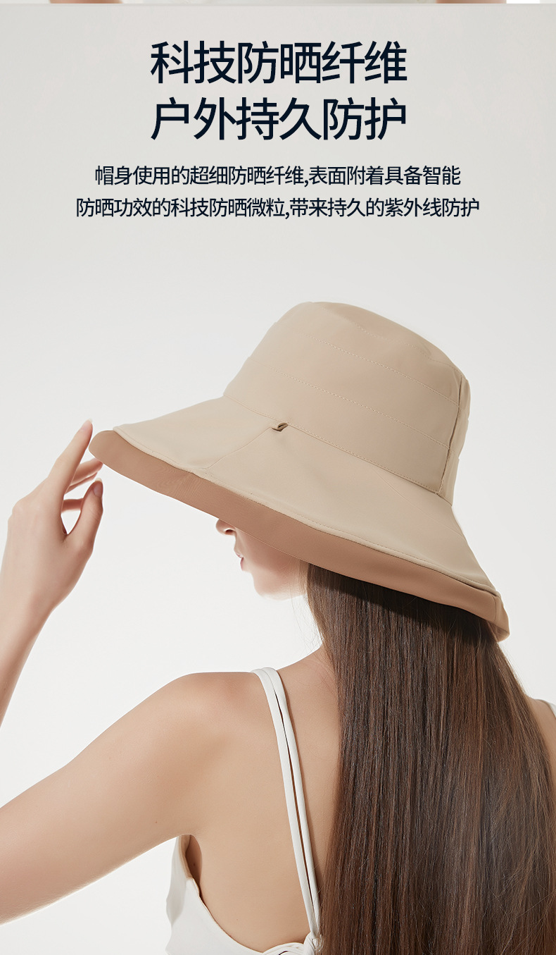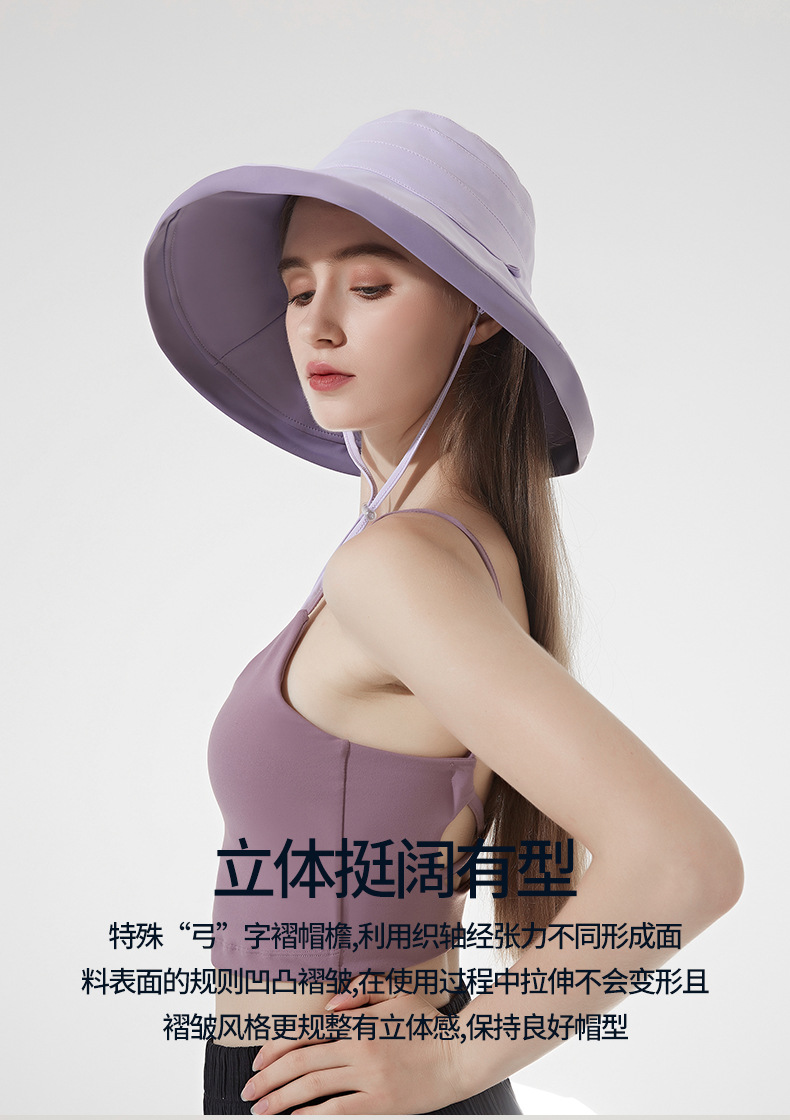 帽身使用的超细防晒维表面附着具备智能防晒功效的科技防晒微粒,带来持久的紫外线防护