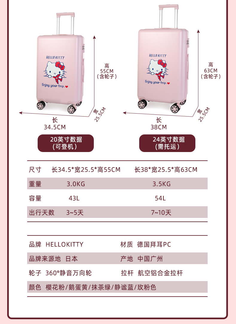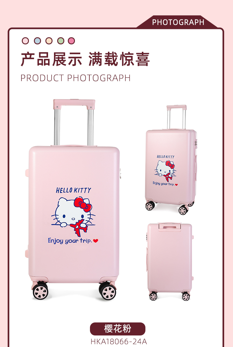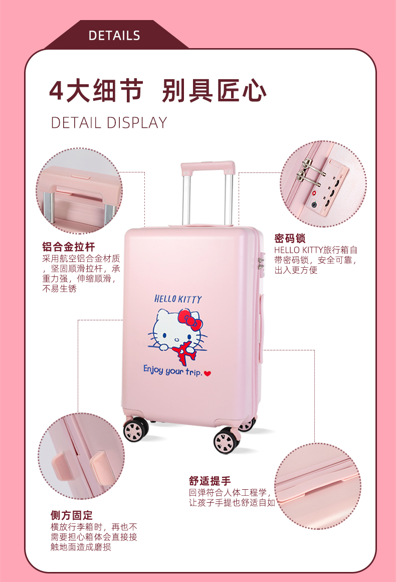 凯蒂猫HelloKitty密码锁拉杆箱 少女可爱20寸24旅行箱新