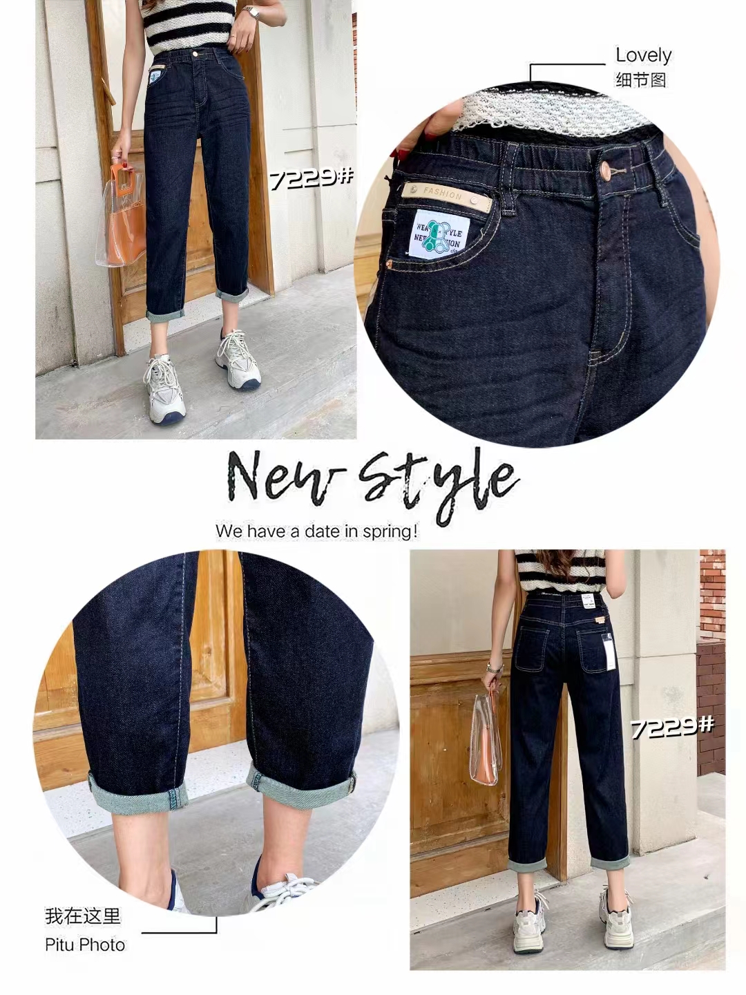 7229 # 深蓝 27-32 夏季薄款深色哈伦牛仔裤 高腰八分微跨弹力休闲百搭