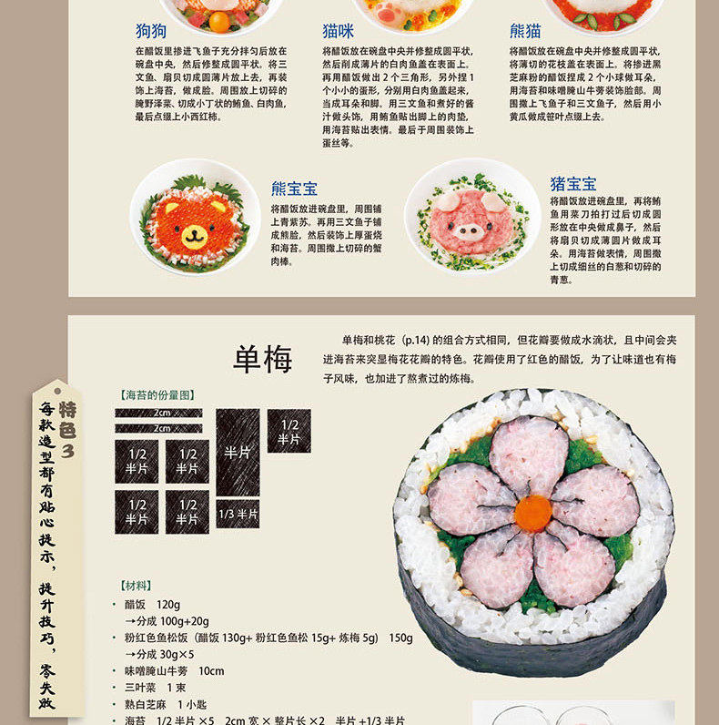造型寿司 简单自然的轻食寿司 寿司制作大全书籍 酱菜配料 花样造型寿司的基本做法大全 日式饭团寿司自制书可爱寿司食谱书籍