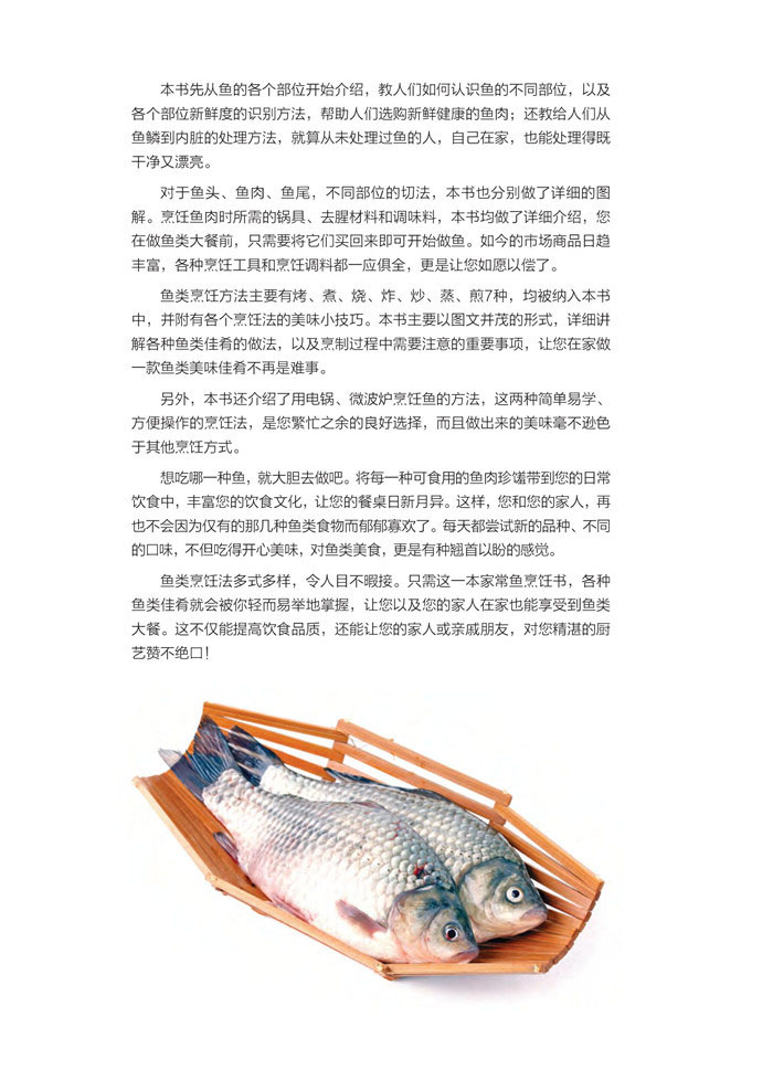 爱吃鱼的人福利来了!炒炸煎烧蒸烤拌煮,百变烹鱼技巧,炒锅、电锅、微波炉齐上阵,从准备到上桌全程烹饪指导,实用TIPS一点就通!192道精选鱼类美食,尽如你所爱,让你一次吃到HIGH!更多精彩好书点击这里:家常酱料一本就够(200 多种美味酱料大集合,为菜肴加分,“酱”出百变美滋味!)川湘菜客家菜一本就够(近200 道特色川湘菜、客家菜,就是这个味儿!)鸡汤的122种做法跟着大厨教你炒青菜(蔬菜的选购秘诀,炒蔬菜不涩不苦,保留蔬菜翠嫩颜色的诀窍……将简单的青菜炒出大厨的手艺,你也可以!)267碗好吃的面(汤面、拌面、炒面、焗面与汤头、高汤、酱料的奇妙组合,让你打开味蕾,感受面条的美妙滋味!)