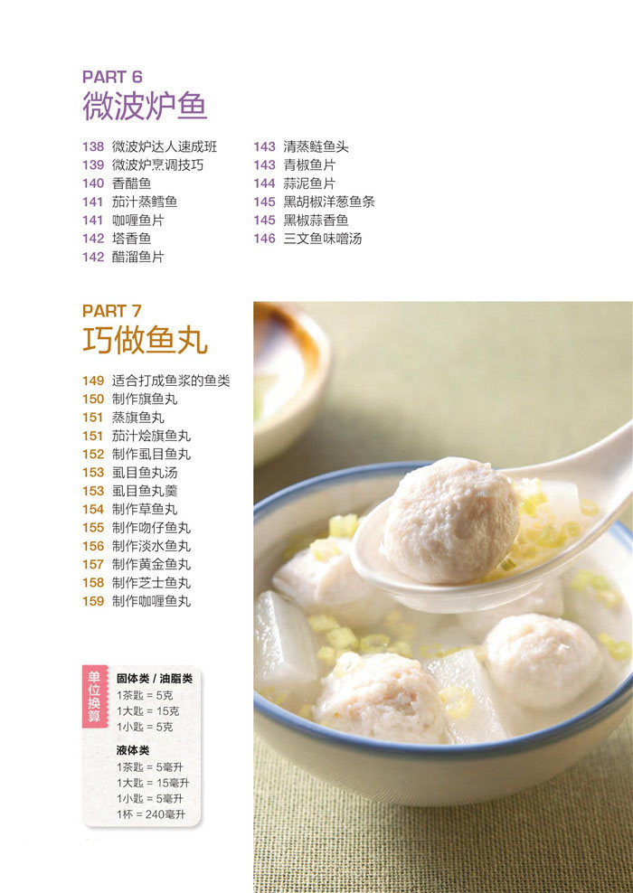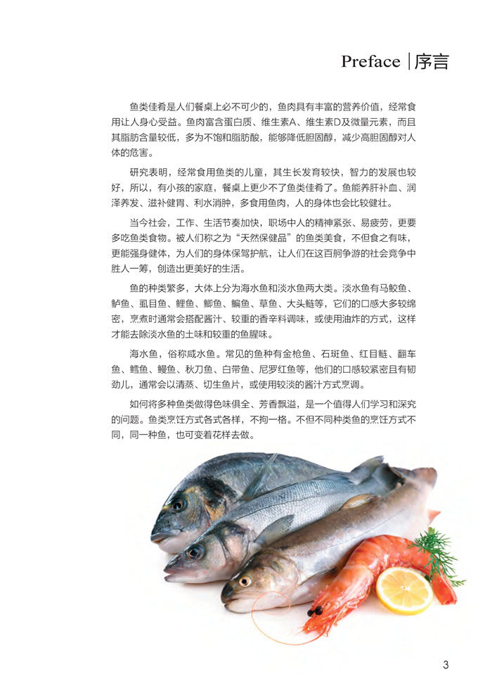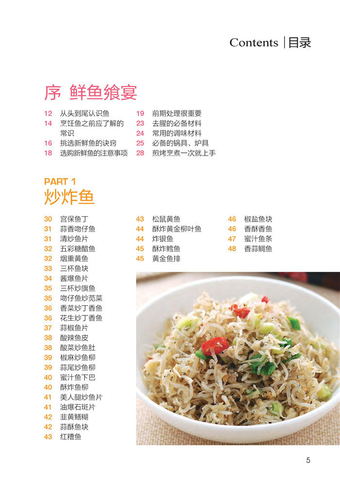 12 从头到尾认识鱼 14 烹饪鱼之前应了解的常识 16 挑选新鲜鱼的诀窍 18 选购新鲜鱼的注意事项 19 前期处理很重要 23 去腥的必备材料 24 常用的调味材料 25 必备的锅具、炉具 28 煎烤烹煮一次就上手 PART 1 炒炸鱼 30 宫保鱼丁 31 蒜香吻仔鱼 31 清炒鱼片 32 五彩糖醋鱼 32 烟熏黄鱼 33 三杯鱼块 34 酱爆鱼片 35 三杯炒旗鱼 35 吻仔鱼炒苋菜 36 香菜炒丁香鱼 36 花生炒丁香鱼 37 蒜椒鱼片 38 酸辣鱼皮 38 酸菜炒鱼肚 39 椒麻炒鱼柳 39 蒜尾炒鱼柳 40 蜜汁鱼下巴 40 酥炸鱼柳 41 美人腿炒鱼片 41 油爆石斑片 42 韭黄鳝糊 42 蒜酥鱼块 43 红糟鱼 43 松鼠黄鱼 44 酥炸黄金柳叶鱼 44 炸银鱼 45 酥炸鳕鱼 45 黄金鱼排 46 椒盐鱼块 46 香酥香鱼 47 蜜汁鱼条 48 香蒜鲷鱼 PART 2 煎烧鱼 50 香煎鳕鱼 51 香煎鲳鱼 51 煎带鱼 52 酱汁煎秋刀 52 蛋汁煎鱼片 53 蒜香煎三文鱼 54 普罗旺斯煎鳕鱼 54 红糟鱼片 55 干煎鱼肉 55 香煎柳橙芥末三文鱼 56 吻仔鱼煎蛋 56 干煎虱目鱼肚 57 糖醋鱼 58 豆豉焖鱼头 59 干烧鱼 59 醋溜鱼片 60 干烧虱目鱼肚 60 酱烧鱼肚 61 豆瓣鲤鱼 62 葱烧鲫鱼 62 番茄烧鱼 63 腐竹烧鱼 63 蒜苗马鲛鱼 64 大蒜烧黄鱼 64 干煎茄汁黄鱼 65 五柳鱼 66 大蒜烧鱼下巴 67 干烧鱼下巴 67 韩式泡菜鱼 68 红烧划水 68 豆酱烧划水 69 酱烧鲤鱼 70 蜜汁鱼片 70 金沙鱼片 71 干烧鱼片 71 香油鱼皮 72 五柳鱼肉 PART 3 蒸烤鱼 74 豆酥鳕鱼 75 味噌烤鳕鱼 75 蒸鳕鱼 76 酸姜蒸鱼 76 豆豉蒸鱼肚 77 清蒸鲈鱼 78 烟熏鱼肉 79 香蒜蒸鱼 79 剁椒蒸鱼 80 鱼肉蒸蛋 80 桂花蒸鳊鱼 81 梅香蒸鱼片 81 清蒸鱼卷 82 柠檬鱼 83 塔香烤鱼 84 柠香烤三文鱼 84 大蒜烤三文鱼 85 奶油烤鱼 85 盐烤香鱼 86 .三文鱼 87 蒲烧鳗鱼 87 烤秋刀鱼 88 柚香鱼片 88 味噌烤鱼 89 奶酪.烤三文鱼 90 葱烧酱烤鳊鱼 90 风味烤鱼 91 烤鳕鱼片 91 烤奶油鳕鱼 92 蒸豆仔鱼 92 盐烤鱼下巴 93 泰式酸辣酱烤鱼 93 韩式辣味烤鲷鱼 94 照烧烤旗鱼 94 烤黄金柳叶鱼 95 清蒸尼罗红鱼 96 葱烤鲳鱼 PART 4 拌煮鱼 98 醋溜鱼块 99 三丝拌鱼条 99 凉拌洋葱鱼皮 100 五味鱼片 100 和风酱鱼丁 101 卤虱目鱼肚 101 味噌烫鱼片 102 啤酒鱼 102 酸菜鱼 103 砂锅鱼头 104 一锅鲜 104 鱼片火锅 105 归芪炖鲜鲤 105 味噌豆腐三文鱼汤 106 姜丝鱼块汤 106 味噌鱼下巴汤 107 虱目鱼肚汤 107 白鲳鱼米粉汤 108 鱼片翡翠煲 108 木瓜鱼煲 109 芙蓉鱼羹 110 苋菜吻仔鱼羹 110 茄汁炖鲭鱼 111 咖喱煮鱼块 112 马鲛鱼鱼羹 PART 5 电锅鱼 114 电锅达人速成指南 115 电锅烹调技巧大解析 116 咸鱼蒸豆腐 117 鱼粒蒸蛋 117 清蒸三文鱼 118 梅菜蒸鱼 118 笋片蒸鱼 119 豆瓣蒸鱼 119 榨菜肉丝蒸鱼 120 泰式蒸鱼 120 豆豉虱目鱼 121 西红柿肉酱蒸鳕鱼 121 五柳蒸鱼 122 甜辣鱼片 122 豉汁蒸鱼头 123 豆酥蒸鳕鱼 124 咸冬瓜蒸鳕鱼 124 咖喱蒸马鲛鱼 125 粉蒸鳝鱼 125 台式蒸鱼 126 大蒜炖鳗鱼 126 蒸鲜鱼 127 蛤蜊蒸鱼片 127 红曲蒸鱼 128 腌梅蒸鳕鱼 128 XO酱蒸鳕鱼 129 三文鱼菜饭 129 鲷鱼咸蛋菜饭 130 胡萝卜吻仔鱼菜饭 130 港式咸鱼菜饭 131 金枪鱼鸡肉饭 131 金枪鱼蔬菜饭 132 吻仔鱼粥 132 番茄鱼汤 133 姜丝鲫鱼汤 133 当归炖鱼 134 鲜鱼味噌汤 134 山药鲈鱼汤 135 清蒸石斑鱼 136 茶树菇三文鱼卷 PART 6 微波炉鱼 138 微波炉达人速成班 139 微波炉烹调技巧 140 香醋鱼 141 茄汁蒸鳕鱼 141 咖喱鱼片 142 塔香鱼 142 醋溜鱼片 143 清蒸鲢鱼头 143 青椒鱼片 144 蒜泥鱼片 145 黑胡椒洋葱鱼条 145 黑椒蒜香鱼 146 三文鱼味噌汤 PART 7 巧做鱼丸 149 适合打成鱼浆的鱼类 150 制作旗鱼丸 151 蒸旗鱼丸 151 茄汁烩旗鱼丸 152 制作虱目鱼丸 153 虱目鱼丸汤 153 虱目鱼丸羹 154 制作草鱼丸 155 制作吻仔鱼丸 156 制作淡水鱼丸 157 制作黄金鱼丸 158 制作芝士鱼丸 159 制作咖喱鱼丸