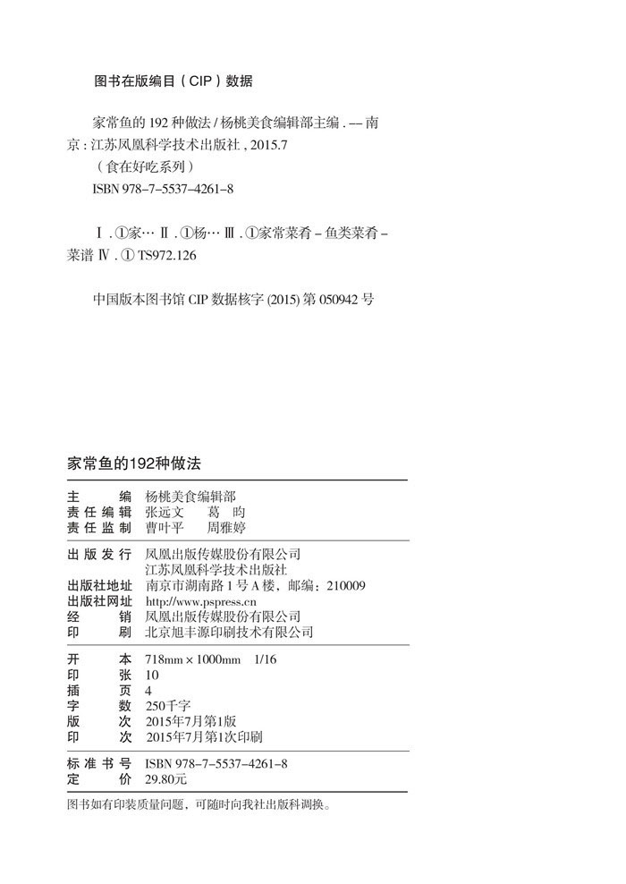 书名:家常鱼的192种做法(实图演示鱼类菜品烹饪全步骤)