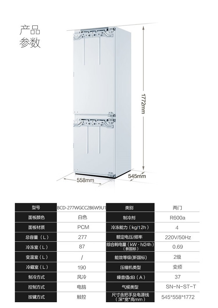 卡萨帝两门冰箱BCD-277WGCC2B6W9U1