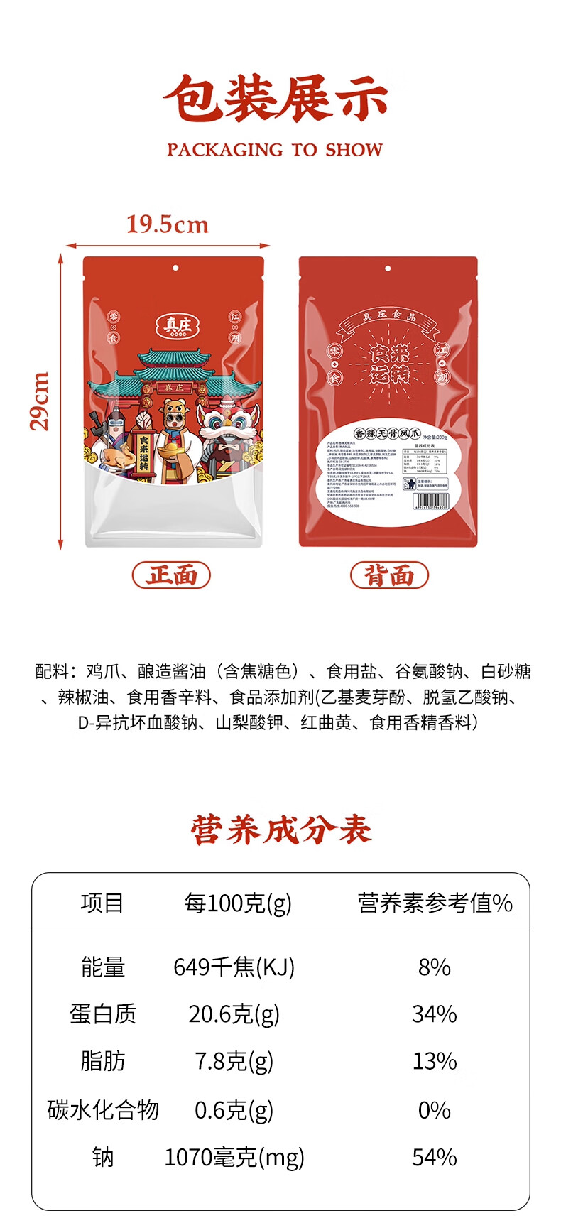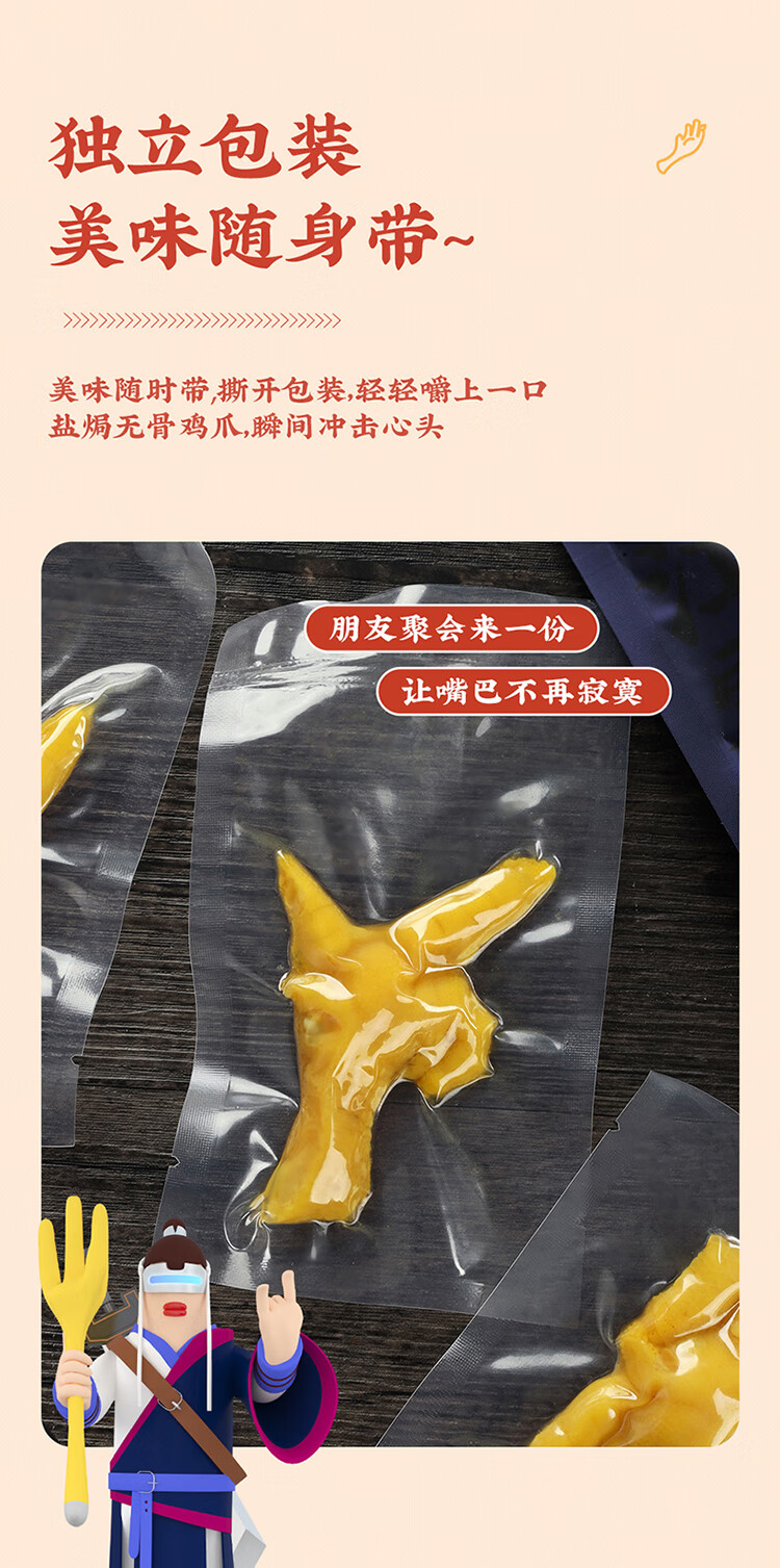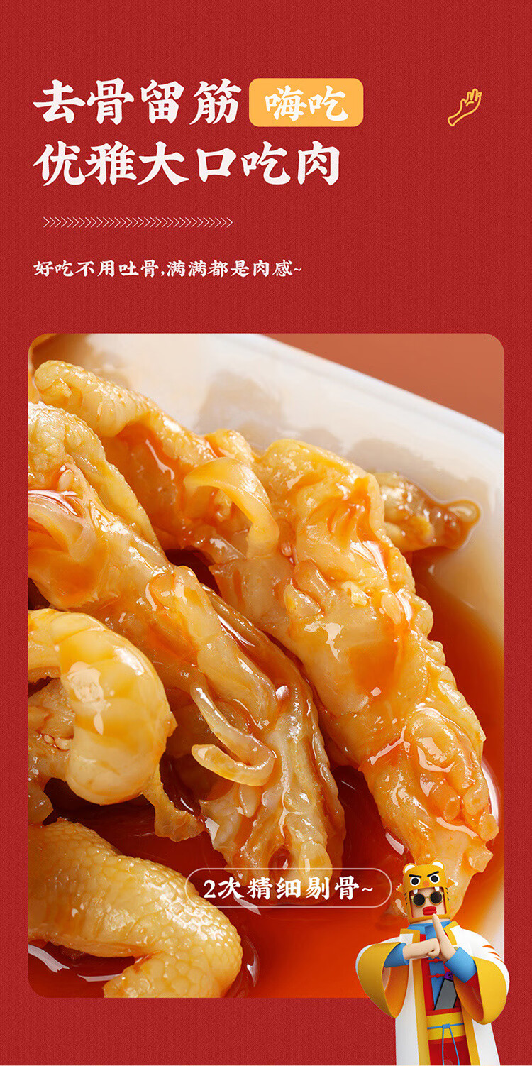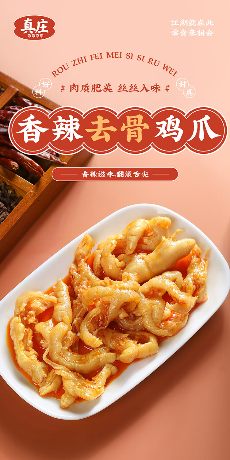 真莊真庄香辣无骨凤爪广东梅州客家特产独立包装脱骨去骨鸡爪零食熟食 盐焗/香辣无骨风爪200g*1(独立装)