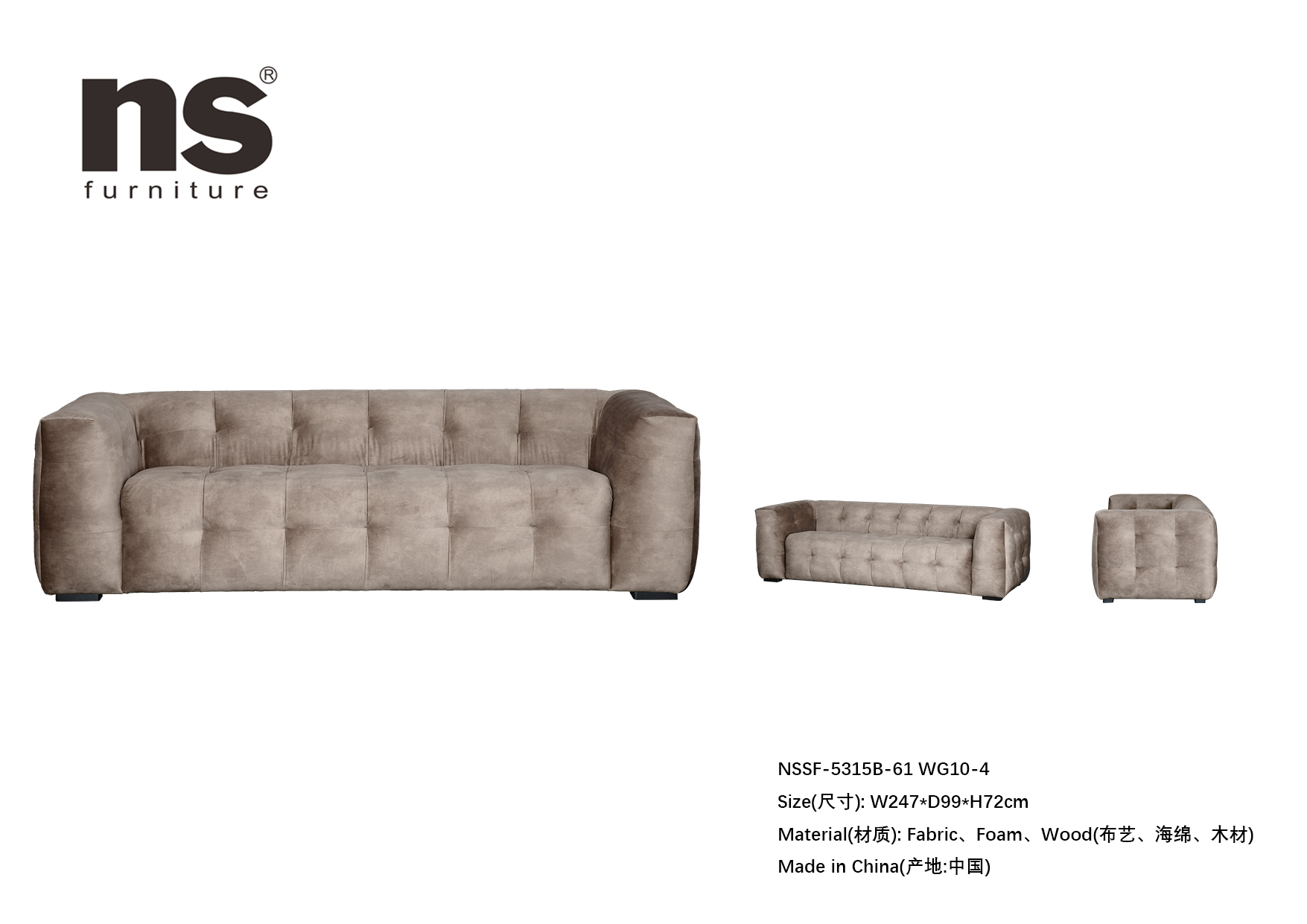 NS家居nsfurniture布艺三人位沙发NSSF-5315B-61系列