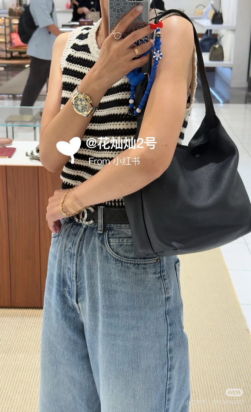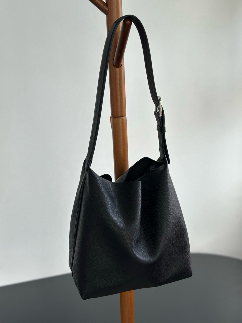 这款黑色水桶包,鹿皮质细腻有质感,简约的桶型设计,自带随性慵懒氛围。可调节肩带,适配不同背携需求,容量实用,能轻松装下日常小物件。无论是通勤还是休闲出行,都能为造型增添利落又高级的感觉,是提升穿搭品味的好帮手~