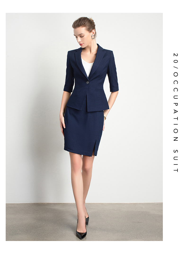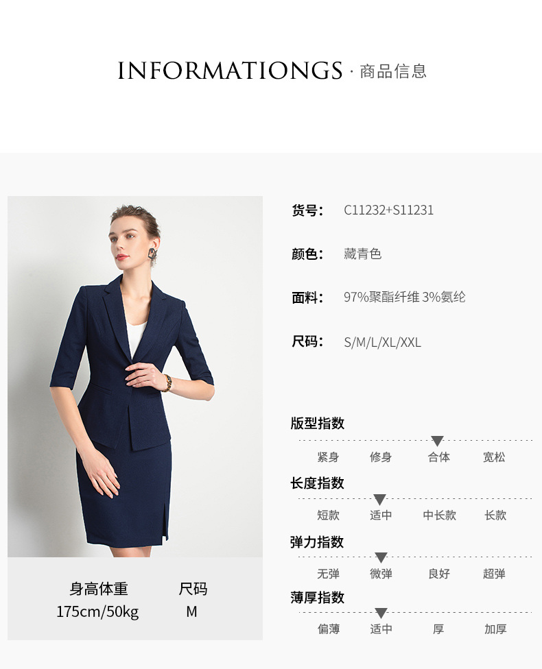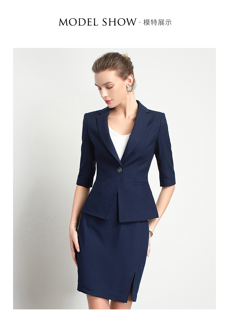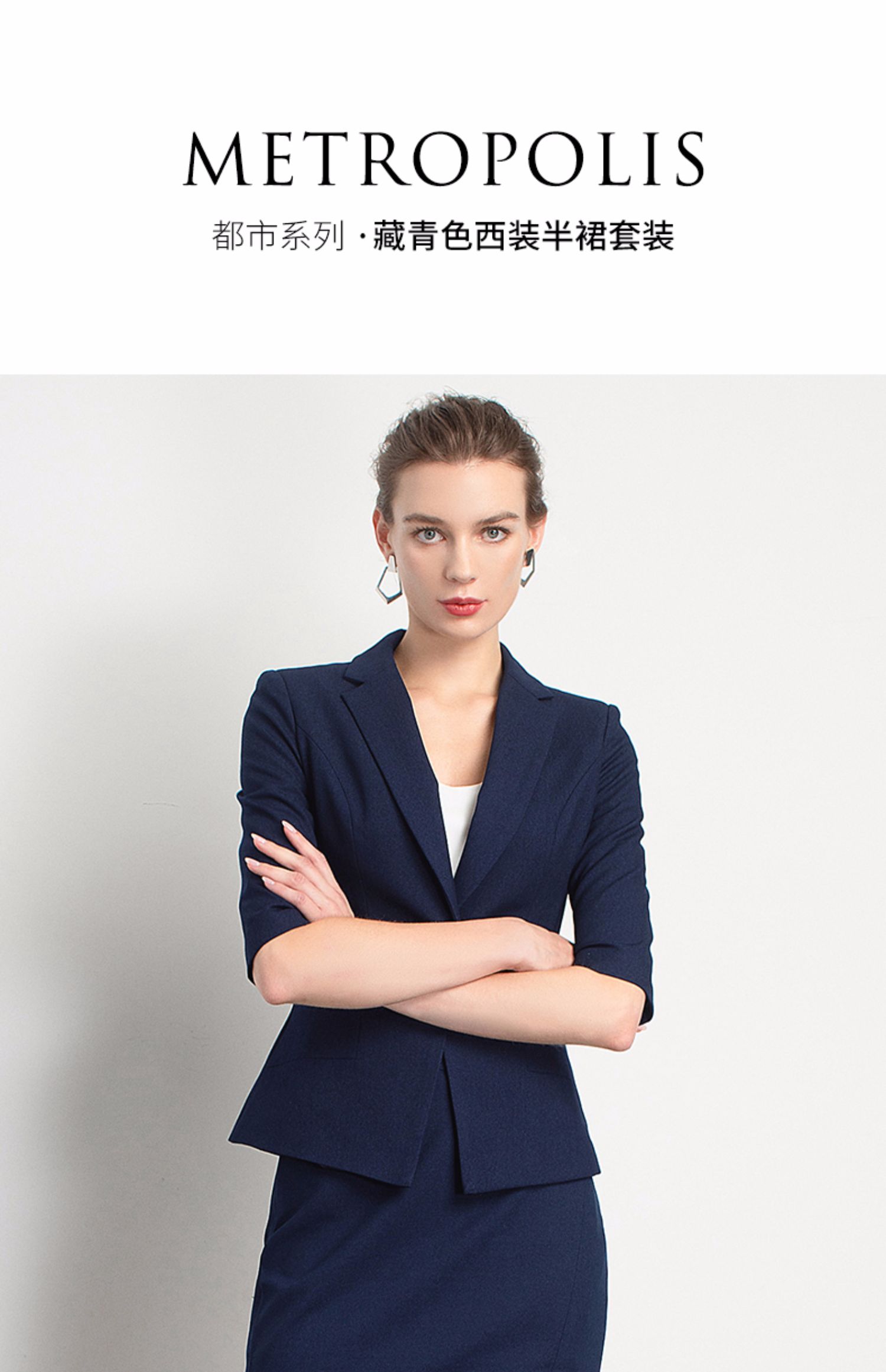 IWY/藏青色短袖职业裙套装高端定制洋气高雅女气质款商务西装大气C11232+S11232