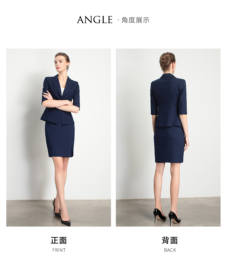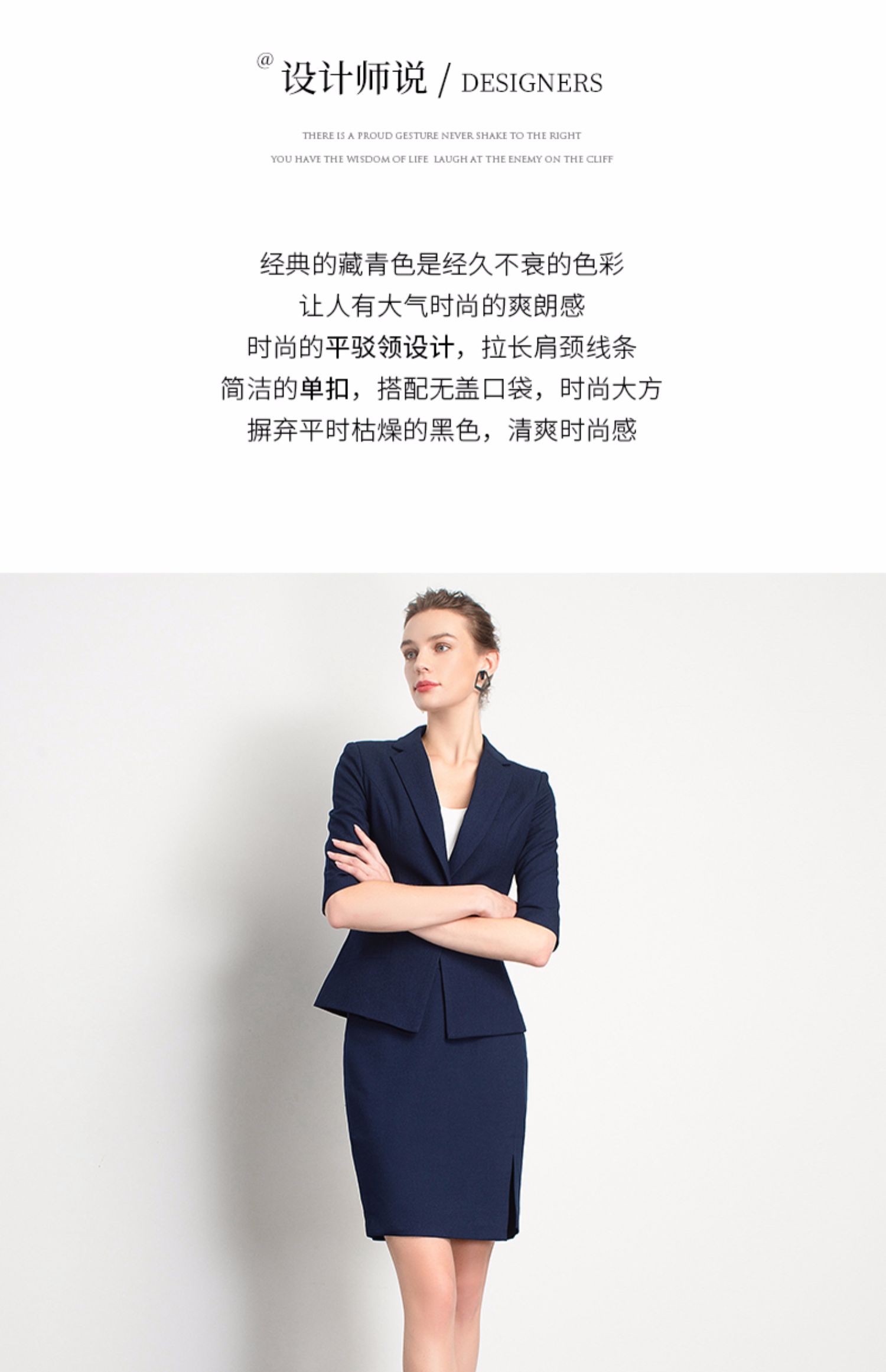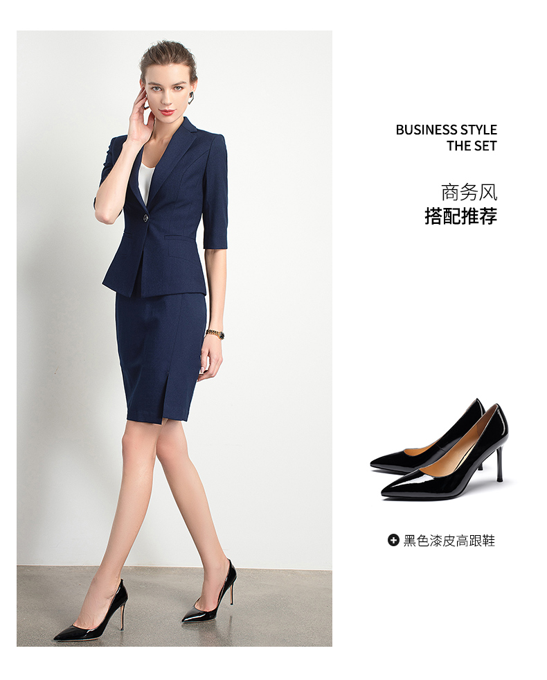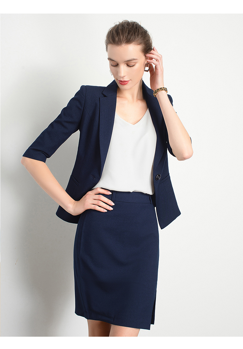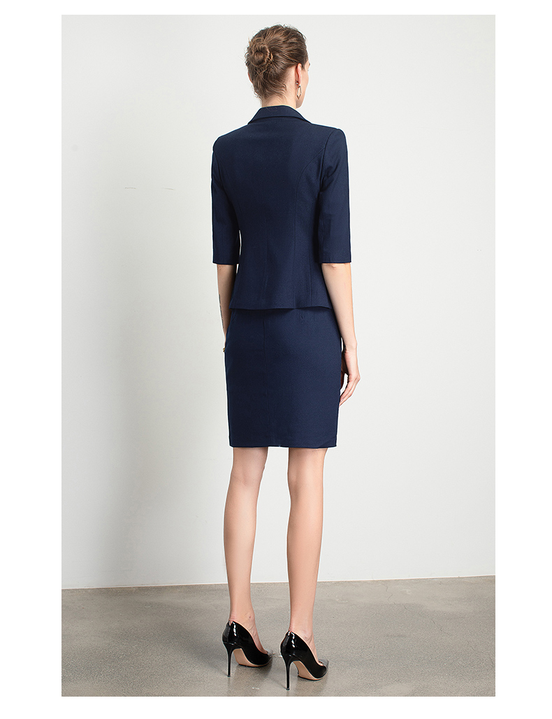 IWY/藏青色短袖职业裙套装高端定制洋气高雅女气质款商务西装大气C11232+S11232