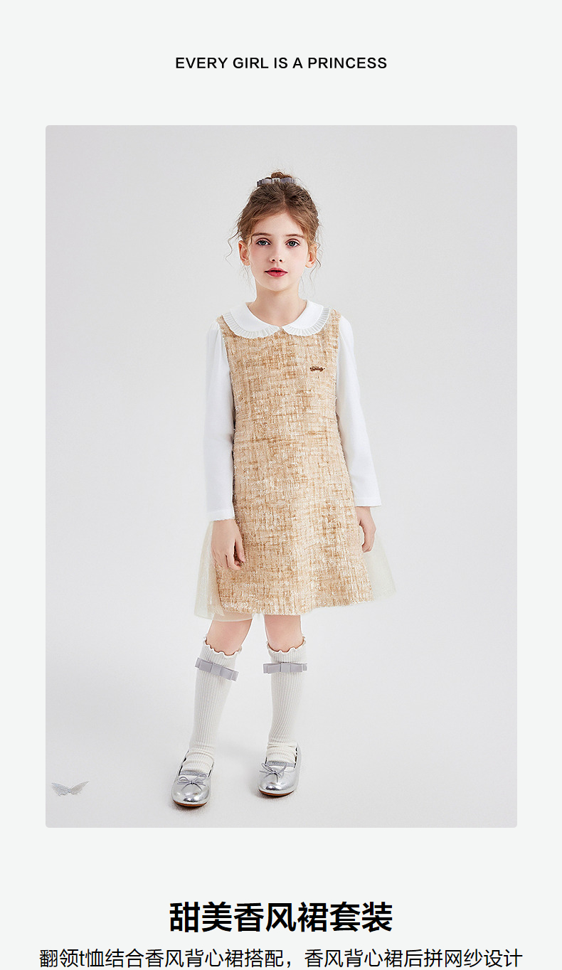笛莎Deesha 童装女童套装2025秋新款女童甜美香风裙套装