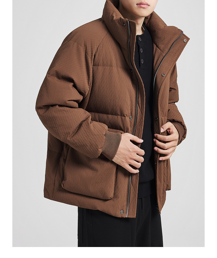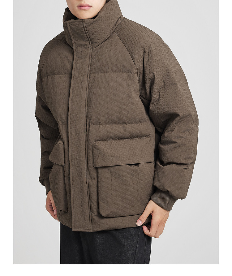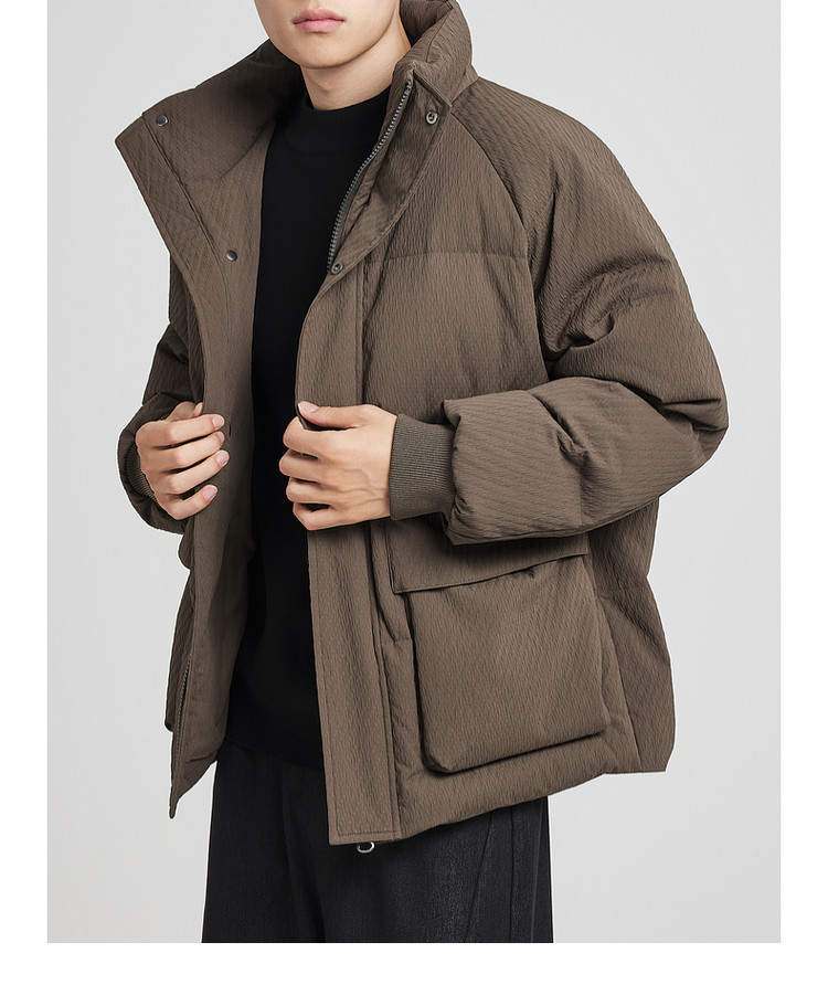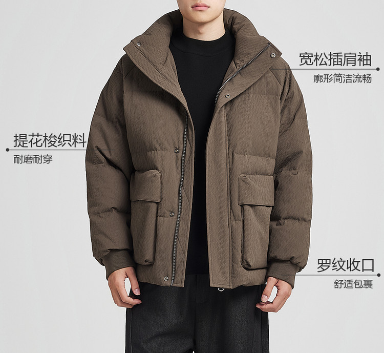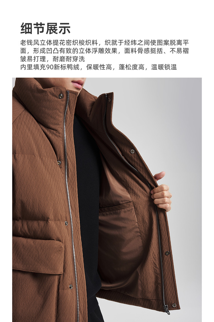 墨麦客男装老钱风立领羽绒服男士2025冬季新款厚款提花保暖外套男