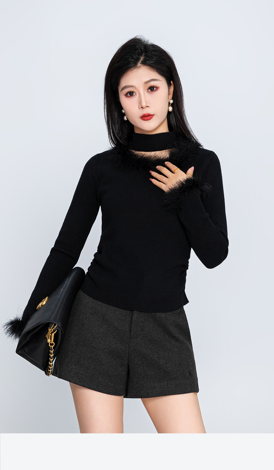冬上新毛绒装饰镂空半高领针织打底衫1254167 商品图1
