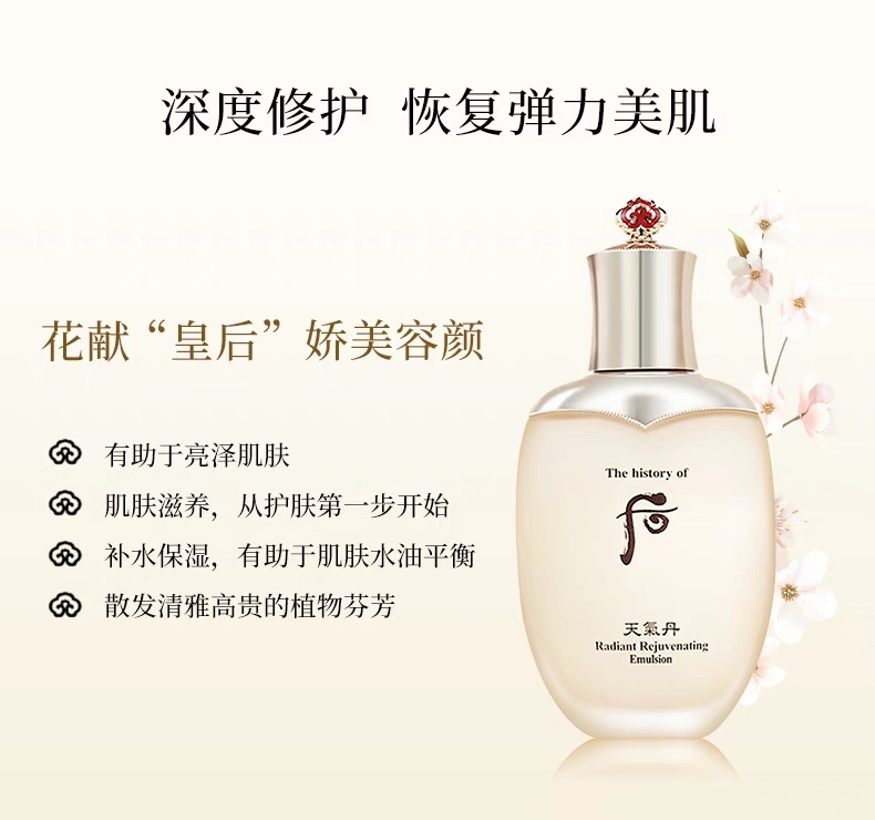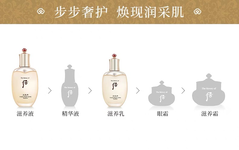 丰富的营养滋润皮肤,从内到外透亮,保持较好的皮肤状态,使用当时就会有皮肤白皙的感觉,拥有宫中高成就的韩方成分效果,抹上渐渐融化渗透肌肤,易吸收。