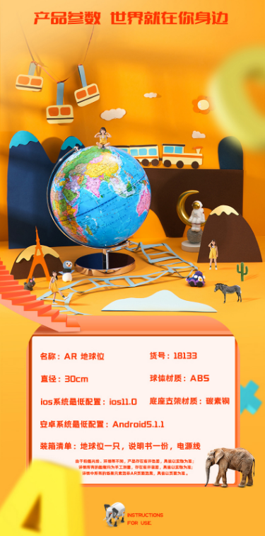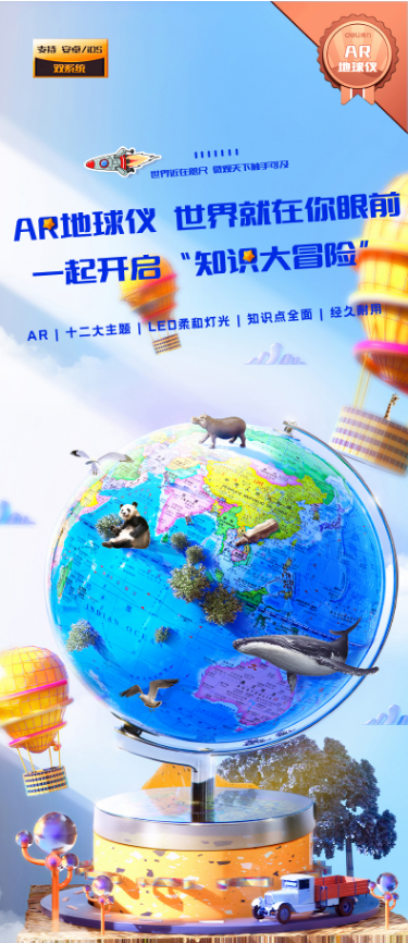 【2022开学季】得力(deli)AR智能地球仪语音讲解大号带灯3D立体学习文具 地理启蒙开学创意礼品 儿童生日礼物lgh 30cm 18133
