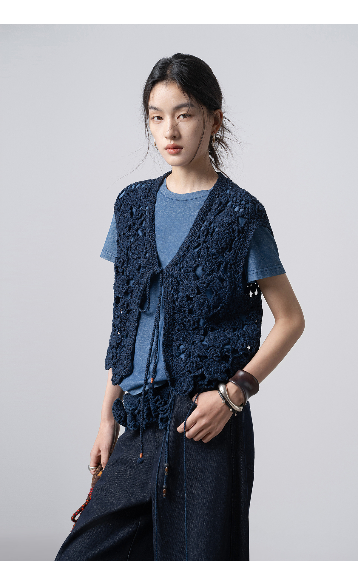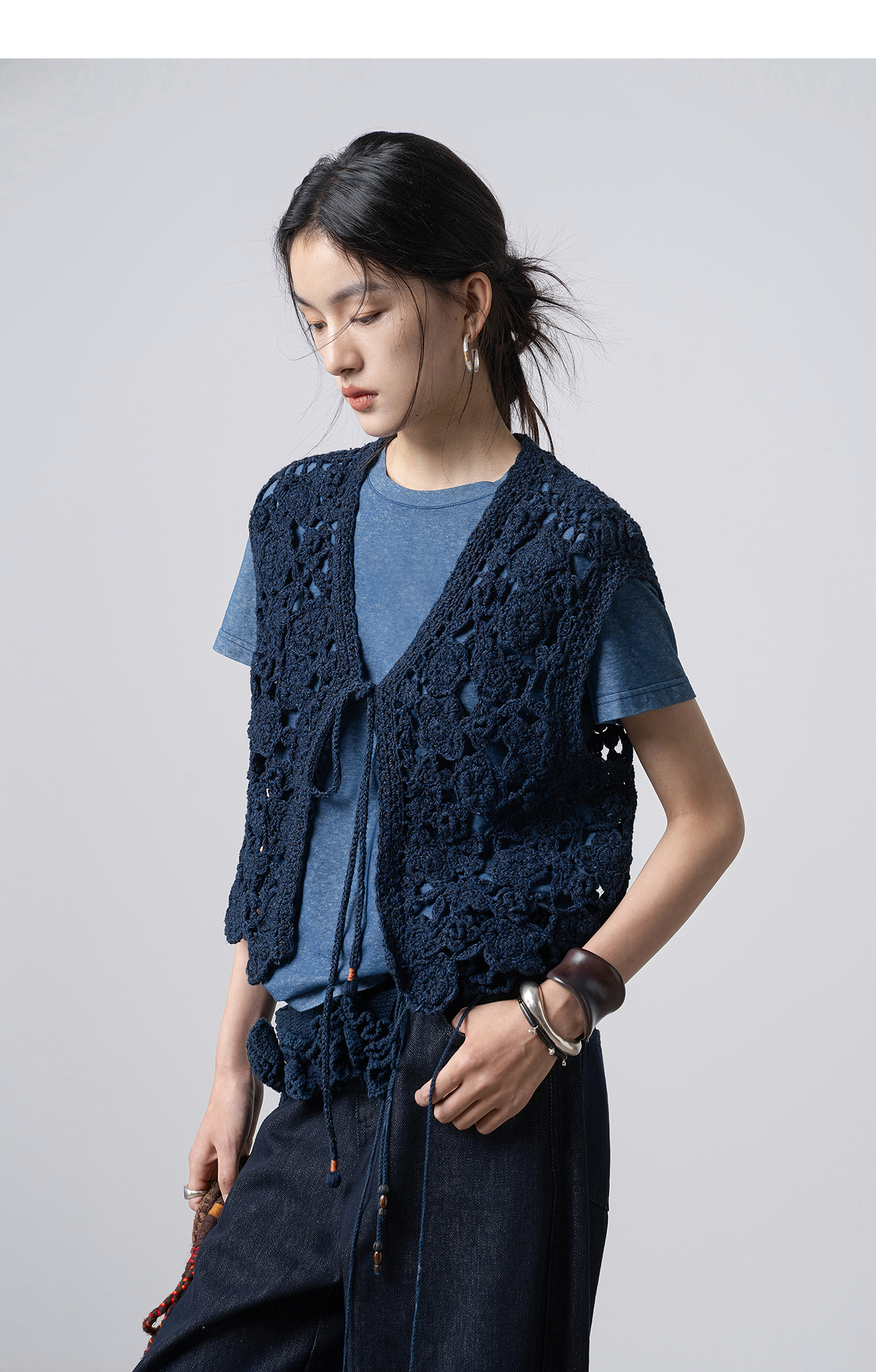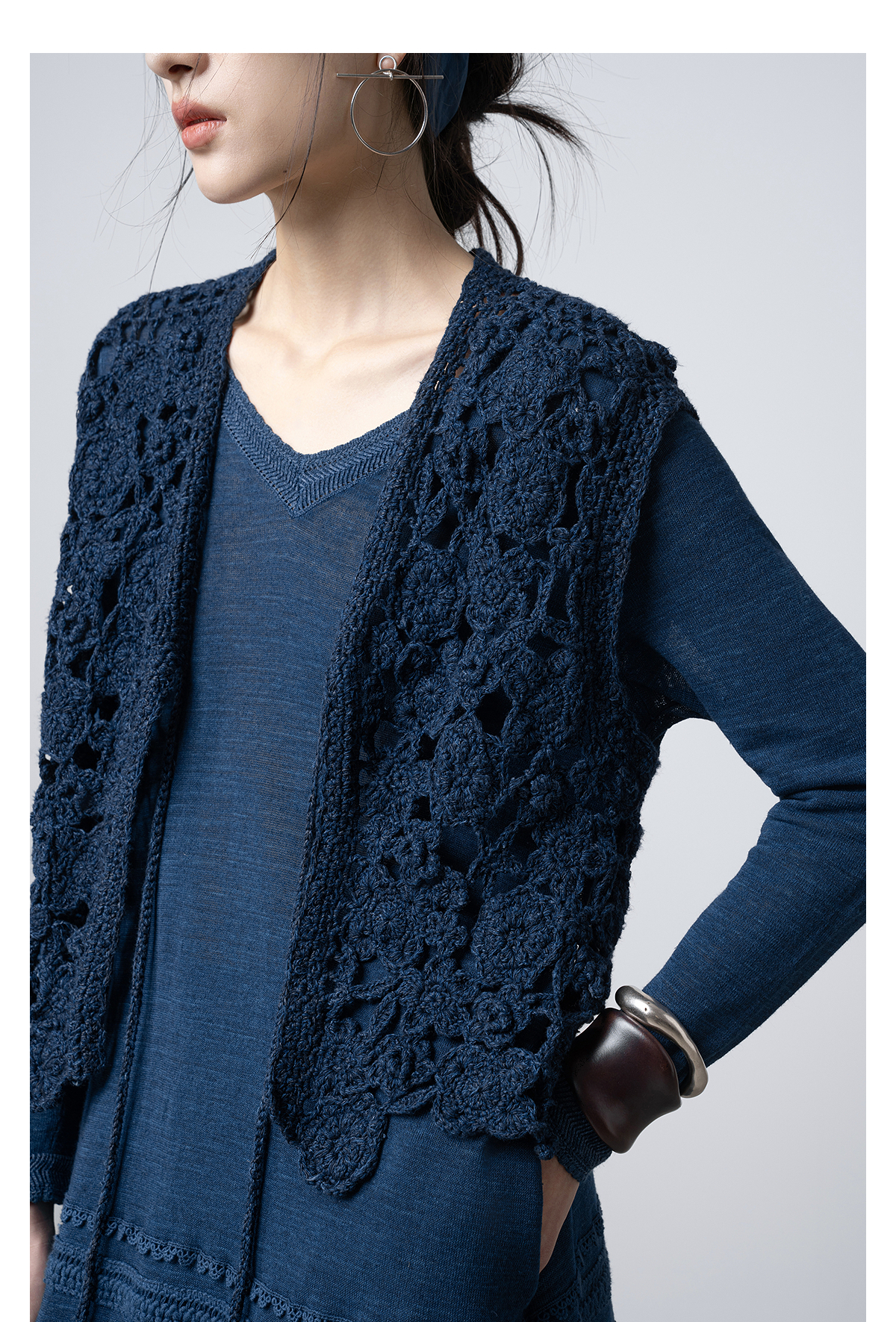 【林栖设计小店】(预售15天发货)手工钩花|植物染镂空肌理复古优雅2026春新款毛织马夹1961213