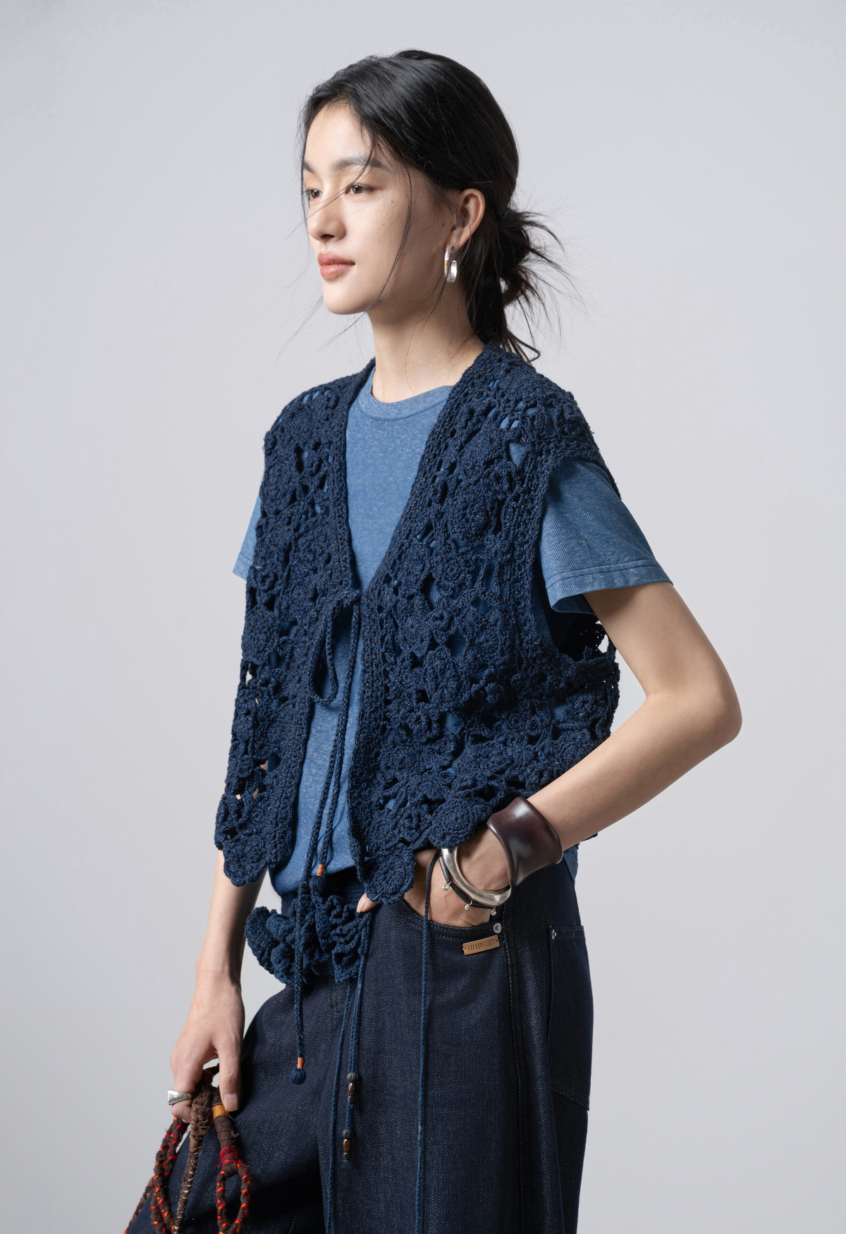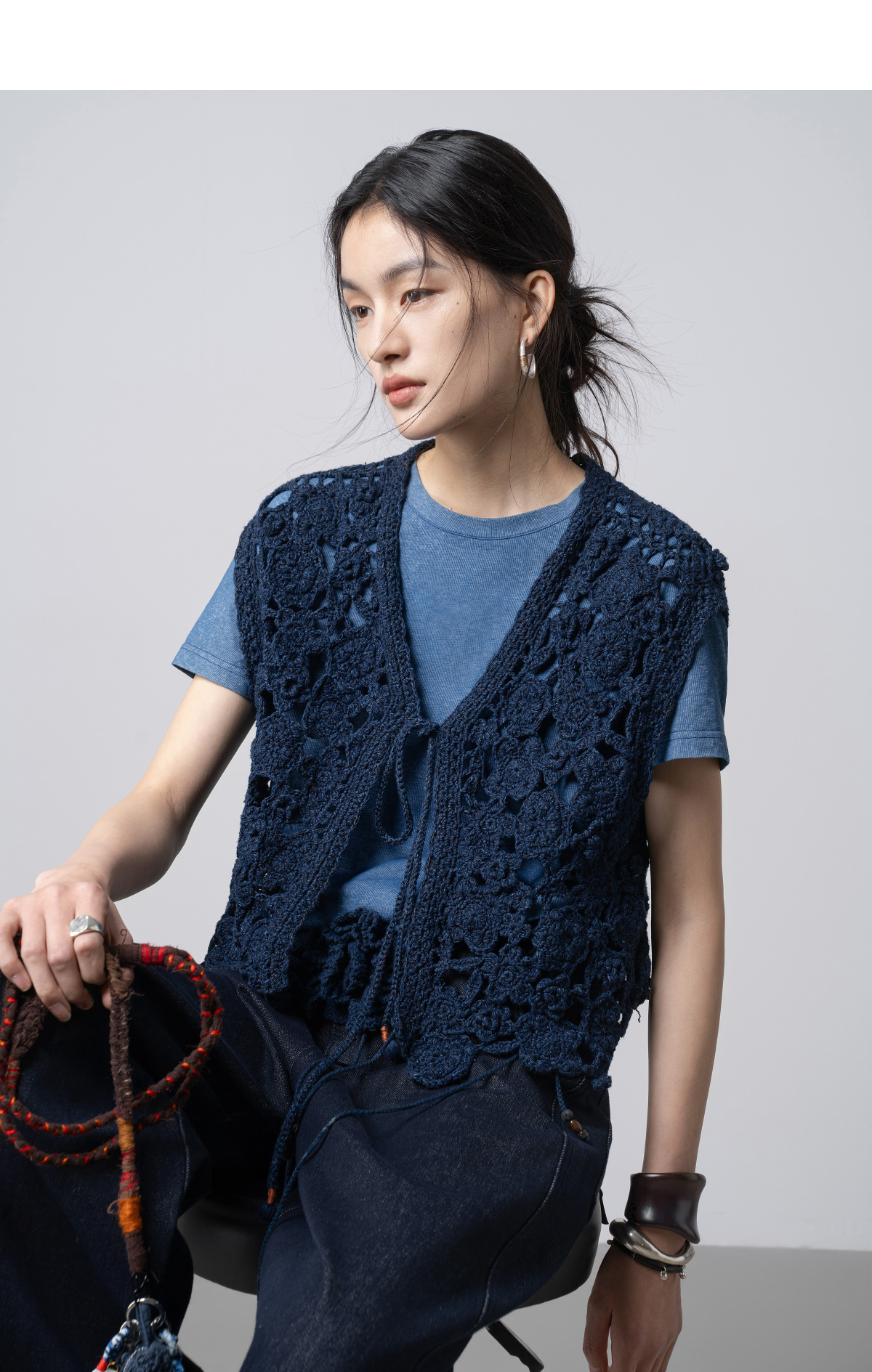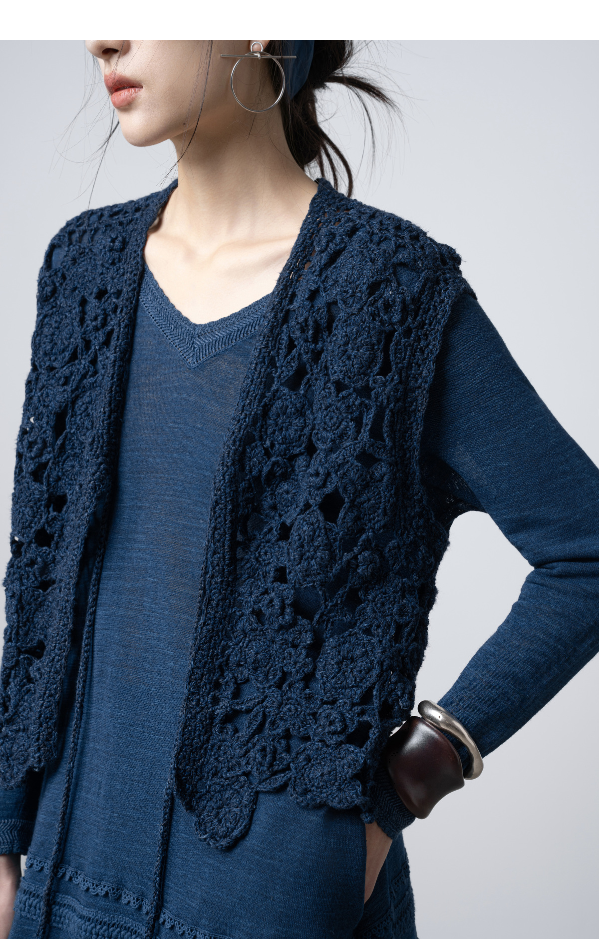 【林栖设计小店】(预售15天发货)手工钩花|植物染镂空肌理复古优雅2026春新款毛织马夹1961213