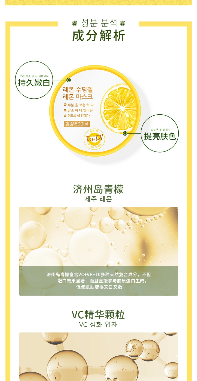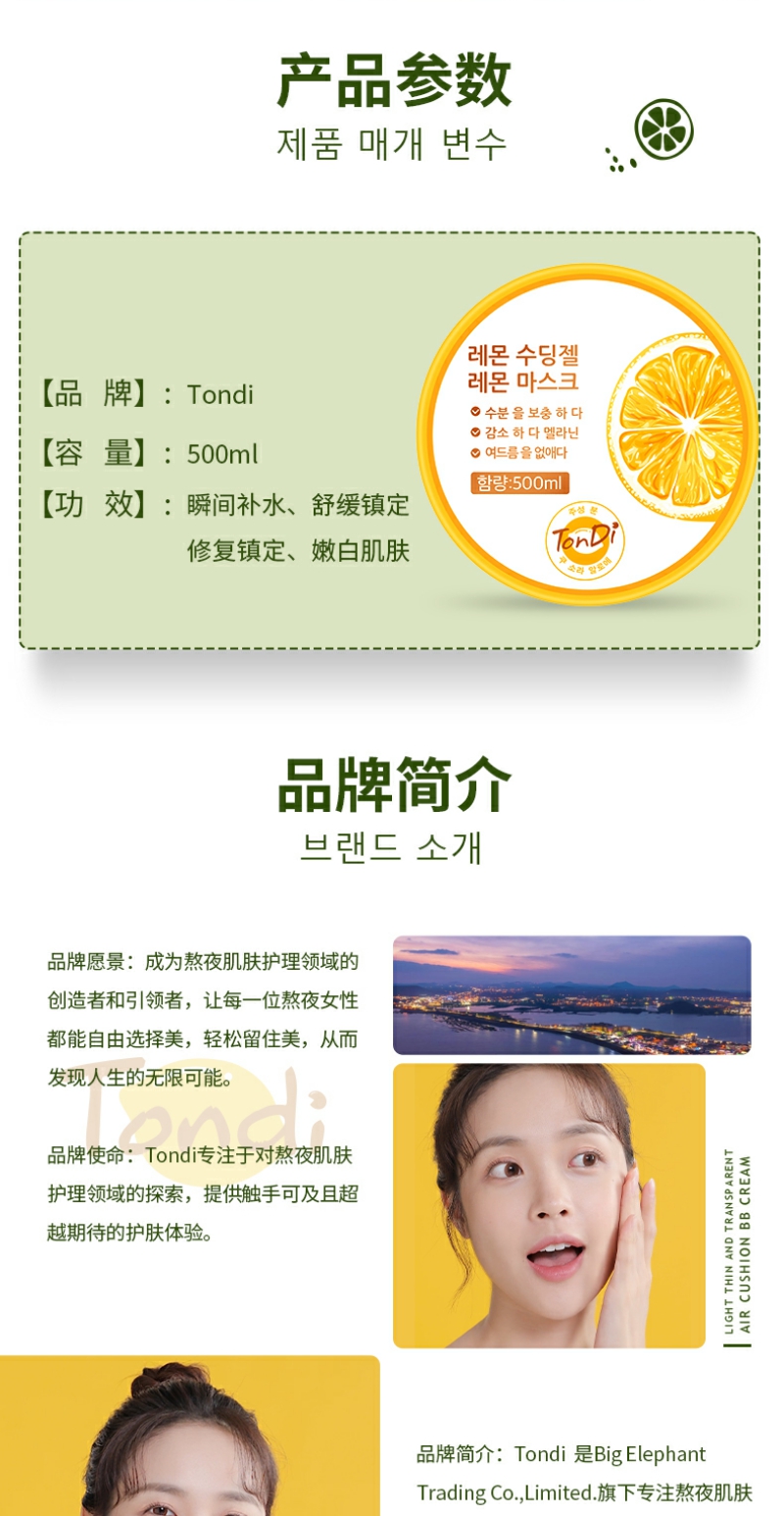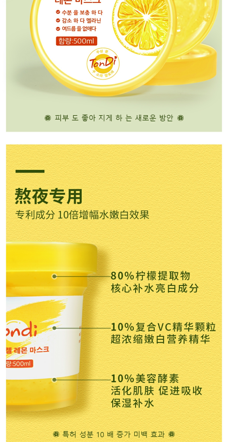 【YZ】韩国Tondi柠檬VC睡眠面膜500ml免洗补水保湿嫩白晒后修复提亮肤色