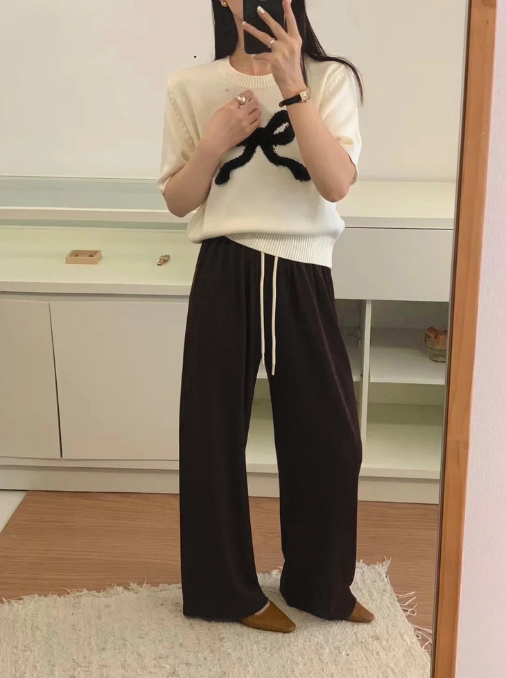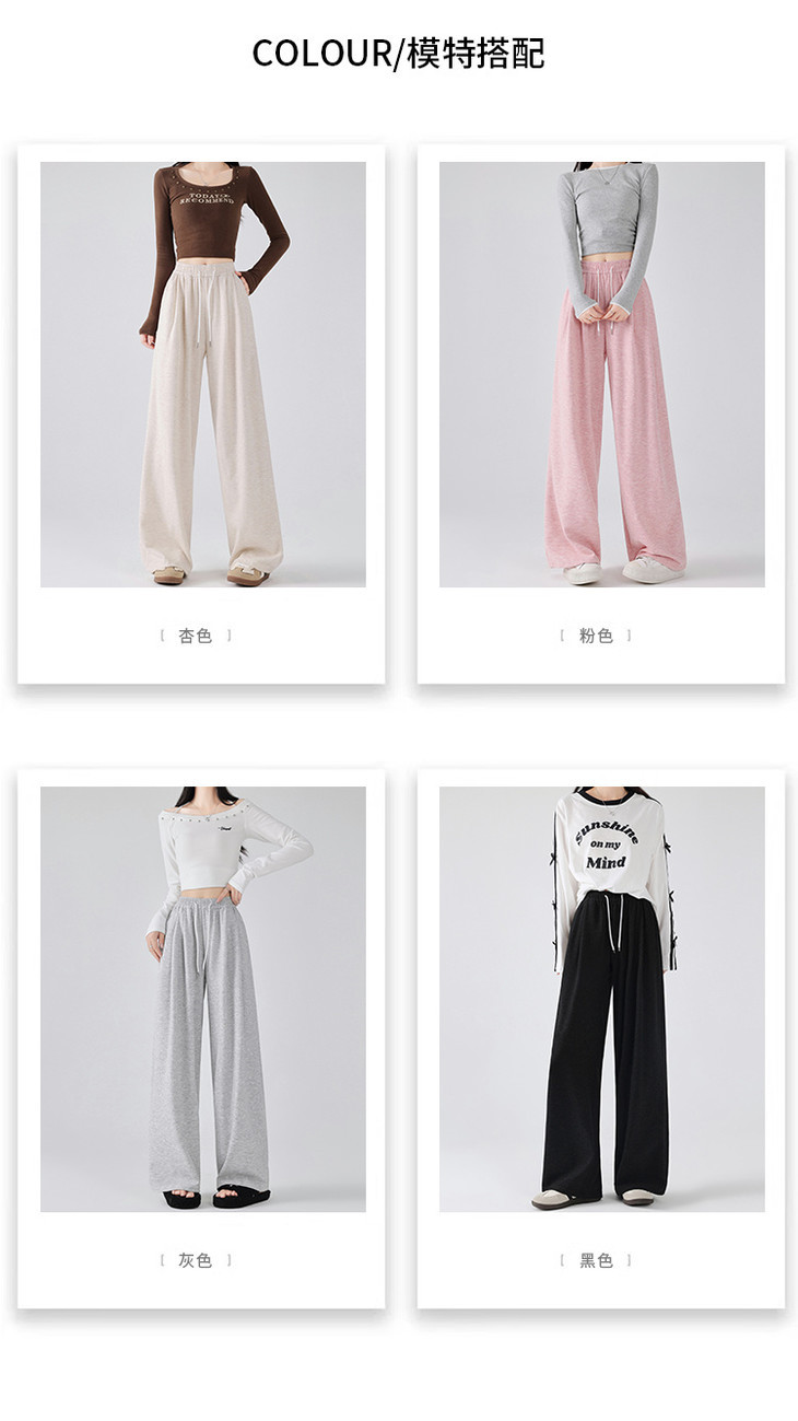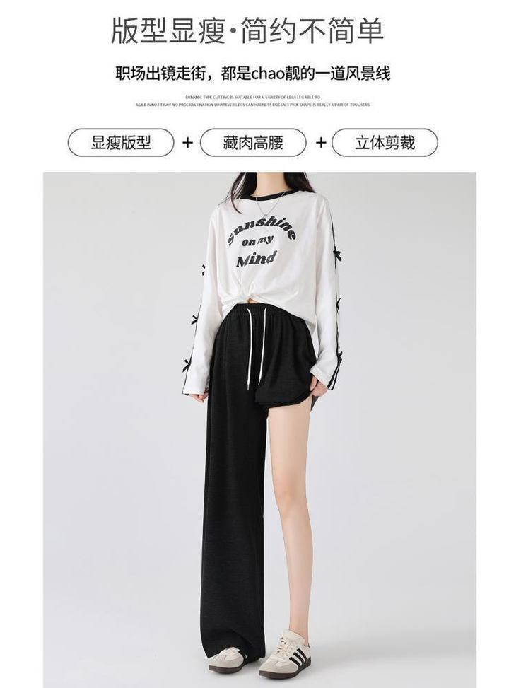 高腰松紧设计,凸显纤细腰身 宽松直筒的版型不挑人穿 搭配拖地裤的长度,拉长腿部线条 对胯宽、腿粗、腿弯的,尤其是🍐形身材的姐妹 简直不要太太太太友好! 又显高又显瘦!秋冬的慵懒感穿搭必须有它!