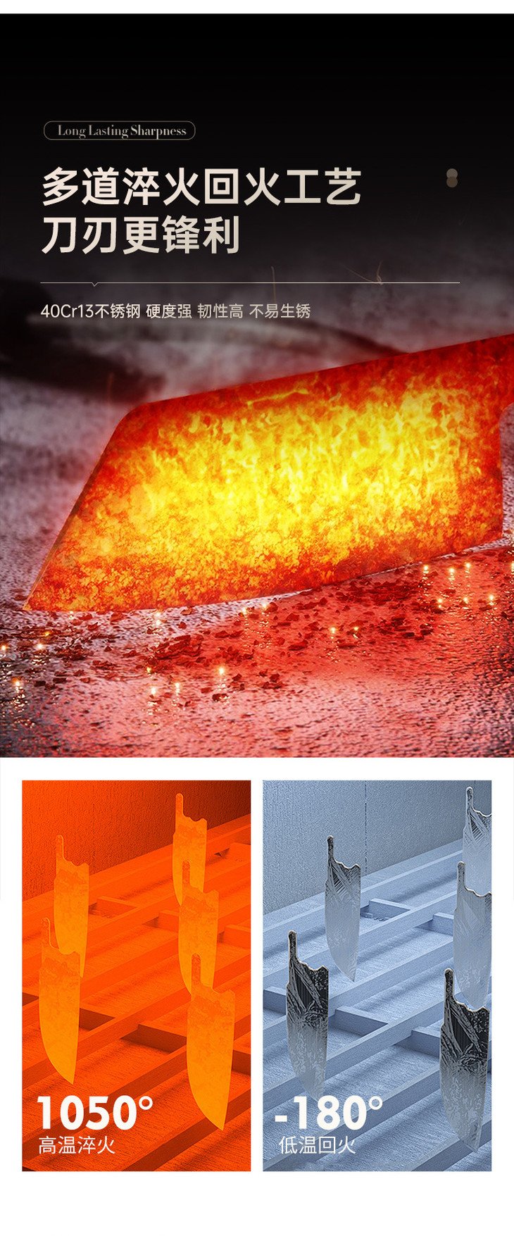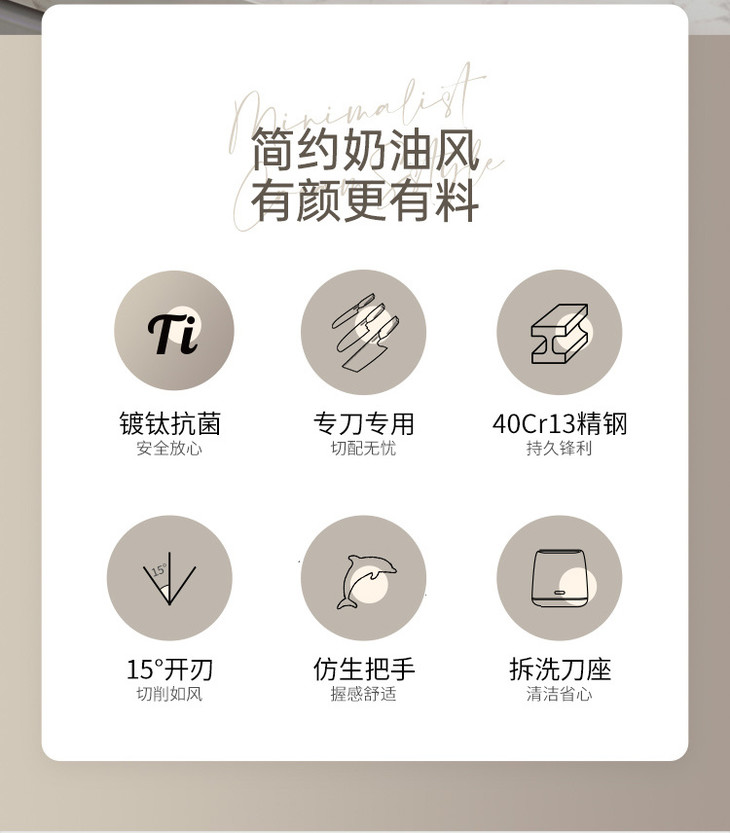 🌟 抗菌镀钛 + 黑刃防锈,健康耐用双在线 这套装最戳我的就是99% 抗菌率!钛离子形成的致密抑菌膜,切生肉、熟食再也不怕串味细菌,给家人做饭更安心~
