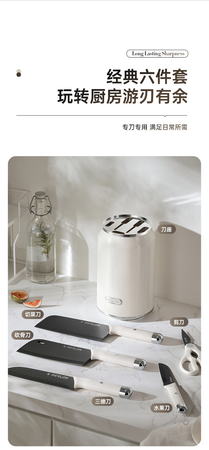 🌸【DESLON德世朗DFS-TZ025罗纳镀钛刀具六件套】😍厨房刀具套装封神!一套搞定所有切配 家人们!😉终于挖到好用又省心的刀具套装了