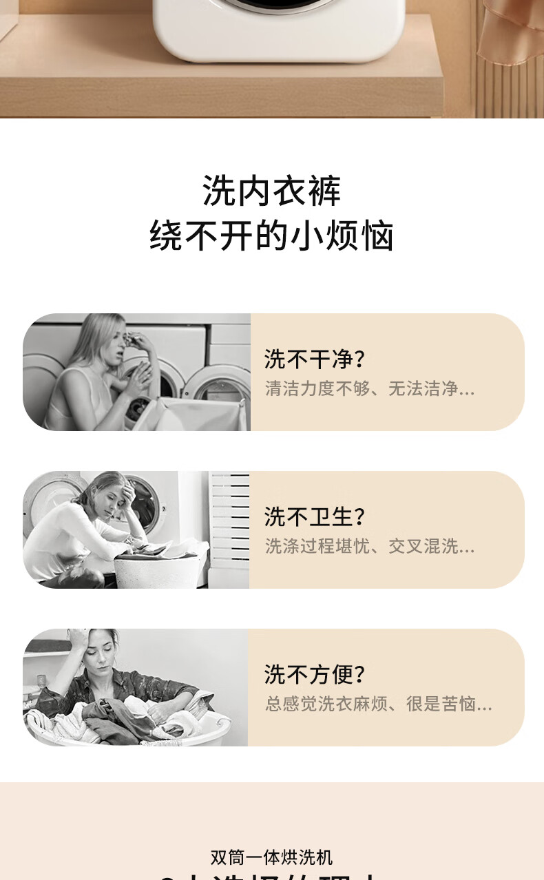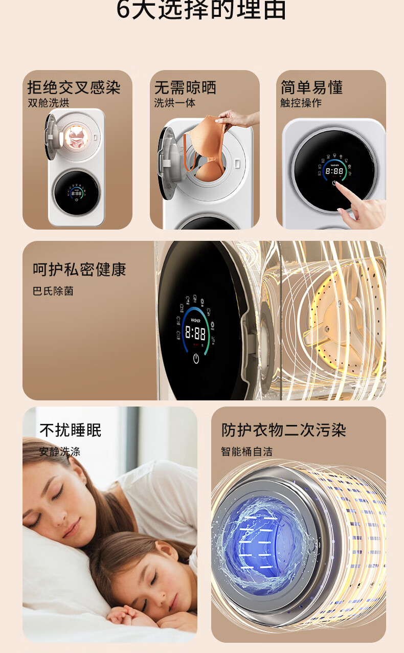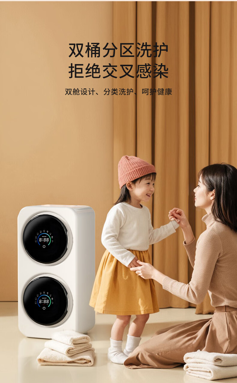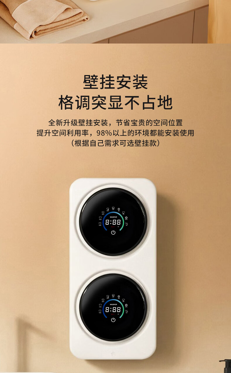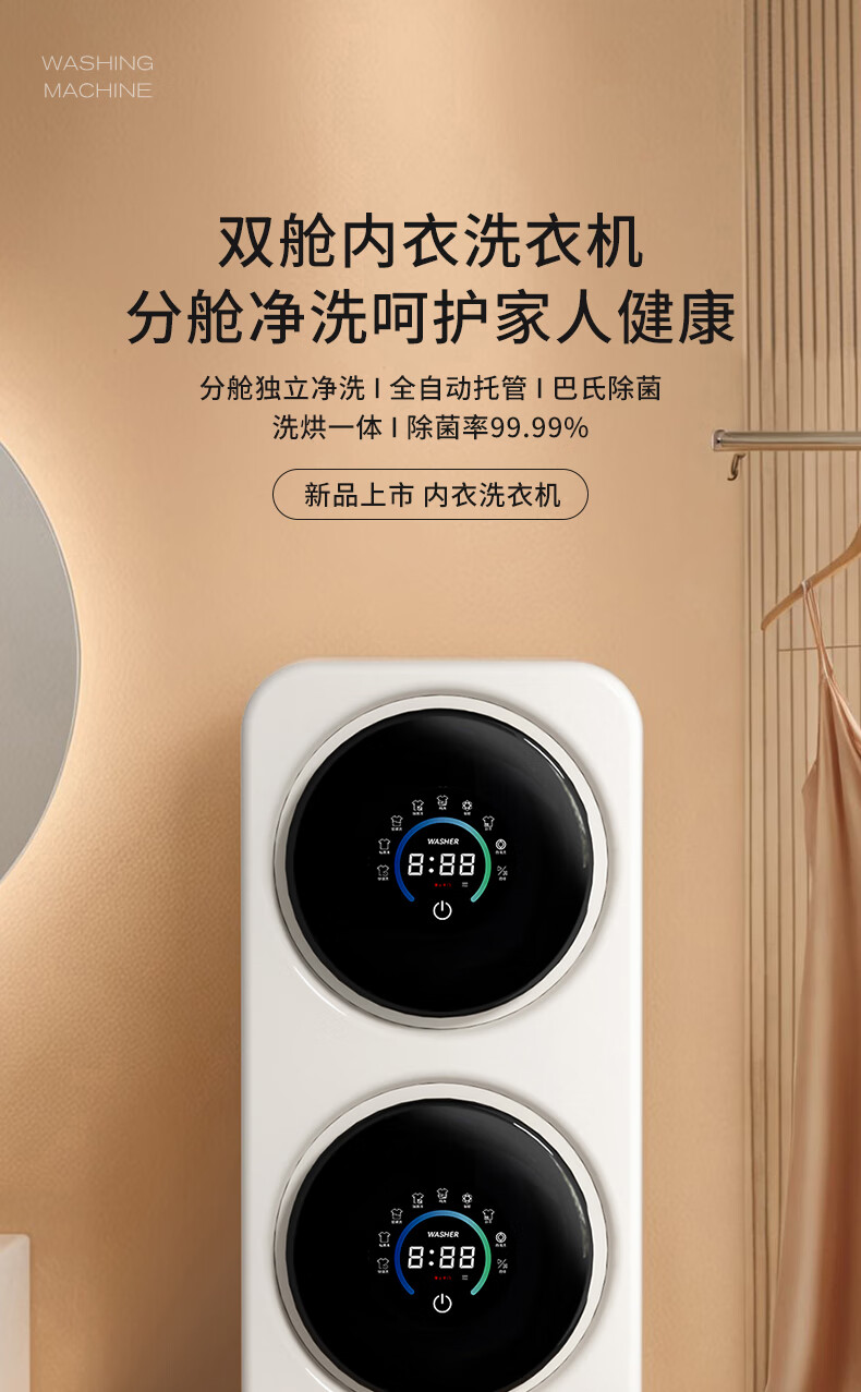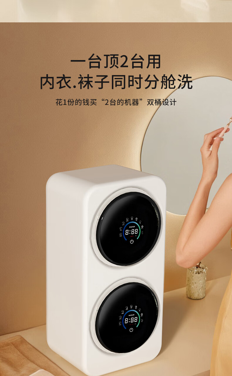 艾德勒迷你全自动专用洗衣机内衣裤袜子机洗衣机内衣裤洗衣机洗脱一体家用小洗衣机洗袜 【升级款洗烘一体壁挂款】杀菌除螨--智能双桶