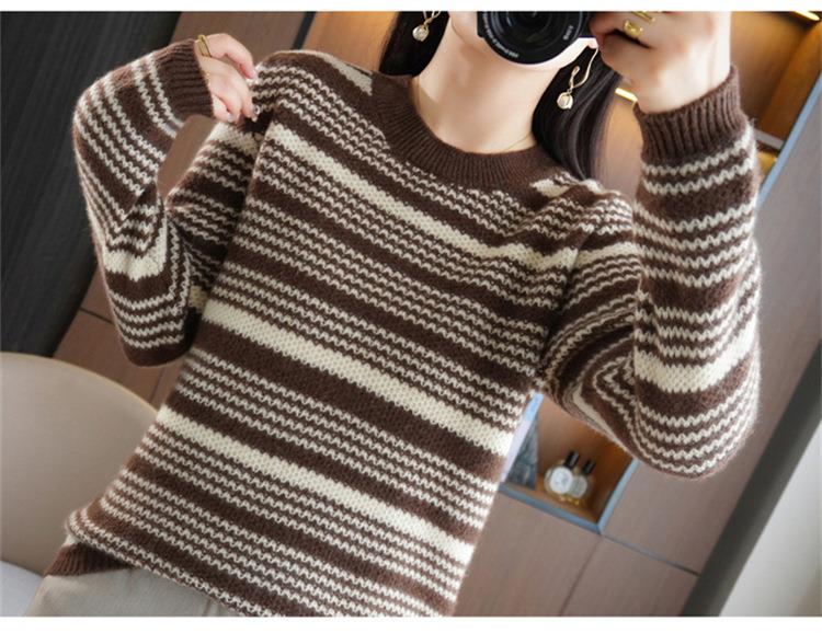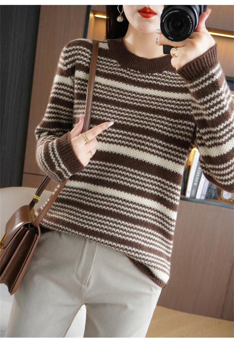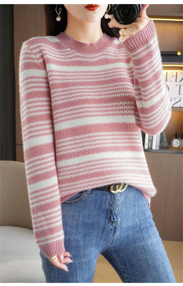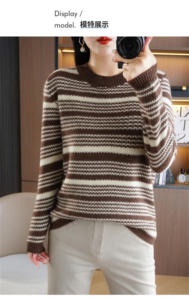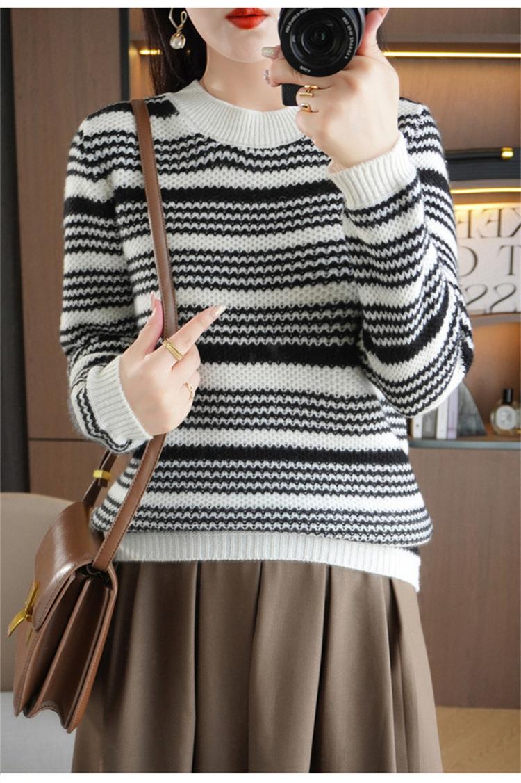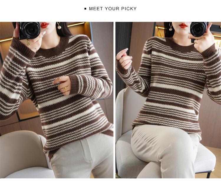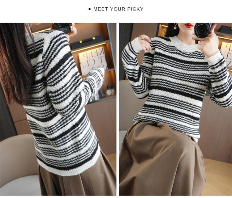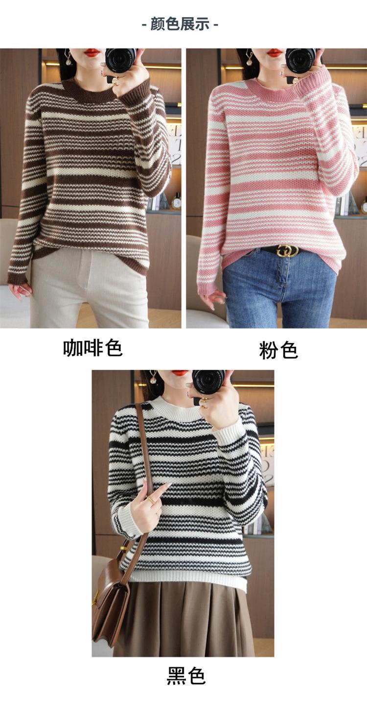 2023秋冬新款圆领撞色条纹毛衣女时尚加厚针织打底衫上衣女外穿