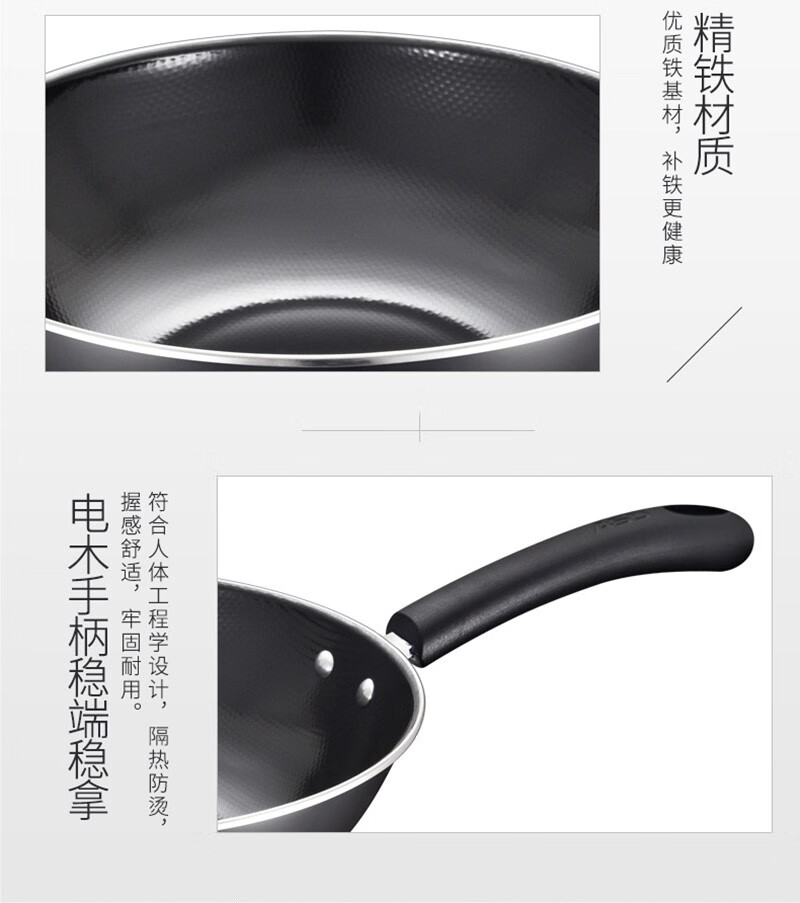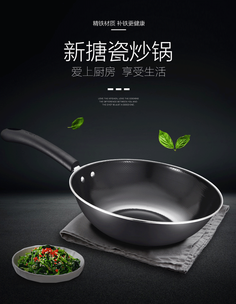 爱仕达(ASD)炒锅不易锈铁锅 搪瓷炒锅SN8430 30CM 炒锅