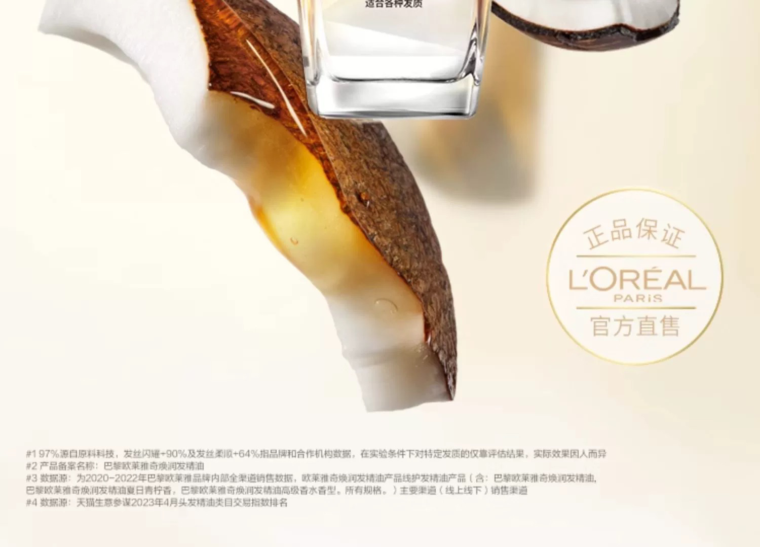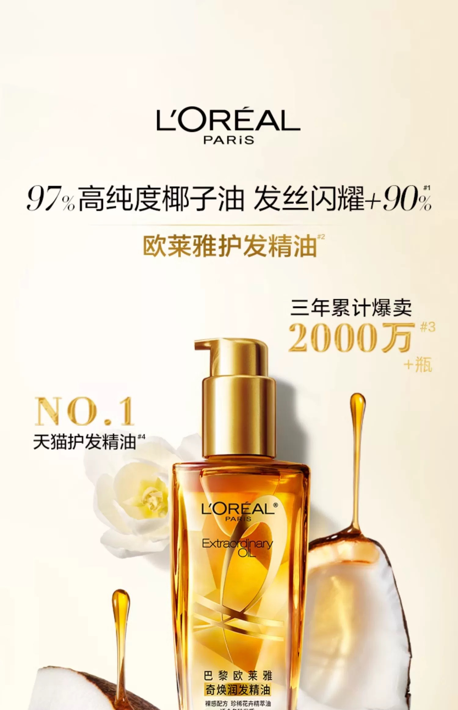 法国 L'OREAL欧莱雅 小金瓶柔顺抗毛躁黄金护发精油 发油 100ml