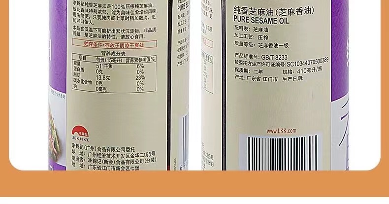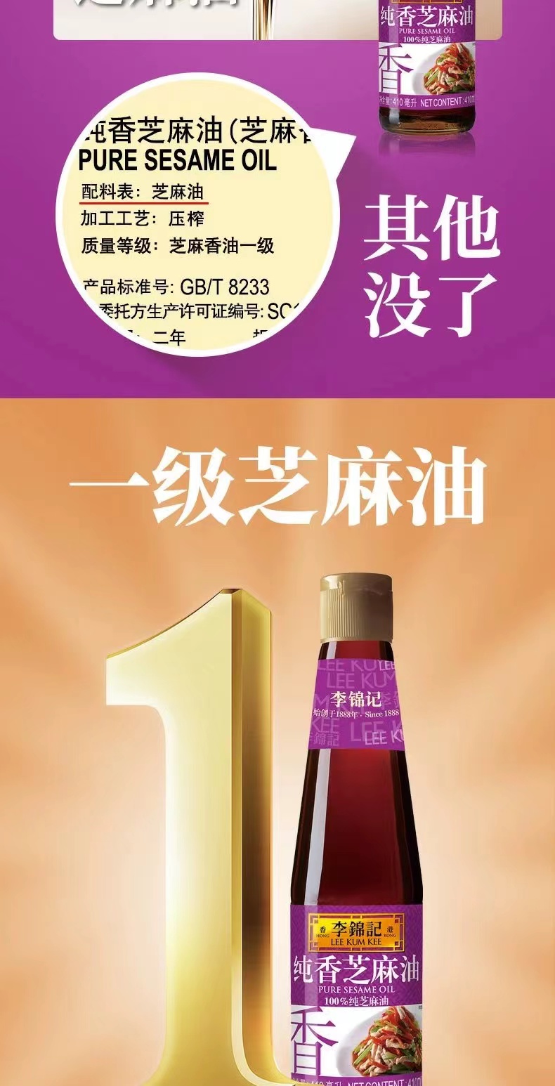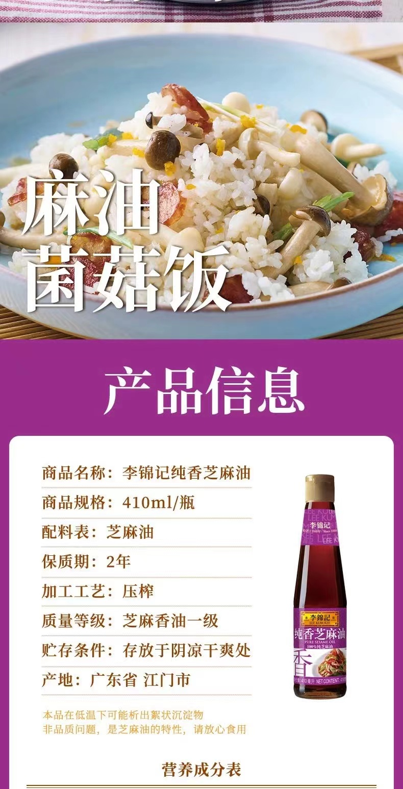李锦记纯香芝麻油410ml