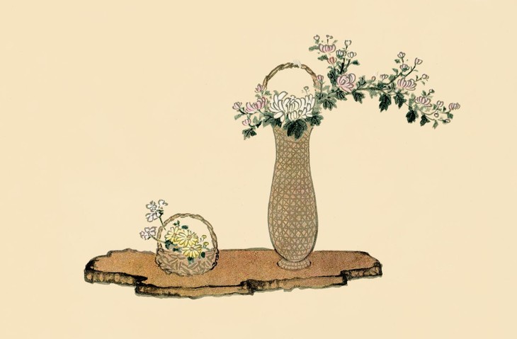 《插花册子(四季之花)》原名《实地图解现代四 季盛花投入教本》,是二十世纪初在日本较为流行的 插花入门书,相当于针对非花道专业人士传授关于“ 盛花”和“文人花”(又叫“投入花”)插花技法和基 本理念的基础入门教材。