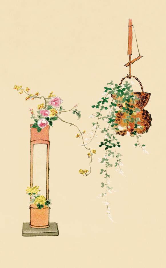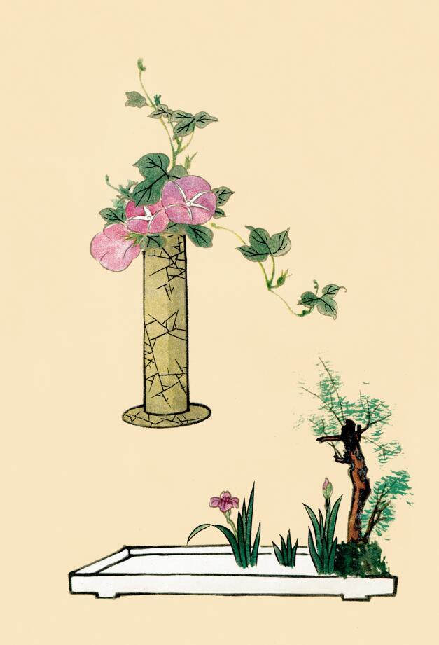 书中尤其注重实用性,范例众多,涉及四季花材 选配近400种,以及插花与挂画的配合、与居室环境 的配合等。《插花册子(四季之花)》中收录手绘精彩 四季插花作品70余幅,各附有花材详解,不失为学习 和收藏的佳作。