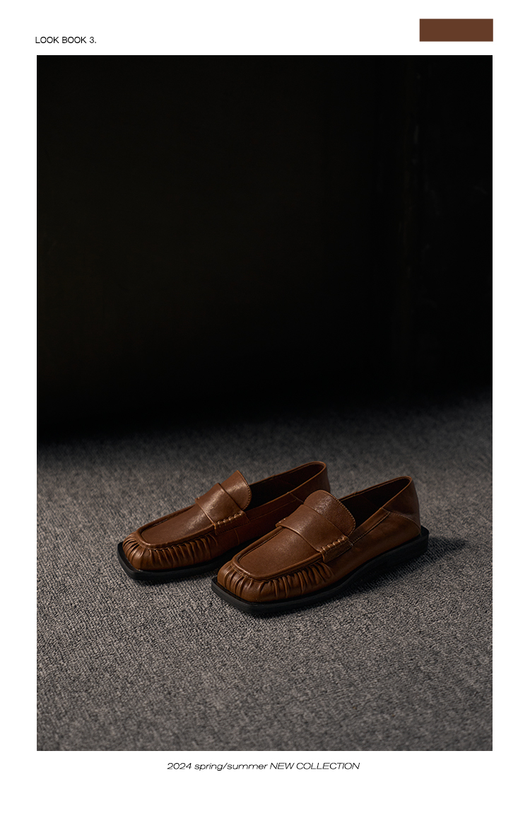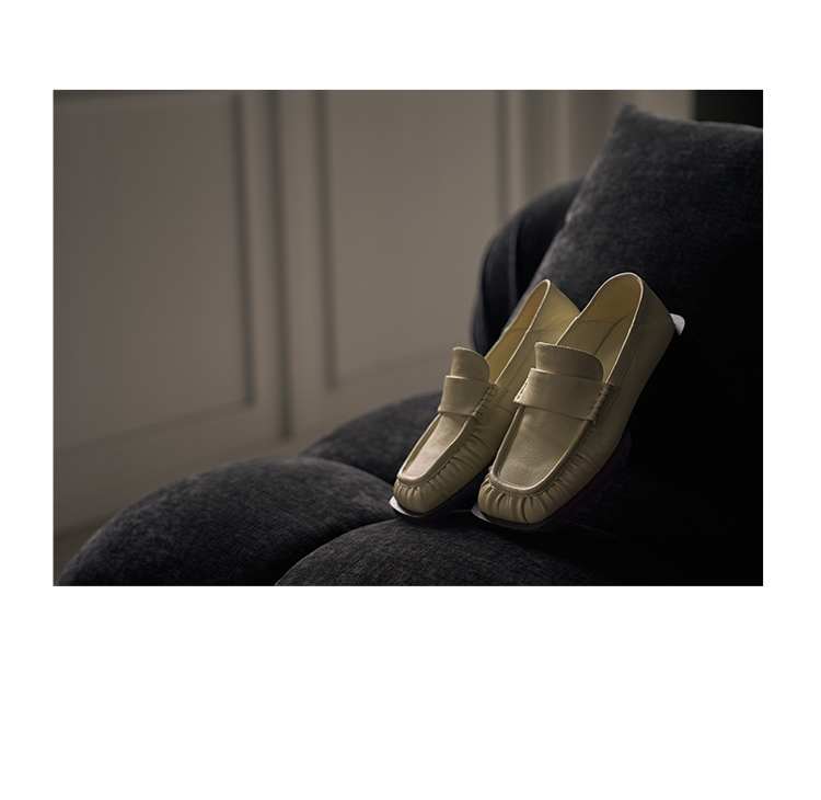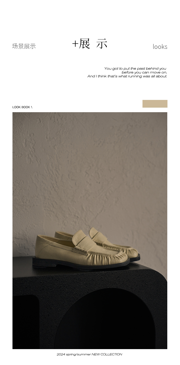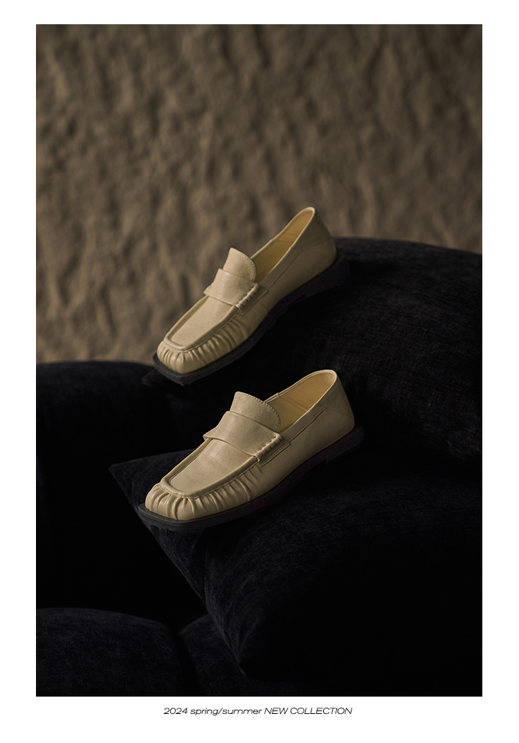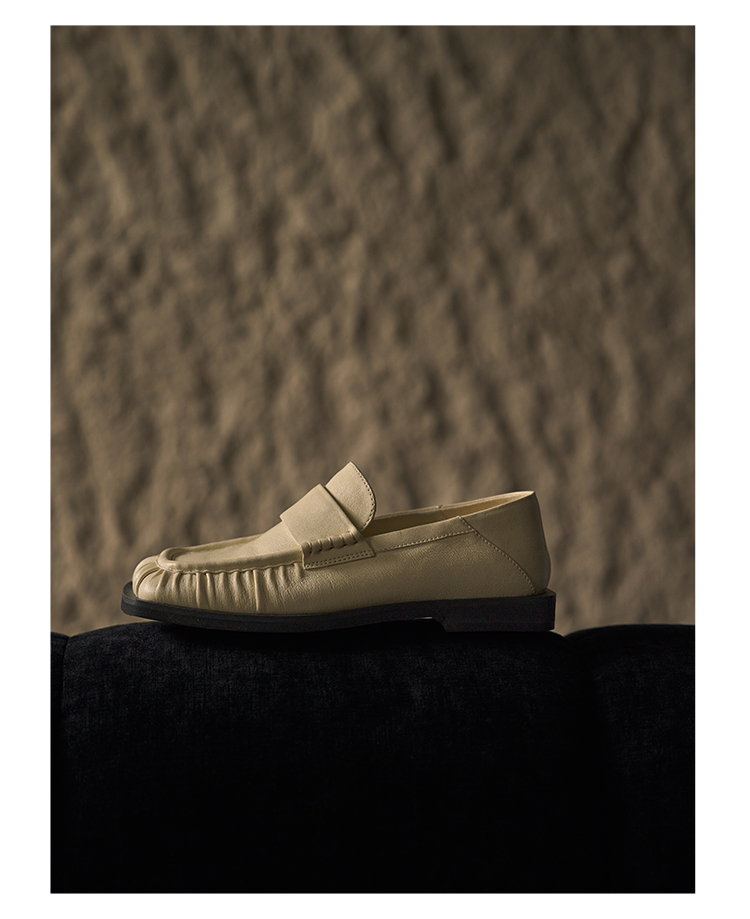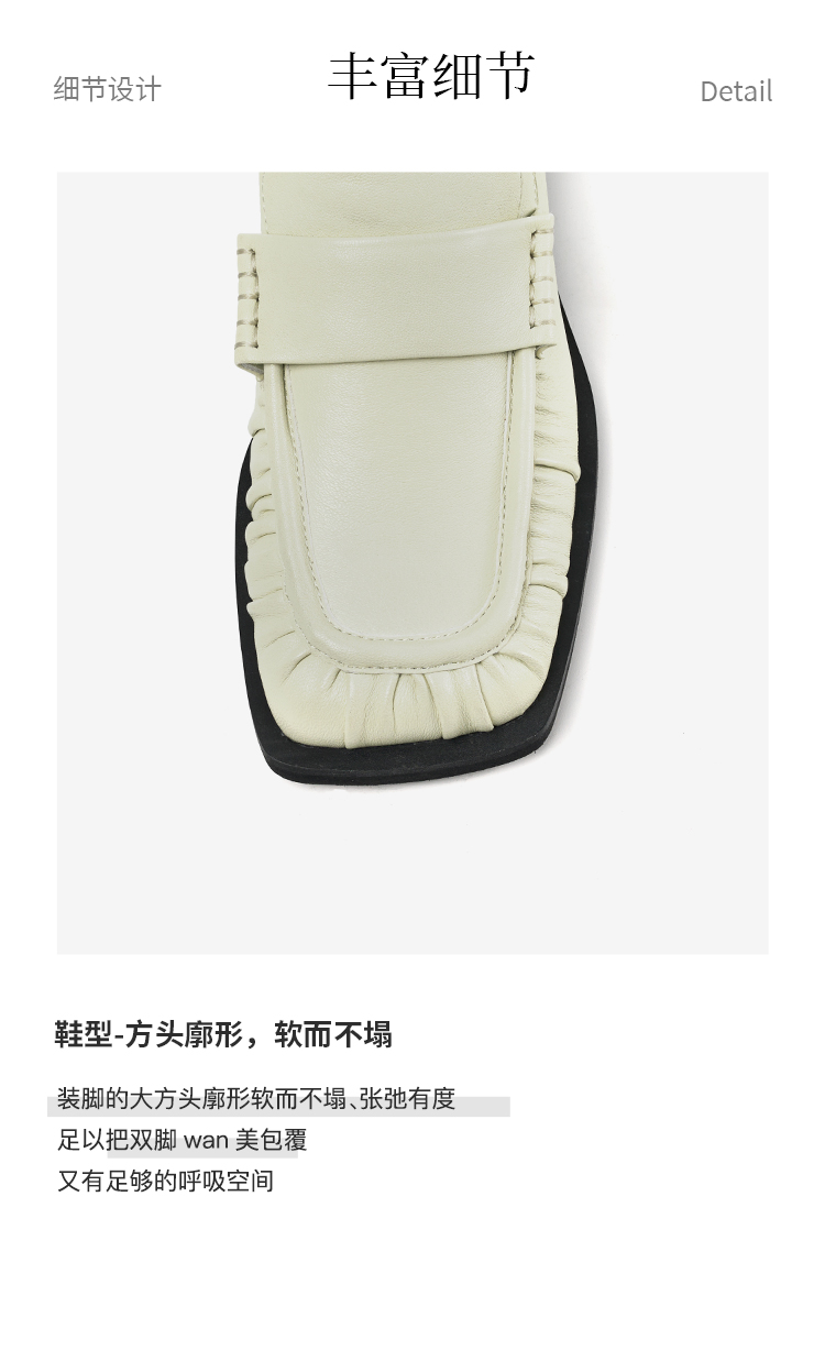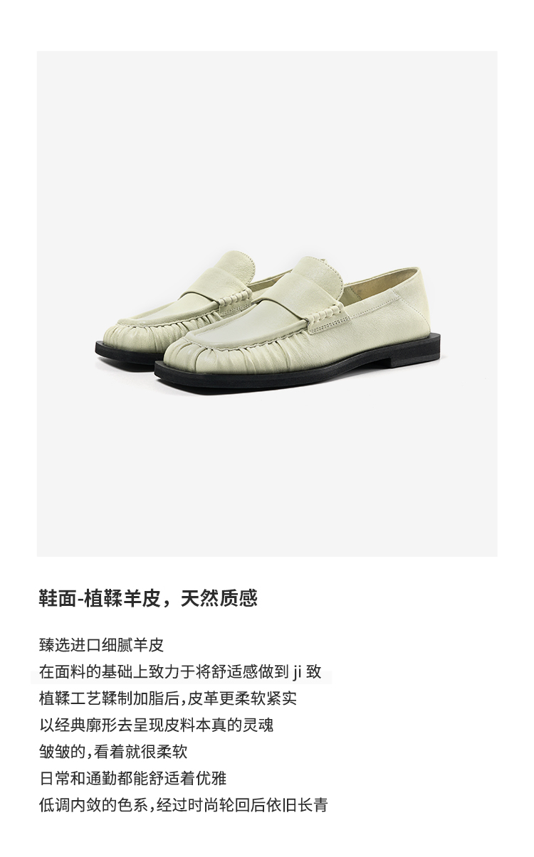 faytobe皱皱乐福鞋 手风琴形柔软植鞣羊皮 方头一脚蹬春夏单鞋
