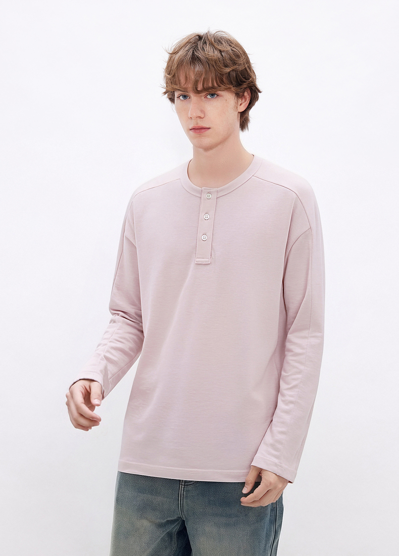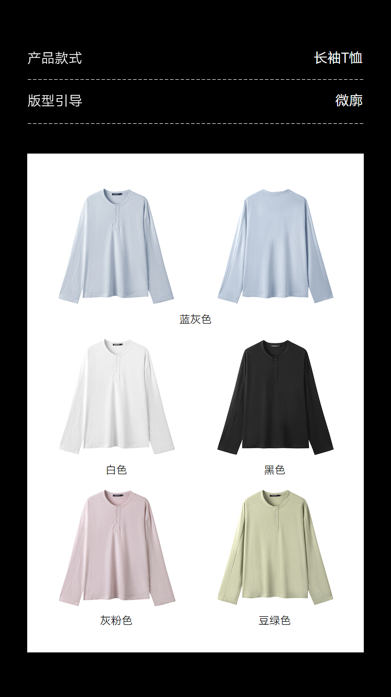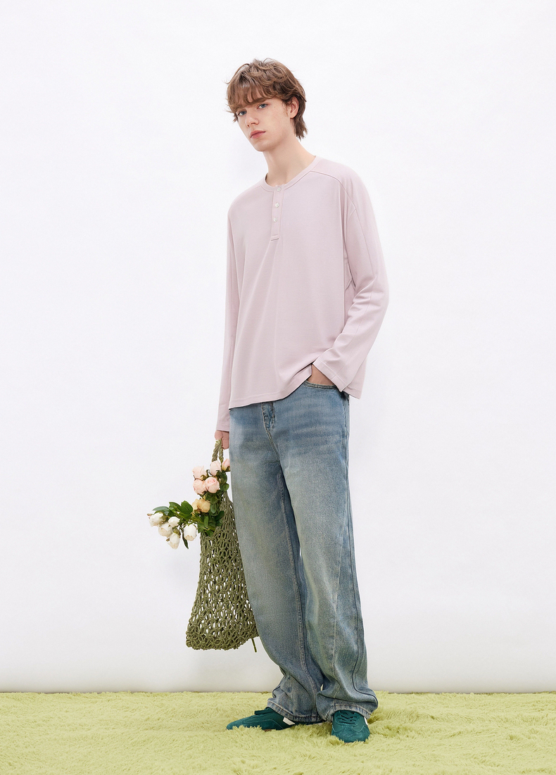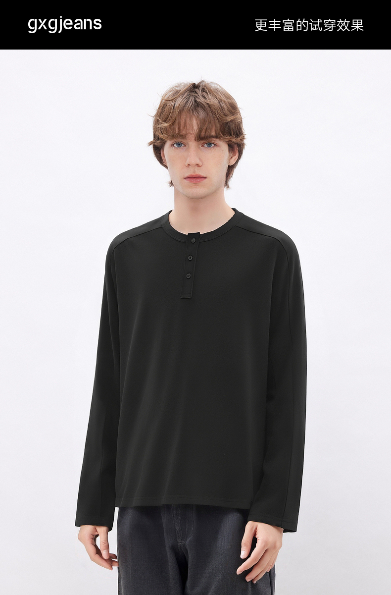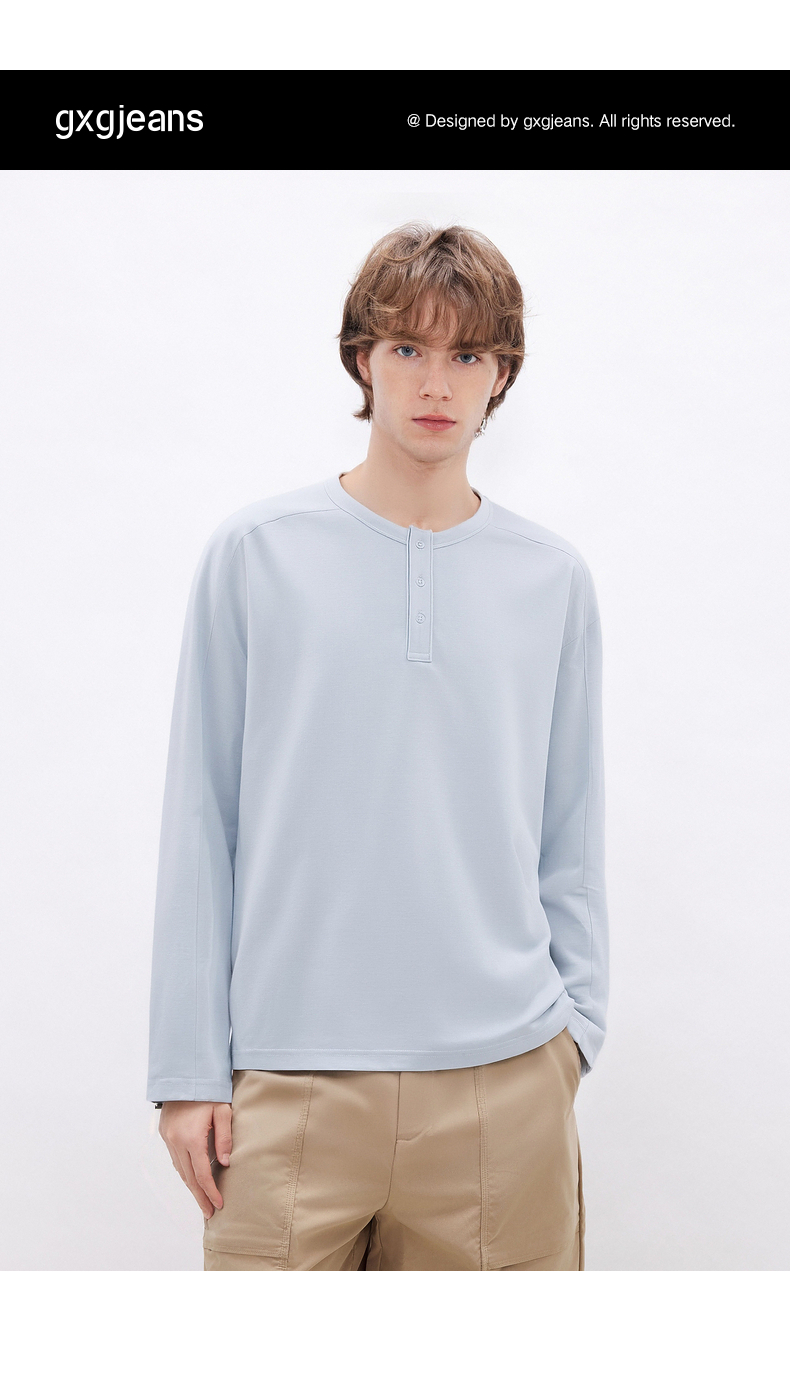 gxgjeans男装 多色基础亨利领宽松长袖T恤打底男士 26春新品